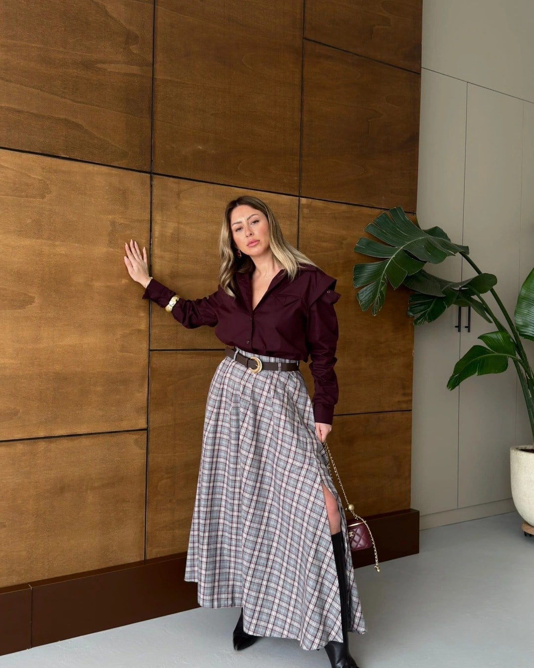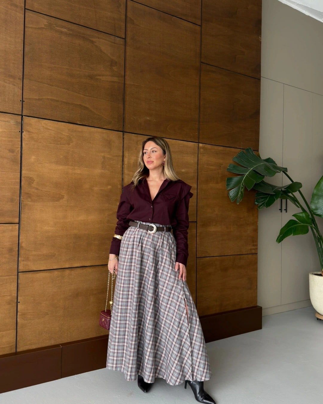 KEMERLİ EKOSE DESEN ETEK