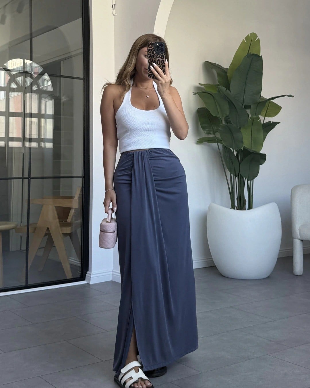 İNDİGO MODAL KUMAŞ BÜZGÜLÜ ETEK