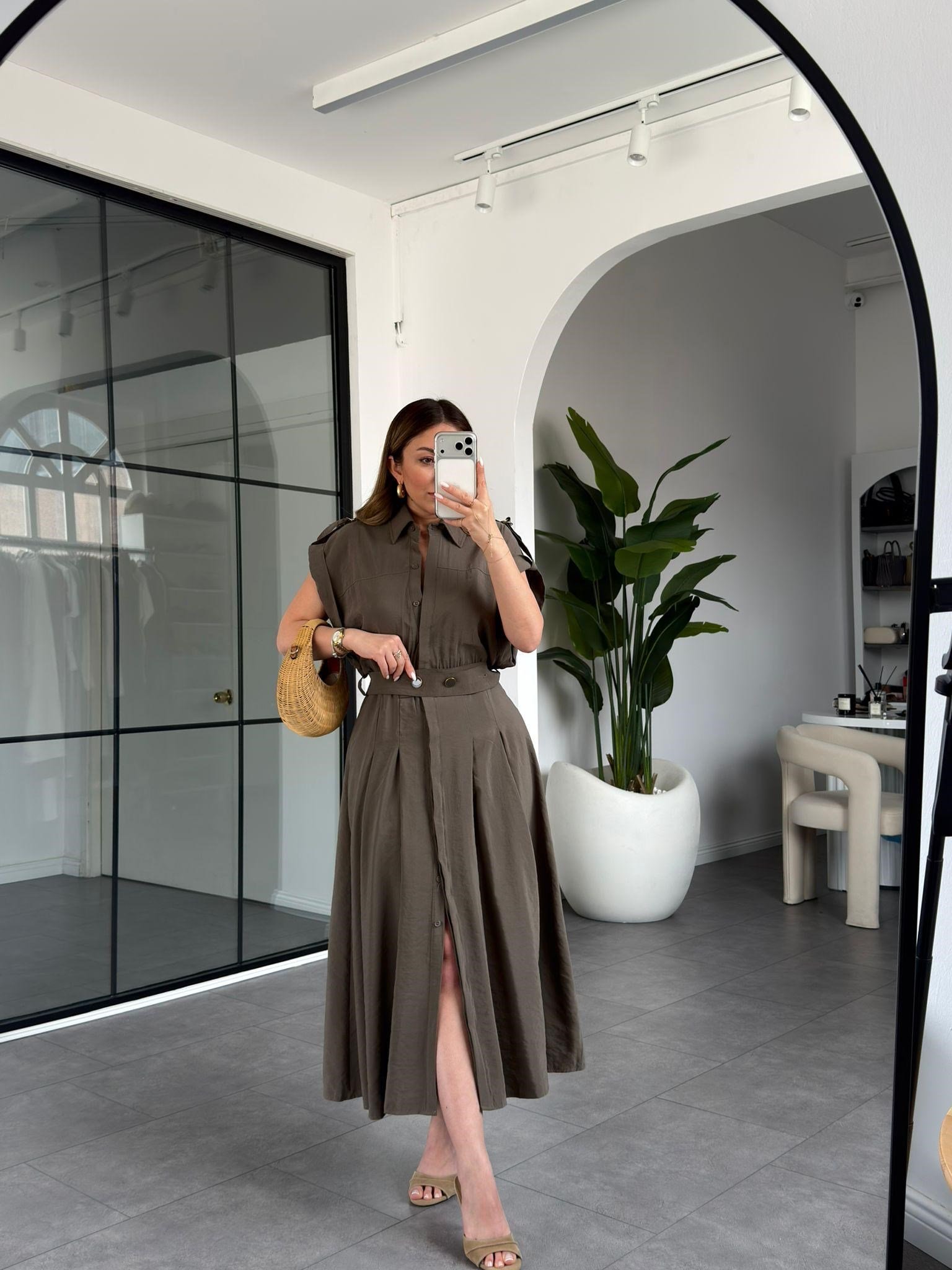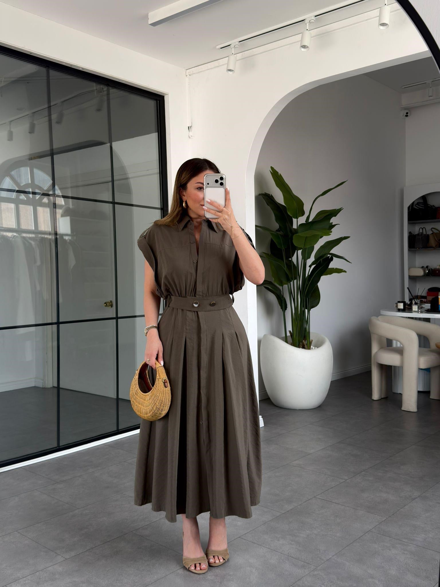 Kemerli Düşük Kol ELbise 268262