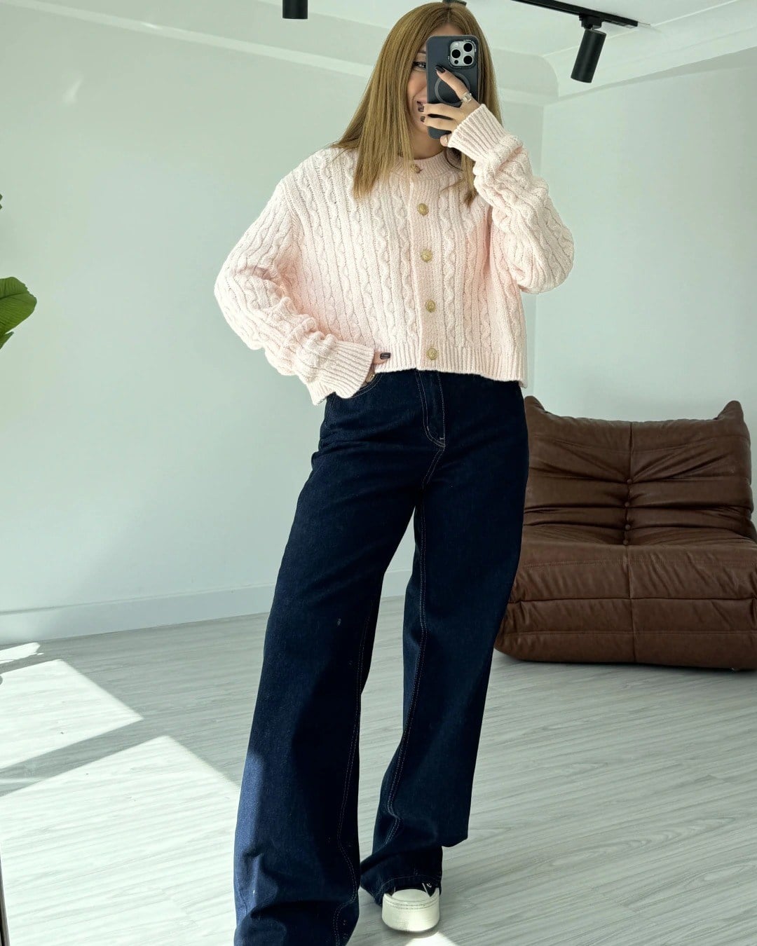 Örgü Model Gold Düğmeli Yumoş Hırka