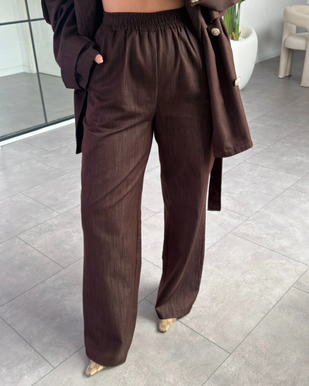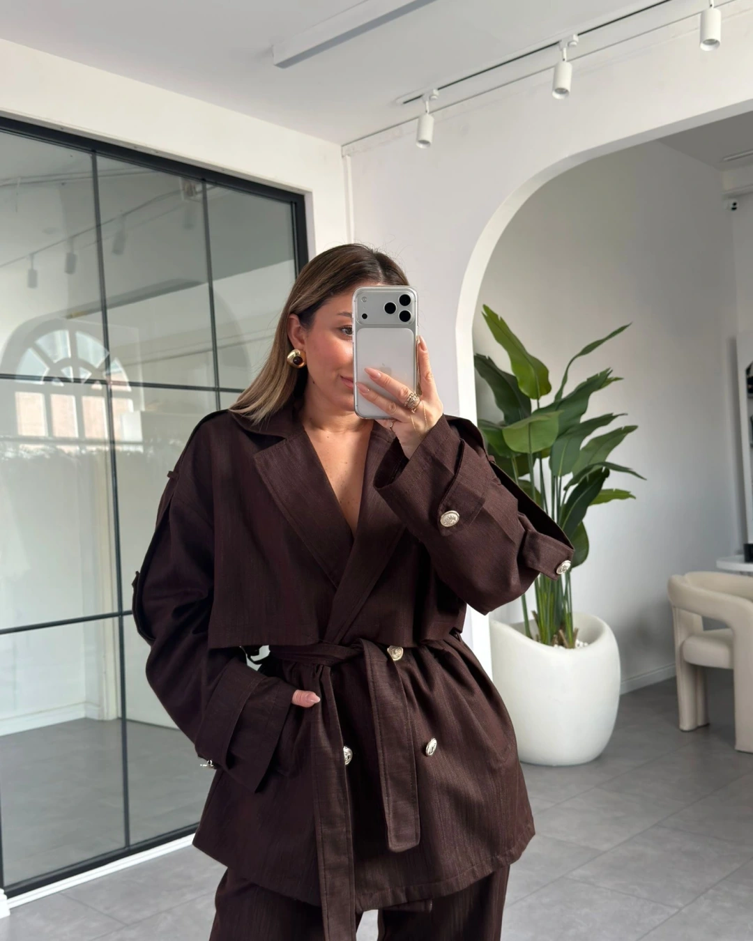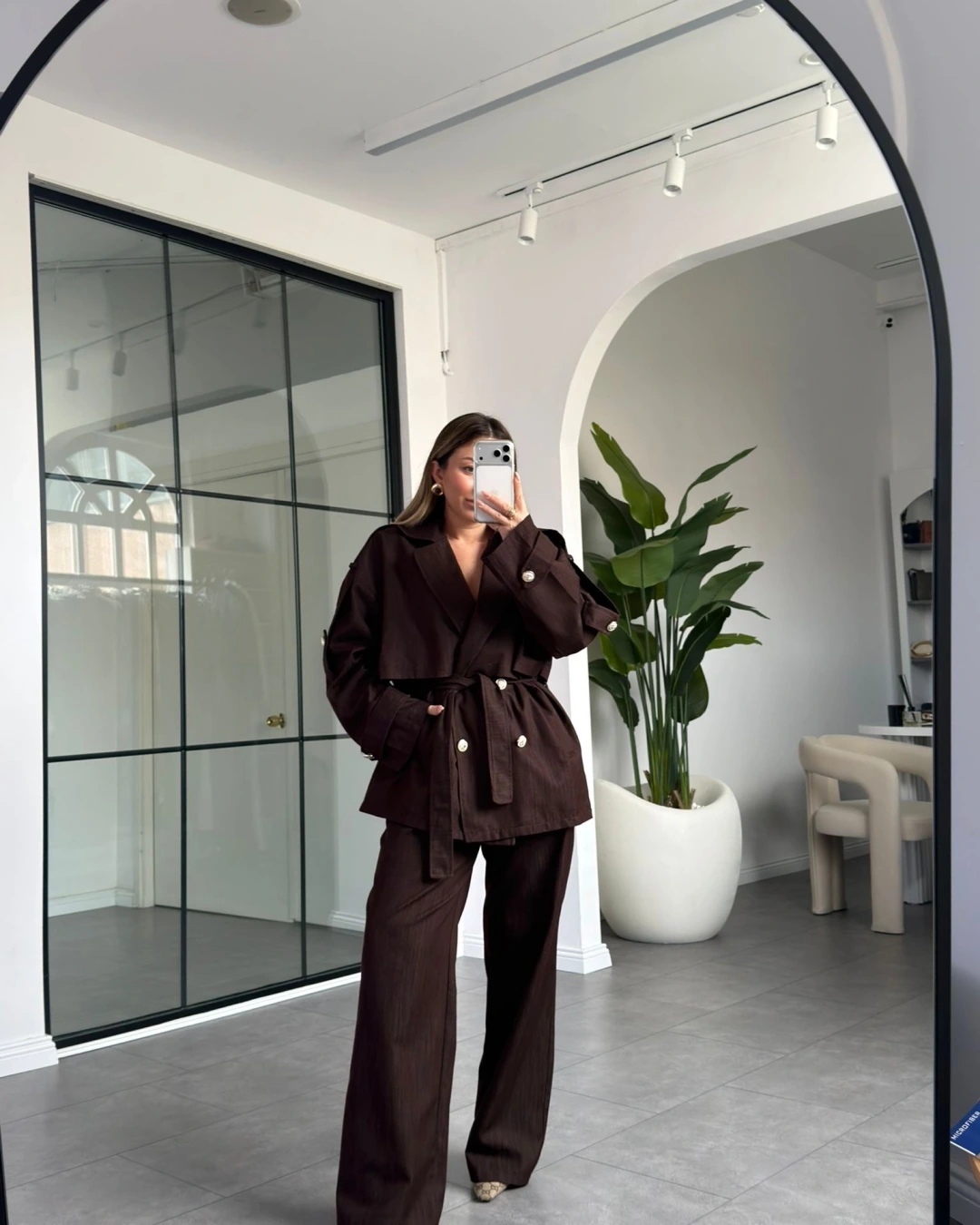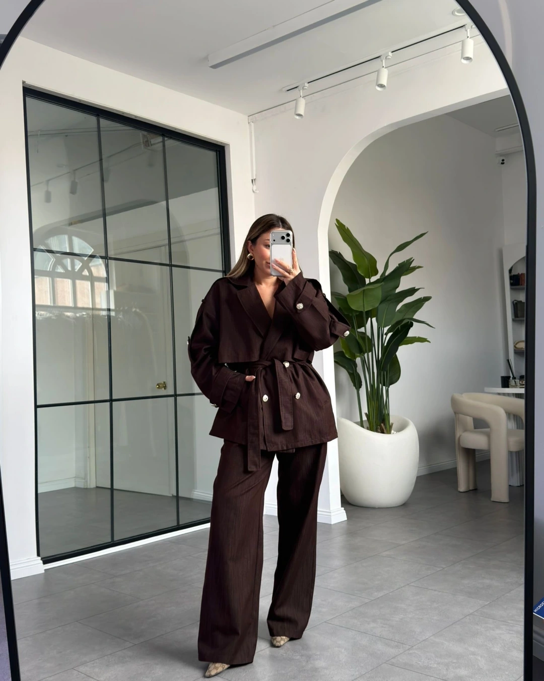 ACI KAHVE APOLET DETAY KUŞAKLI CEKET PANTOLON TAKIM