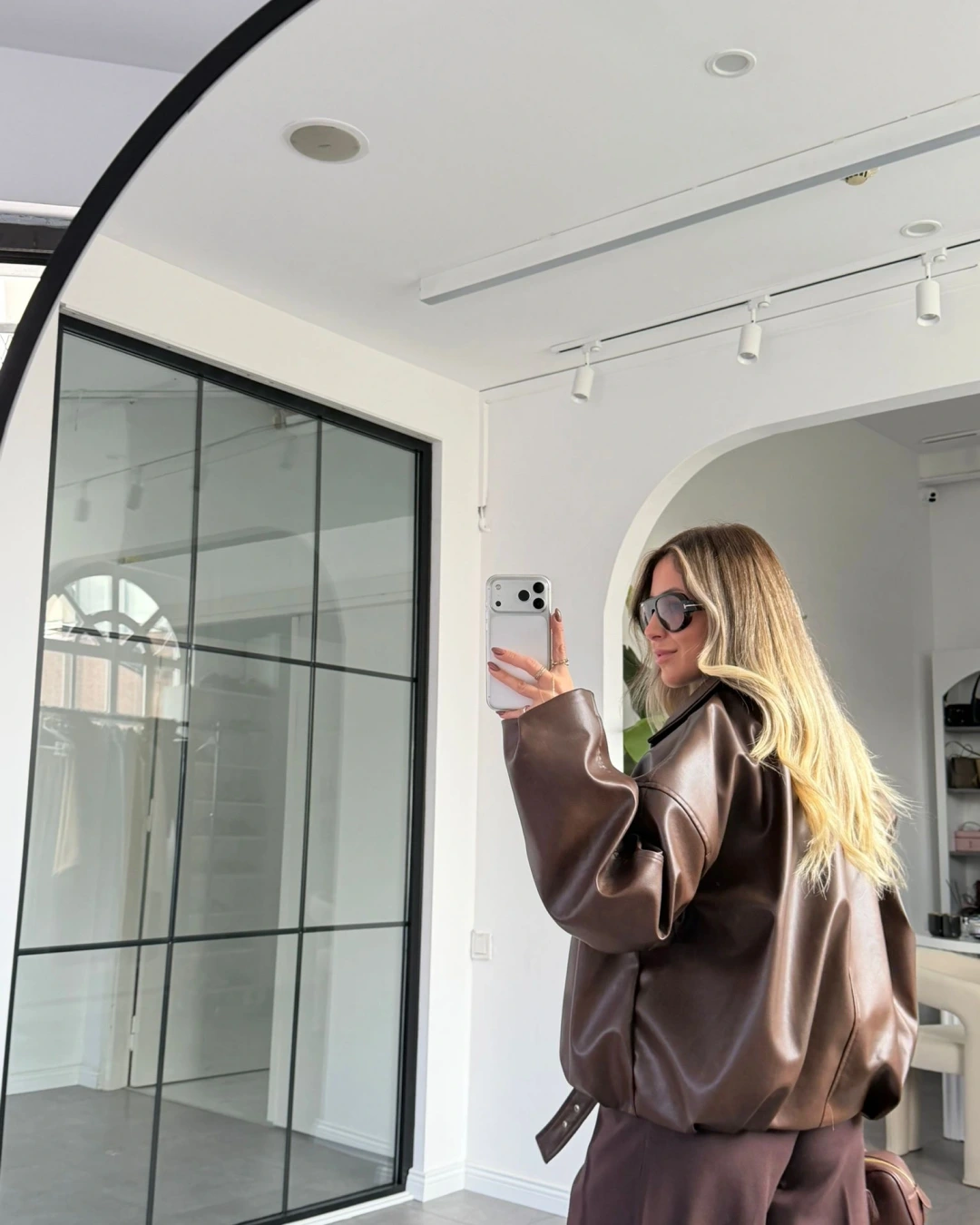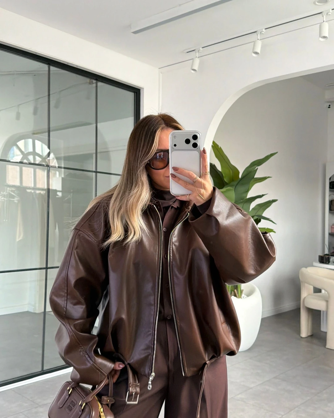 ACI KAHVE BELDEN KEMERLİ DERİ CEKET