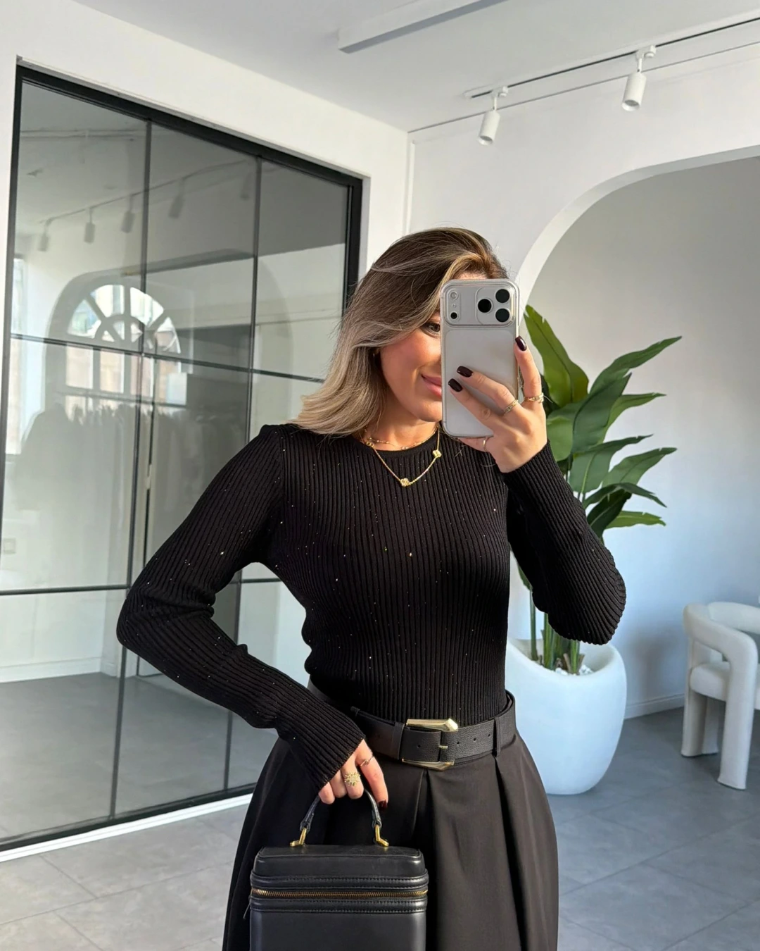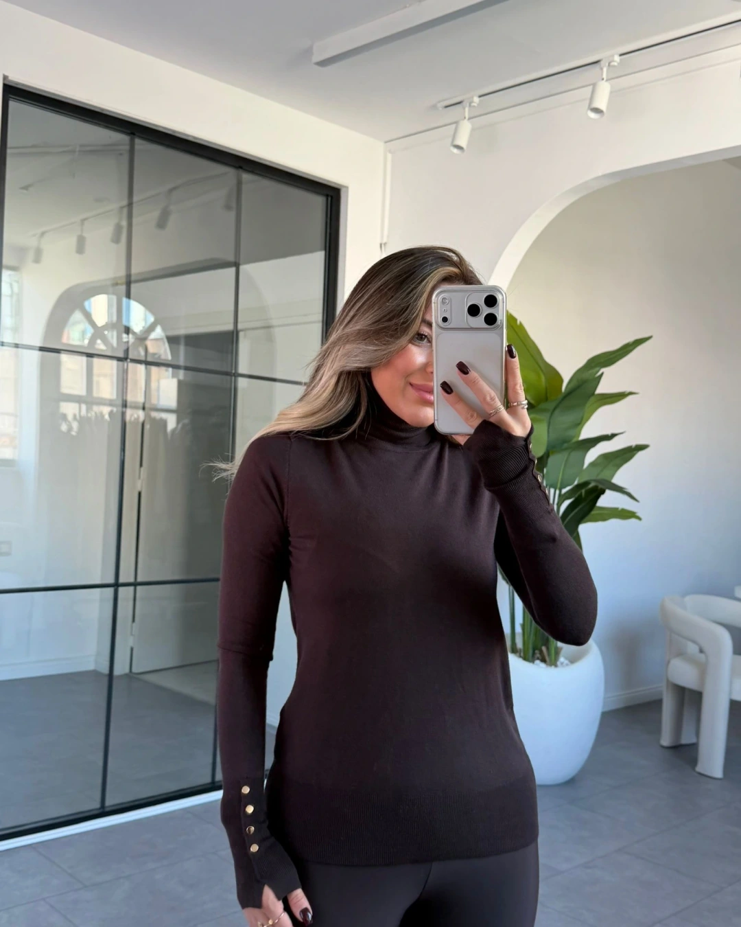 ACI KAHVE BOĞAZLI KOLU DÜĞME DETAYLI KAZAK