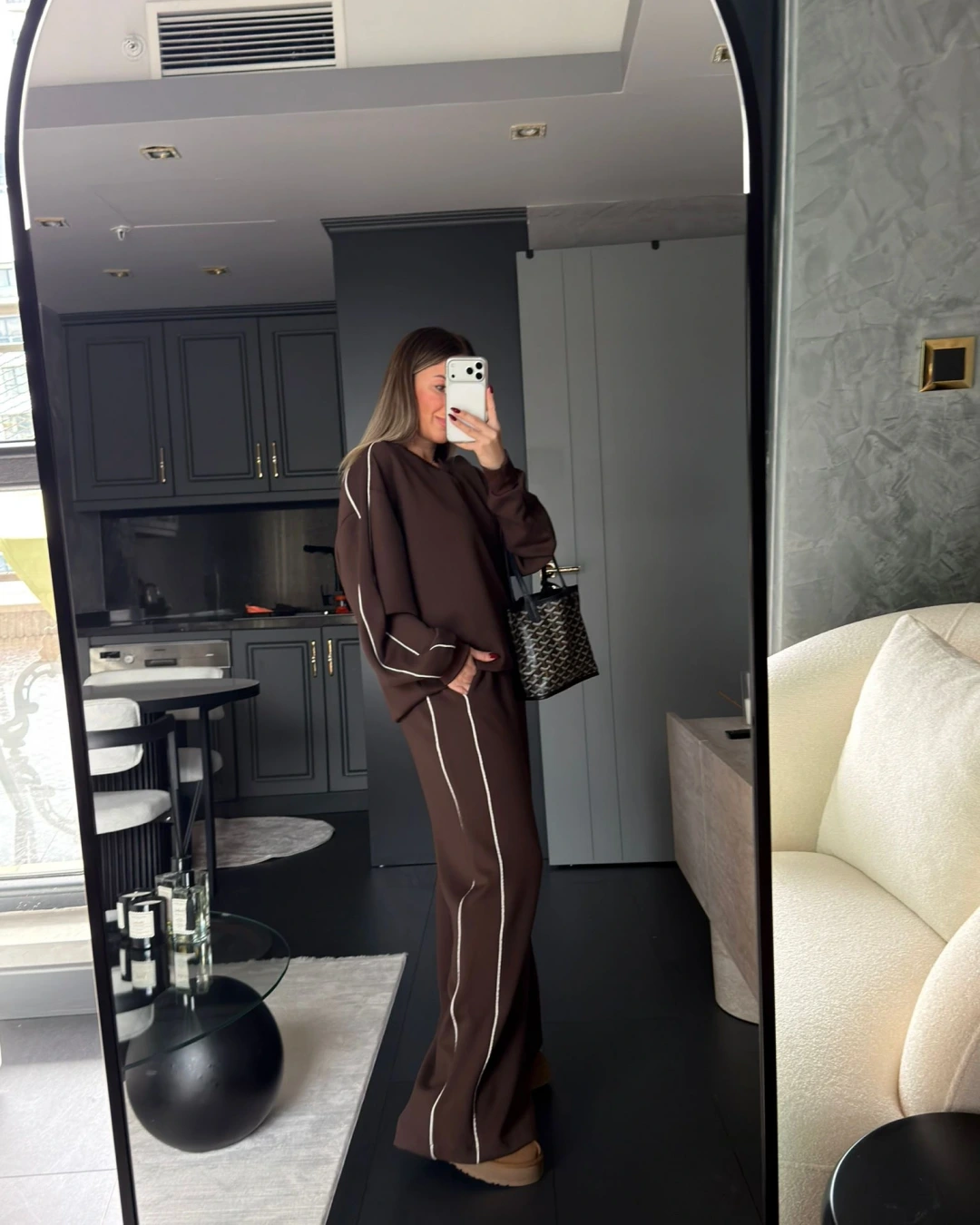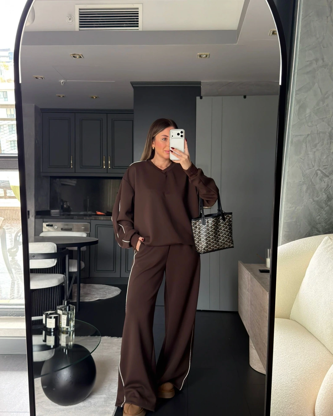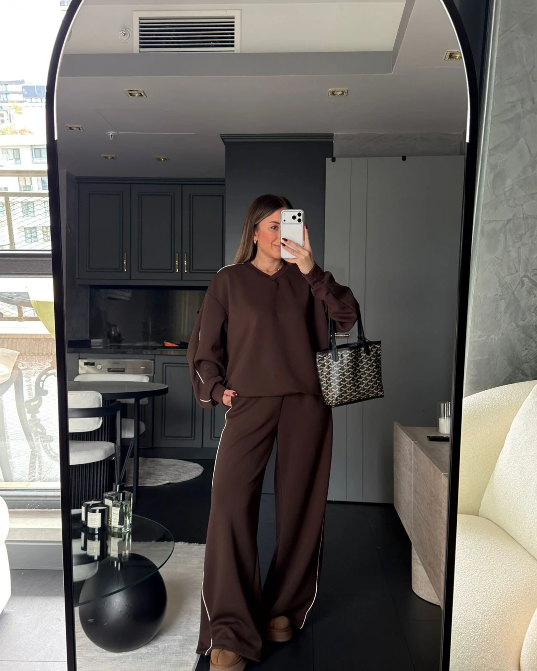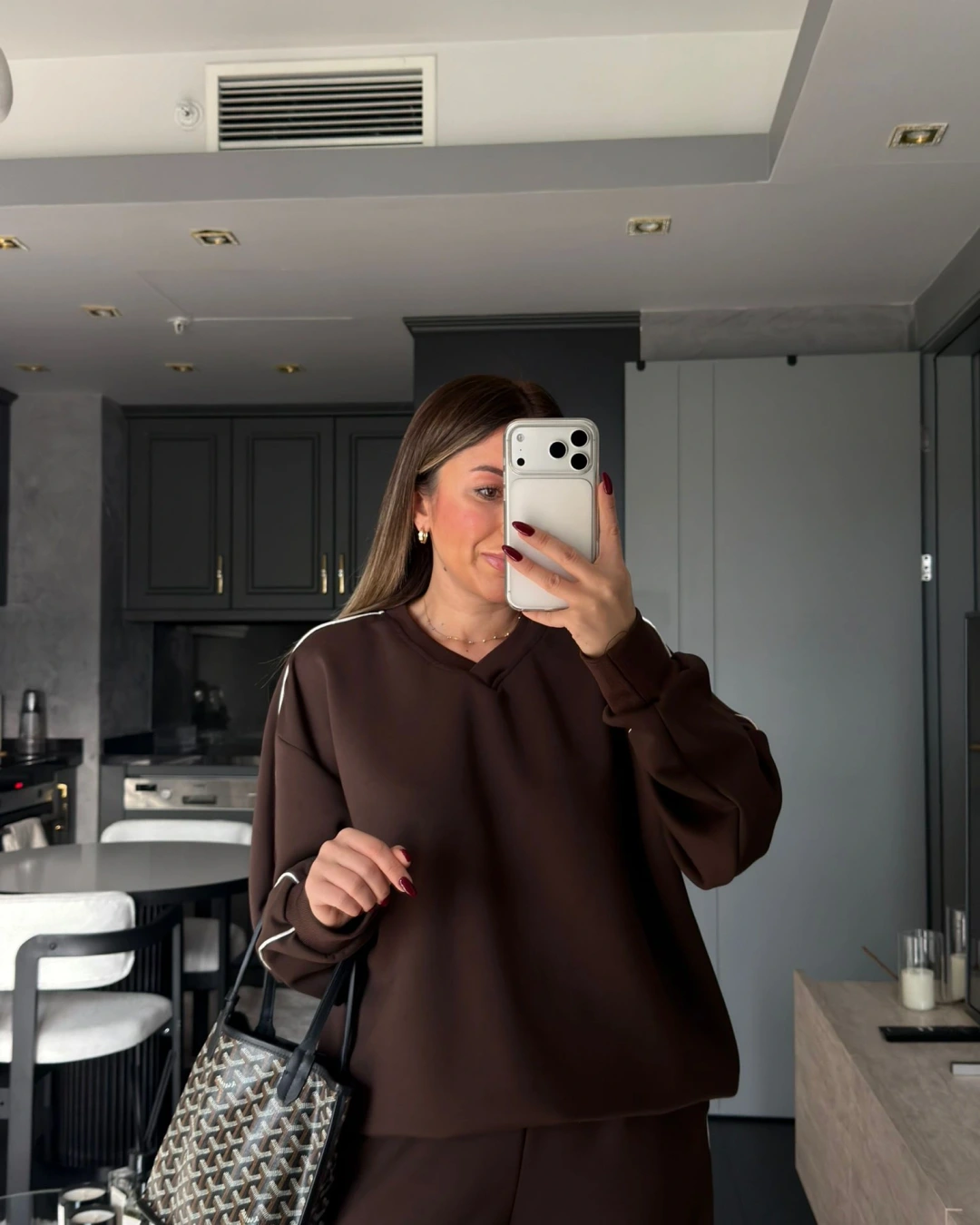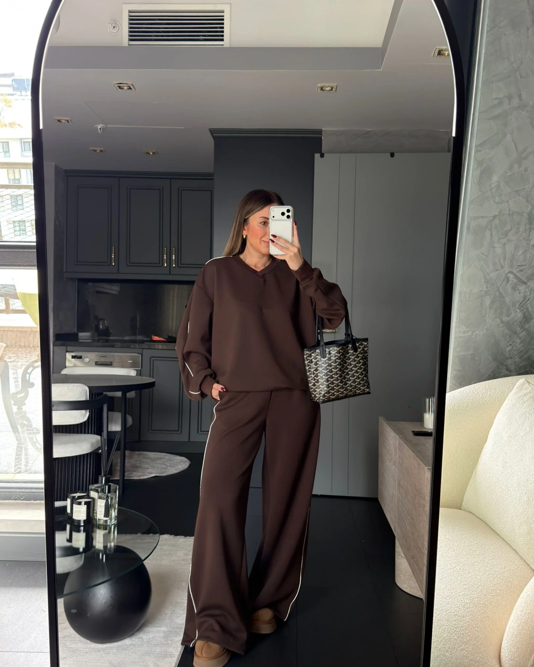 ACI KAHVE ÇİFT ŞERİT DETAYLI MODAL TAKIM