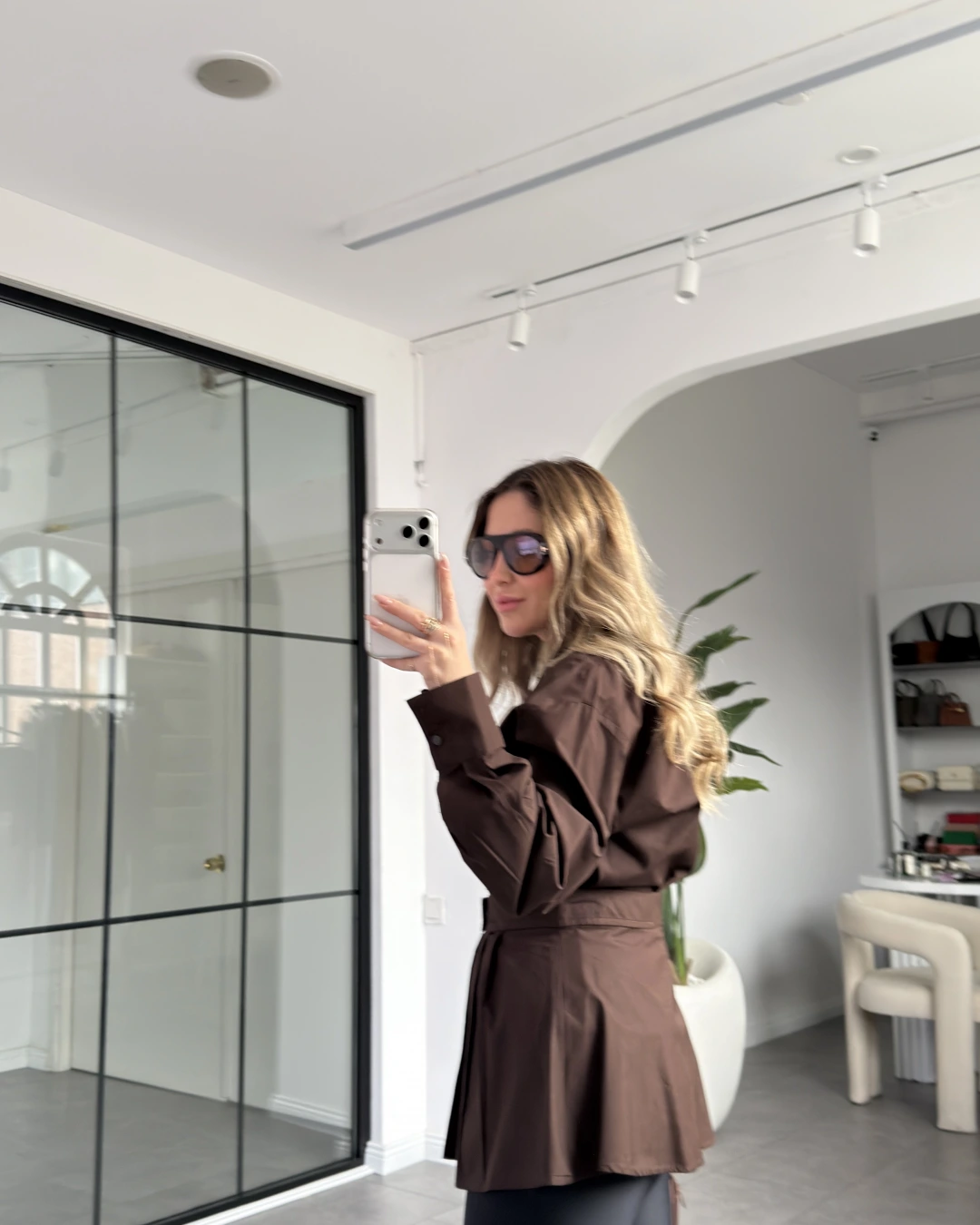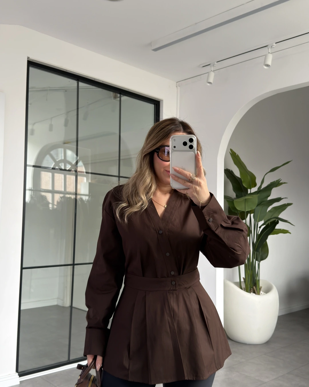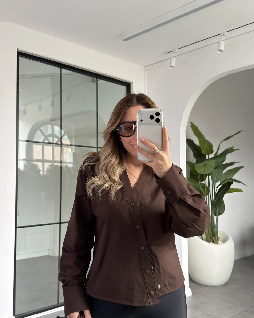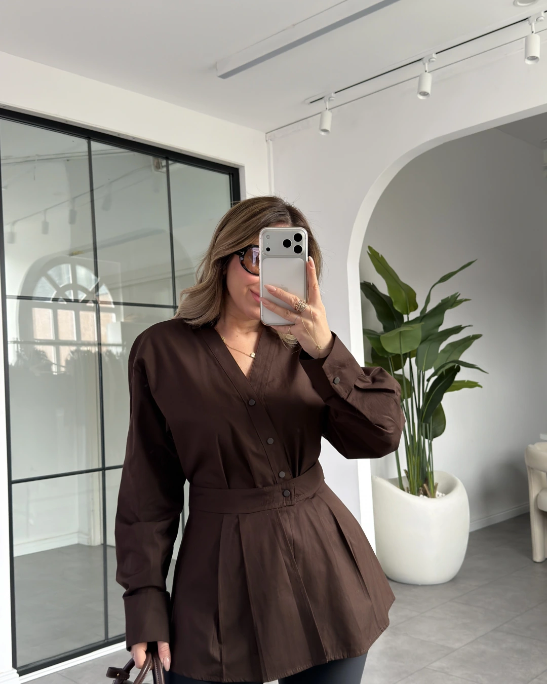 ACI KAHVE ÇIT DETAYLI TASARIM GÖMLEK