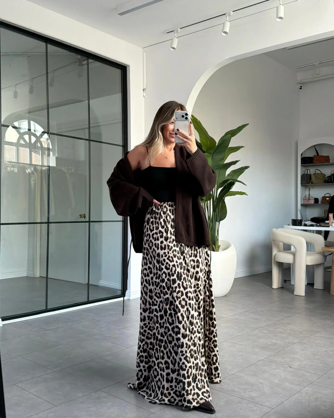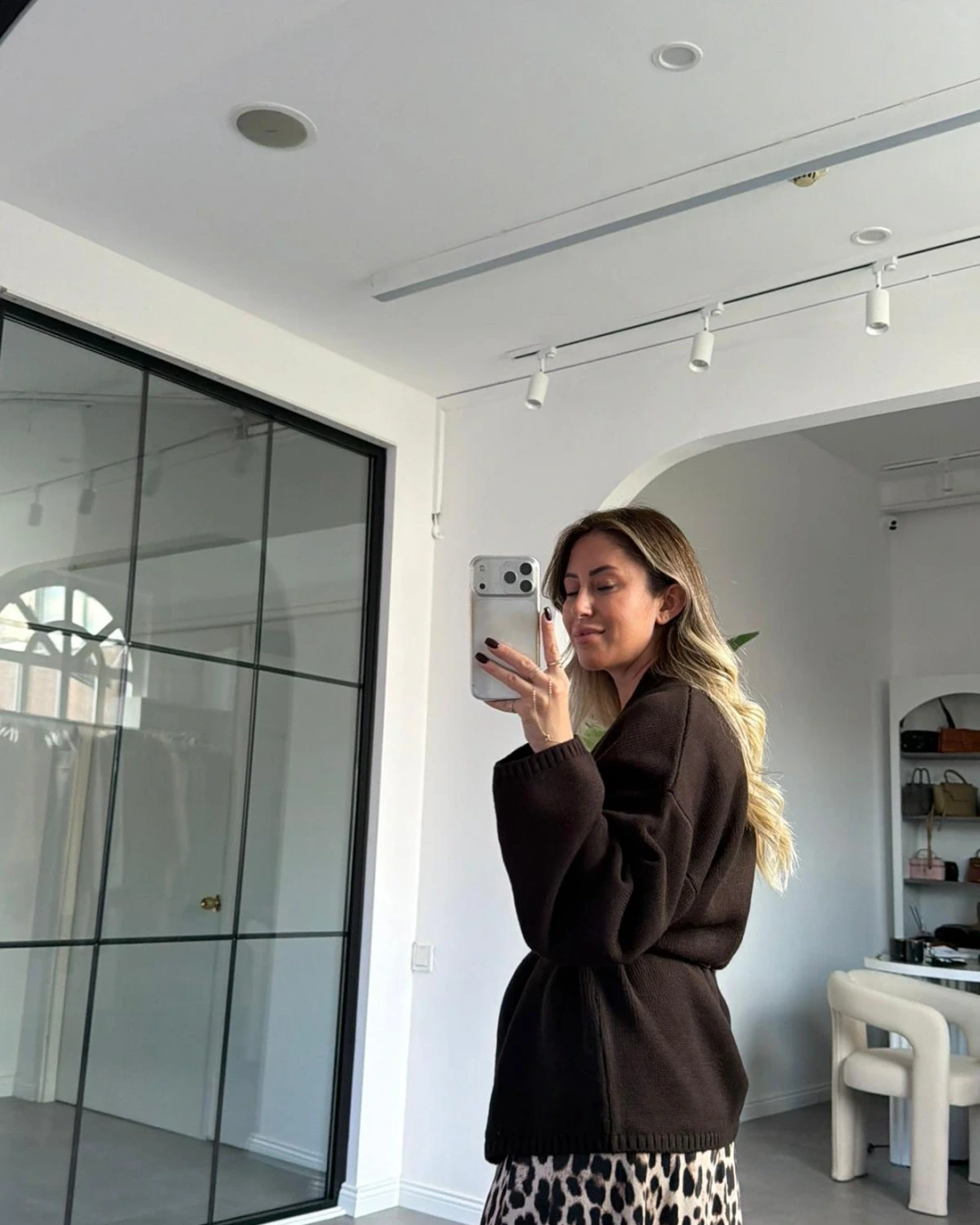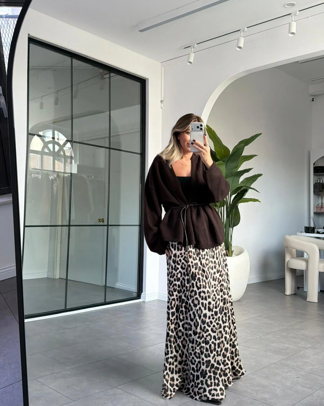 ACI KAHVE DERİ KEMER DETAY TRİKO HIRKA