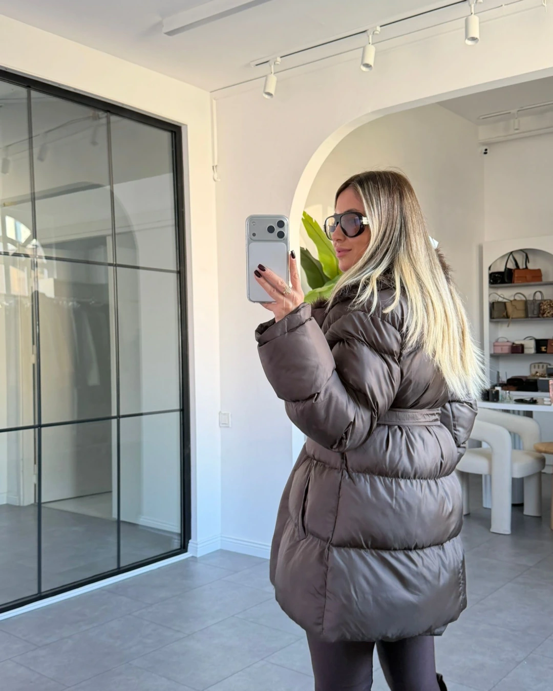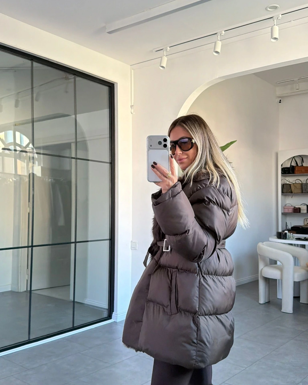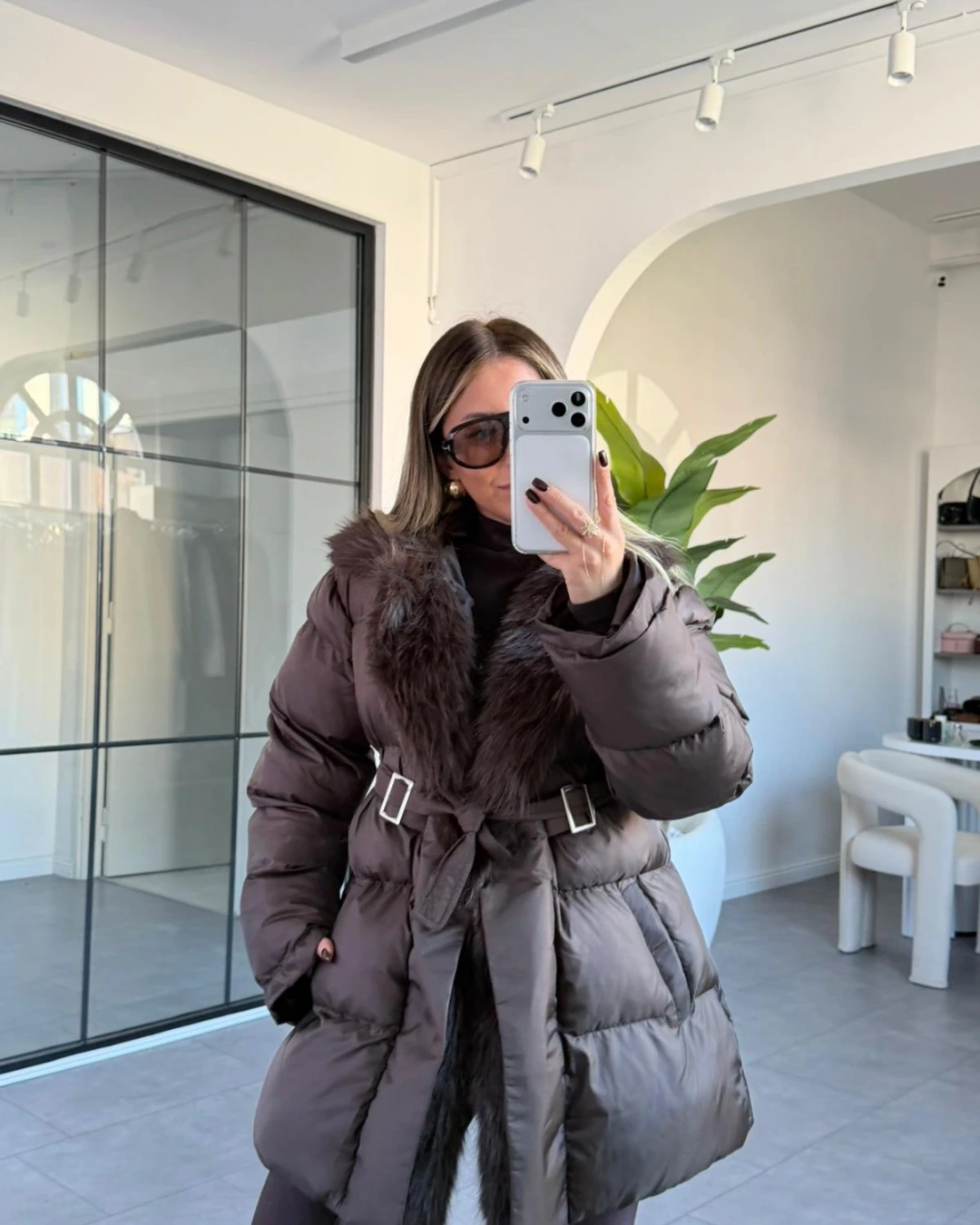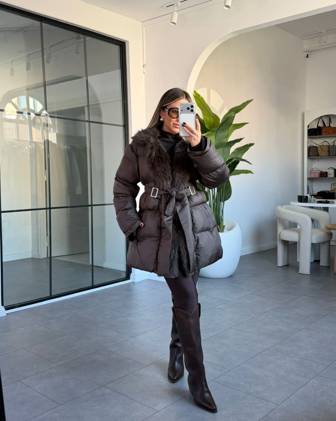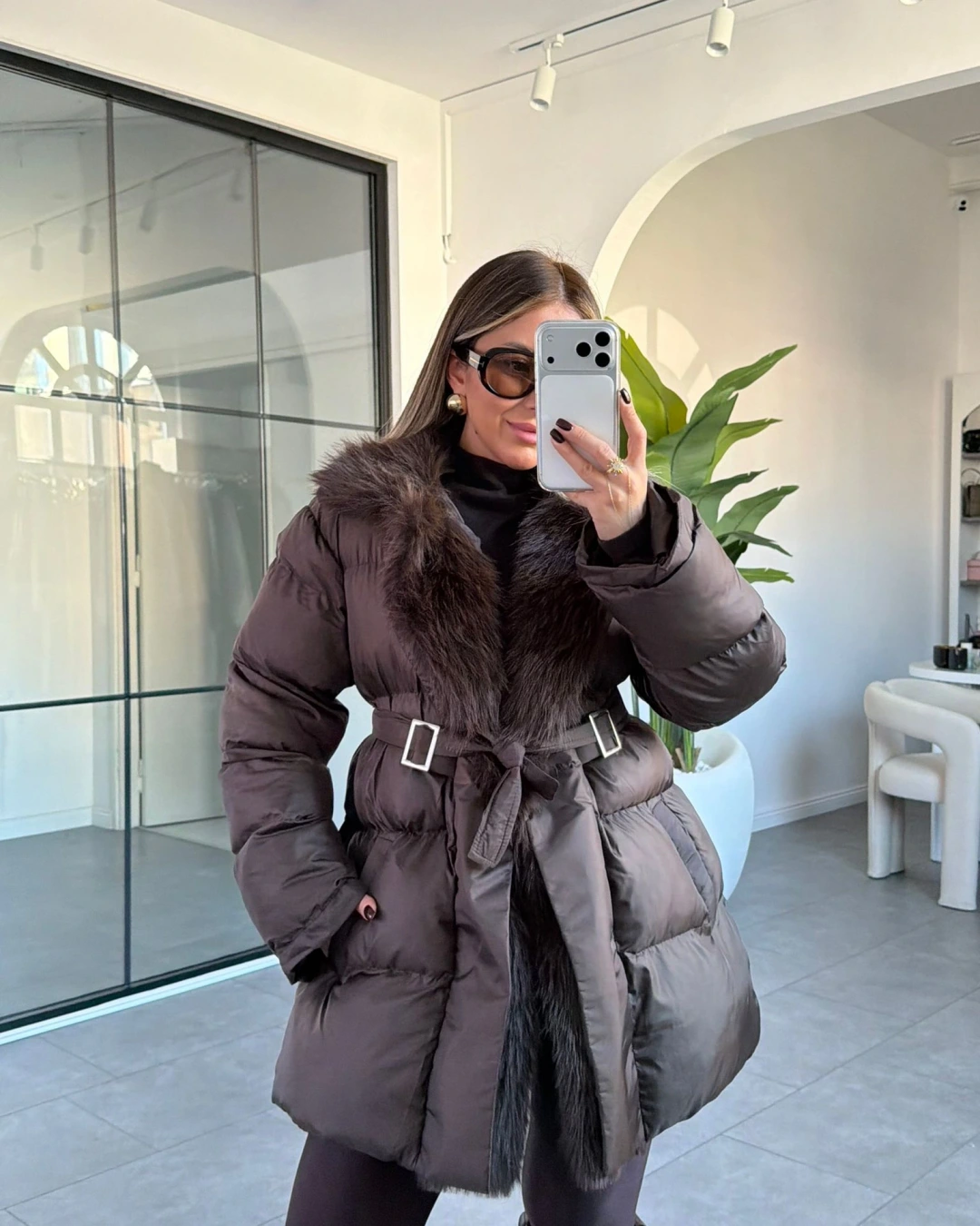 ACI KAHVE KÜRK DETAY ŞİŞME MONT