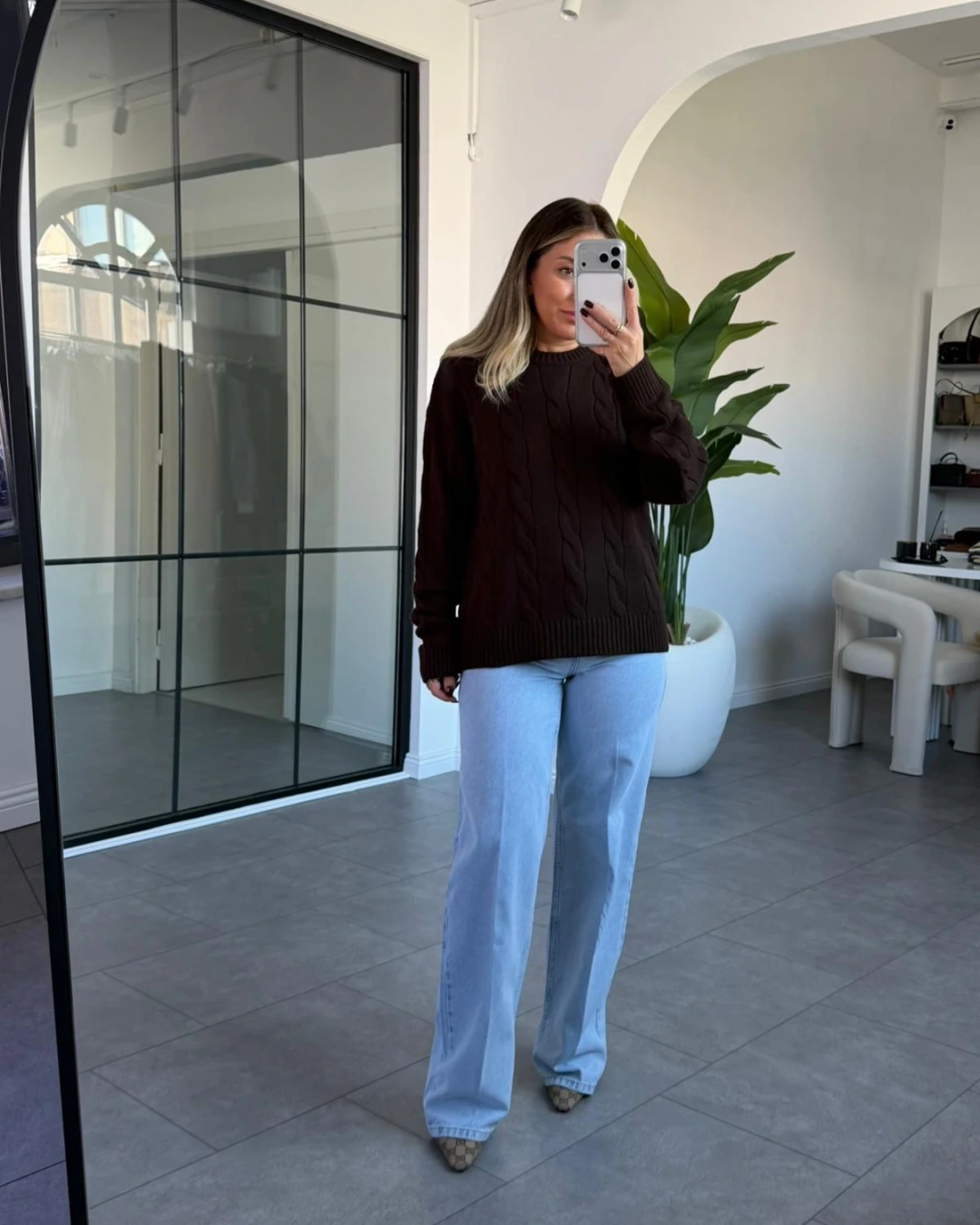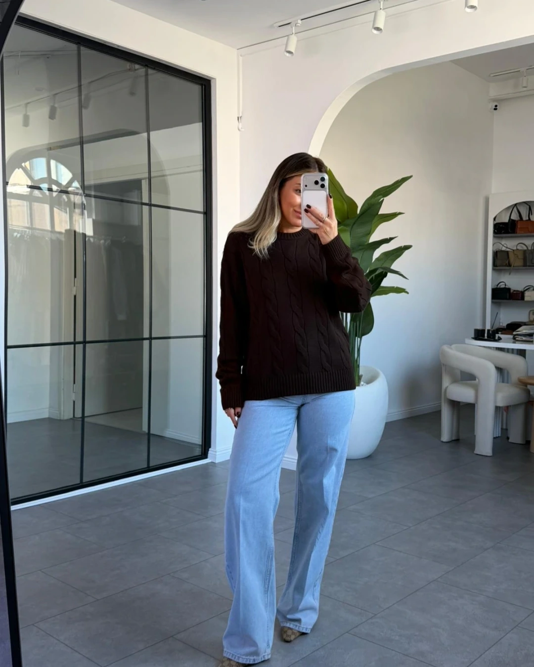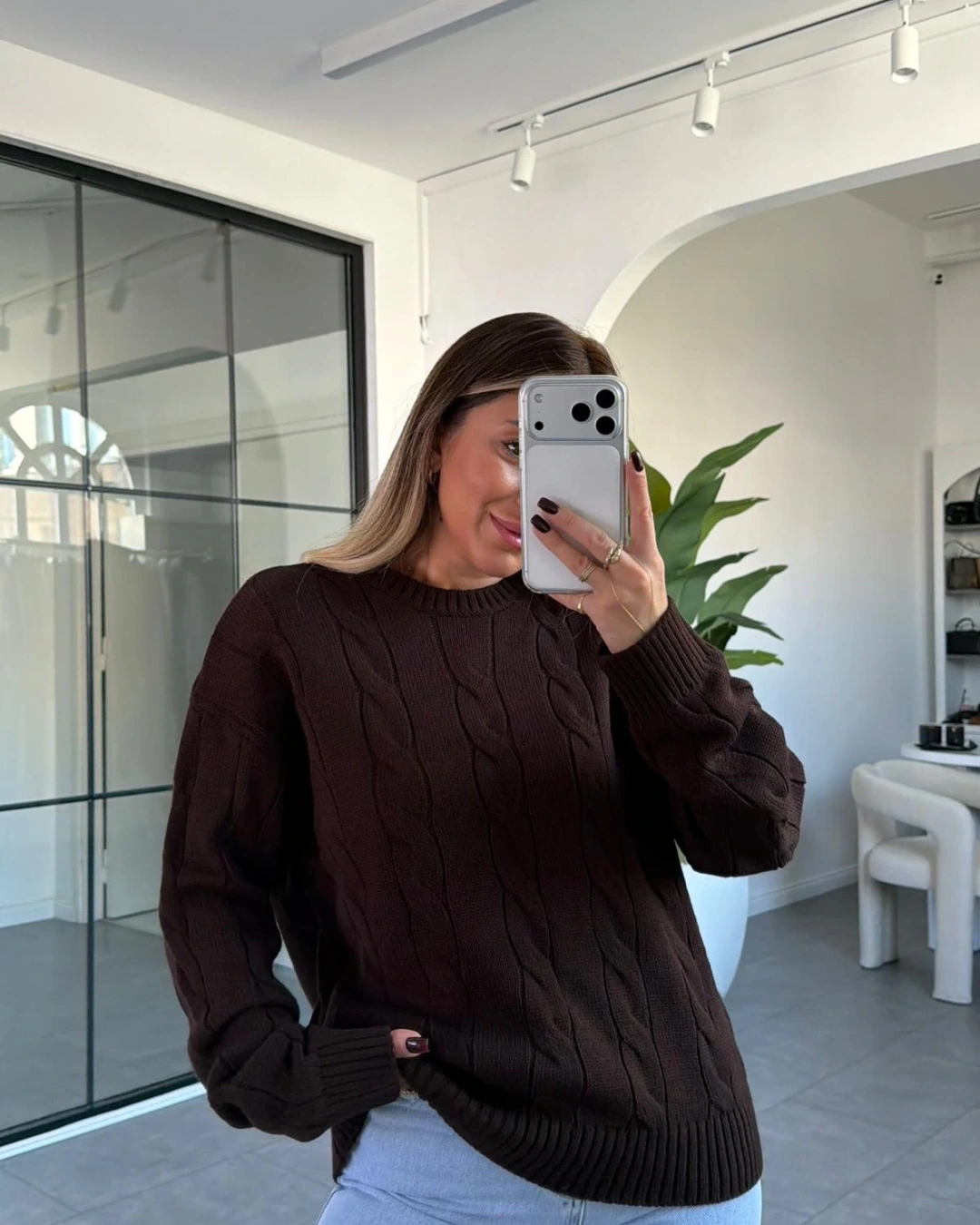 ACI KAHVE SAÇ ÖRGÜ TRİKO KAZAK