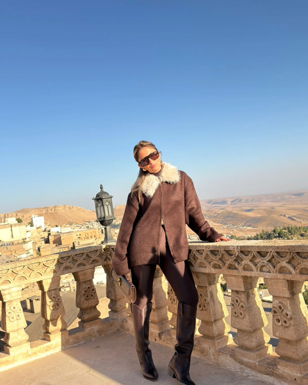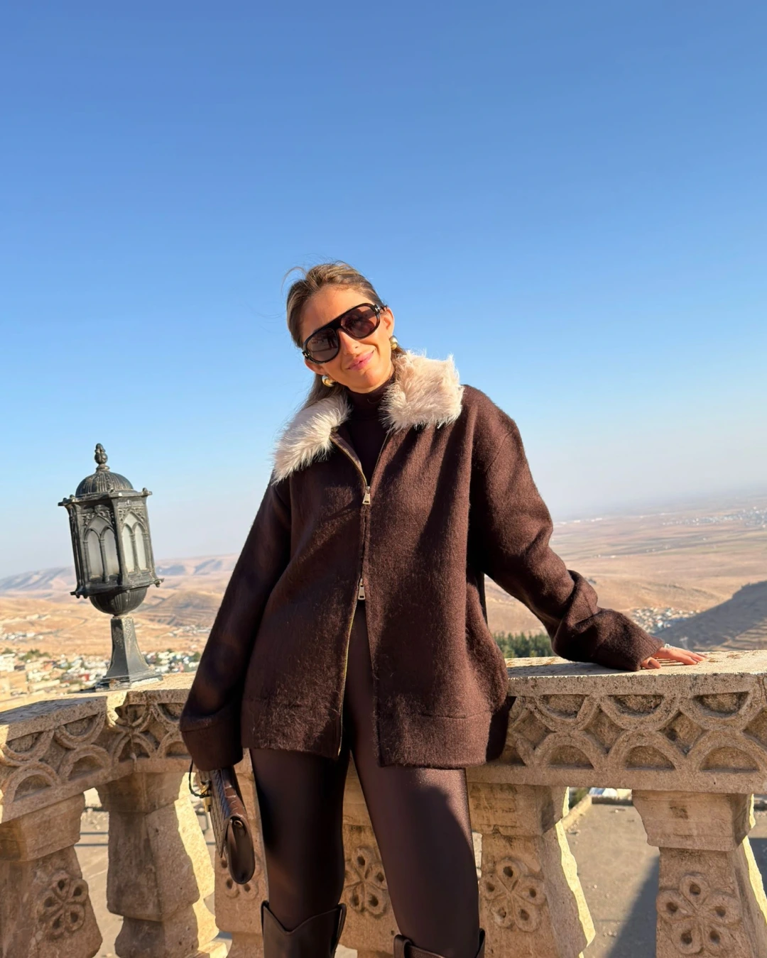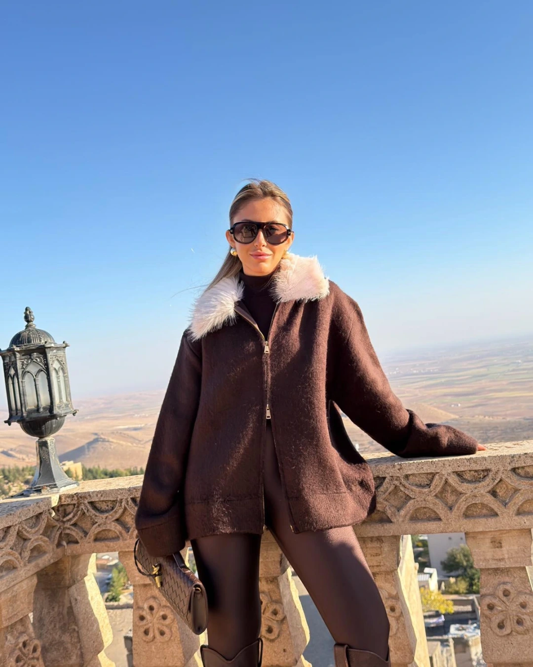 ACI KAHVE YAKASI KÜRK DETAYLI HIRKA
