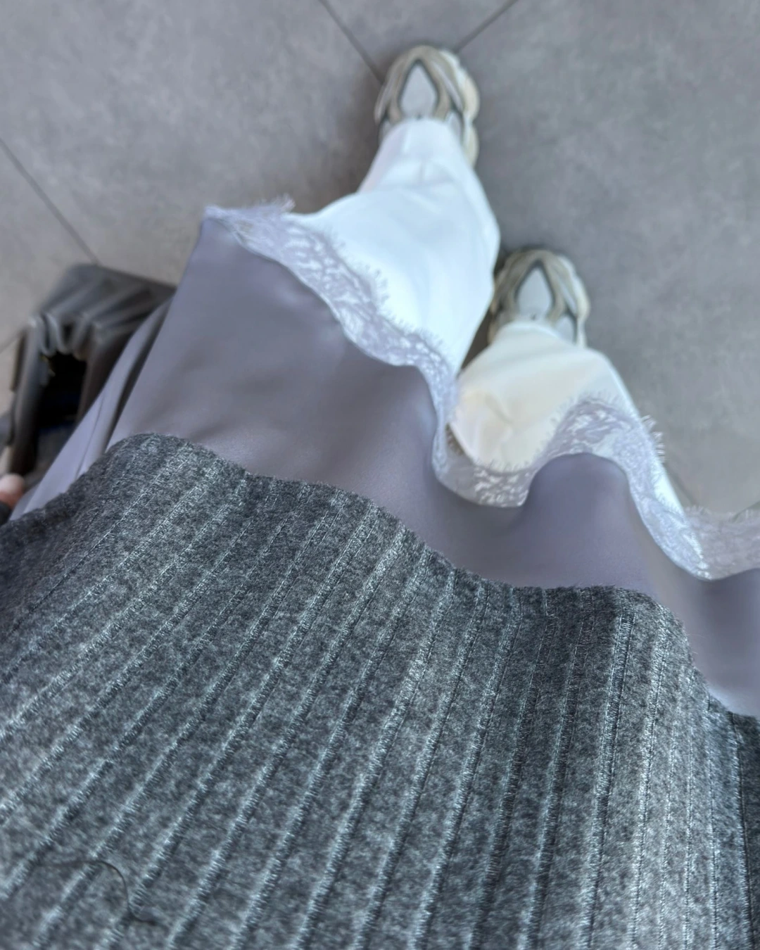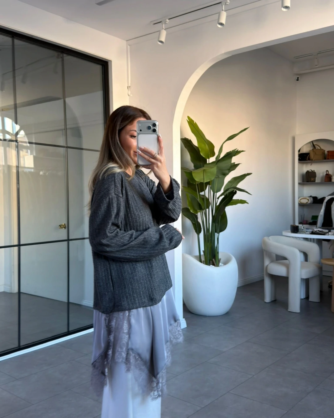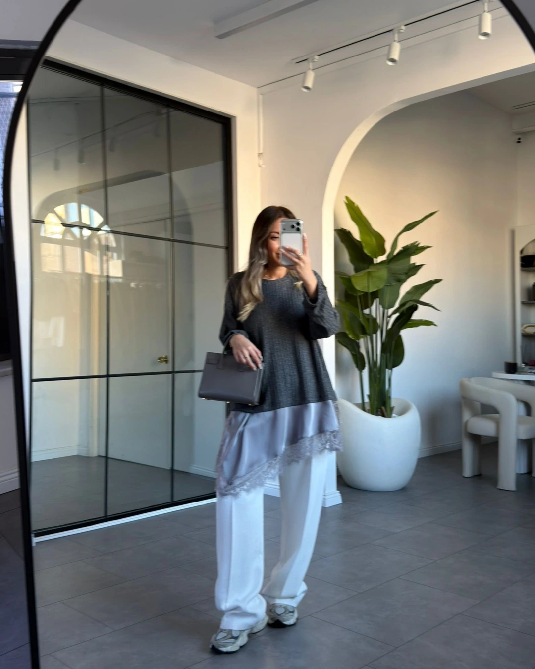 ANTRASİT DANTEL DETAY TRİKO BLUZ