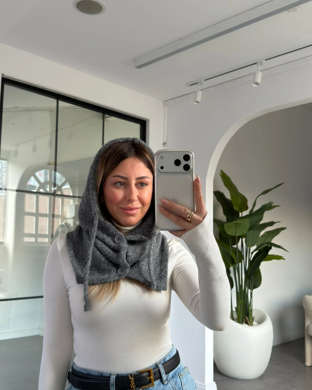 ANTRASİT DÜĞME DETAY BALACLAVA ŞAPKA