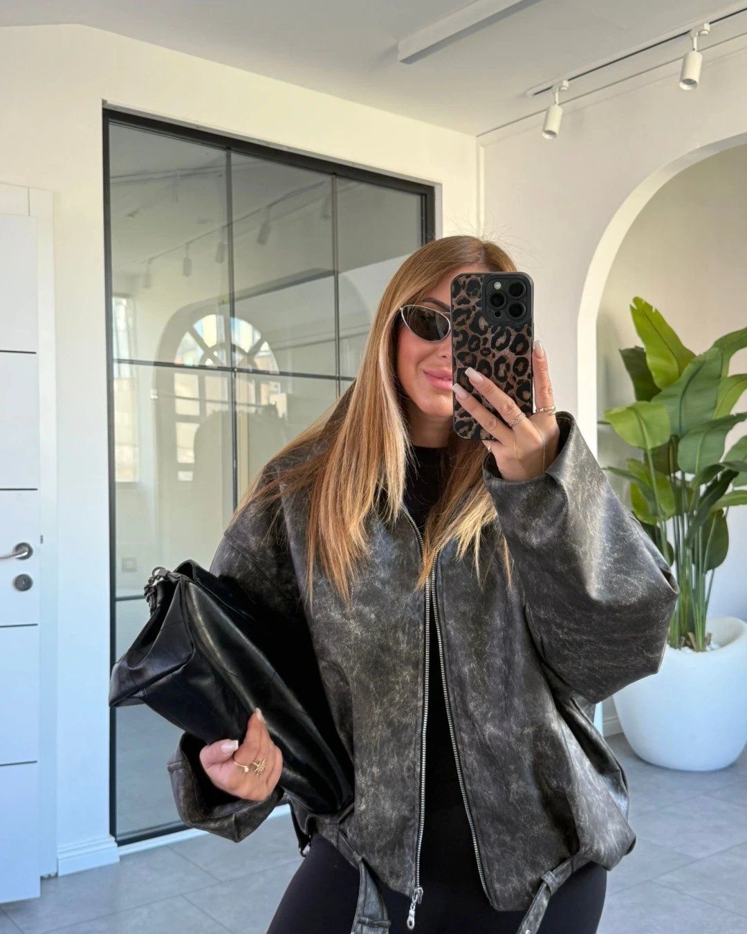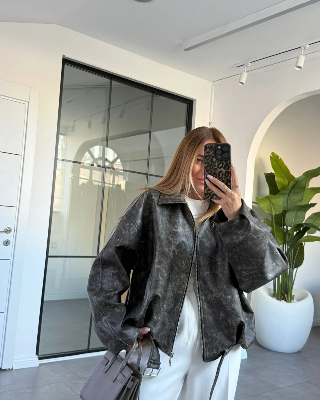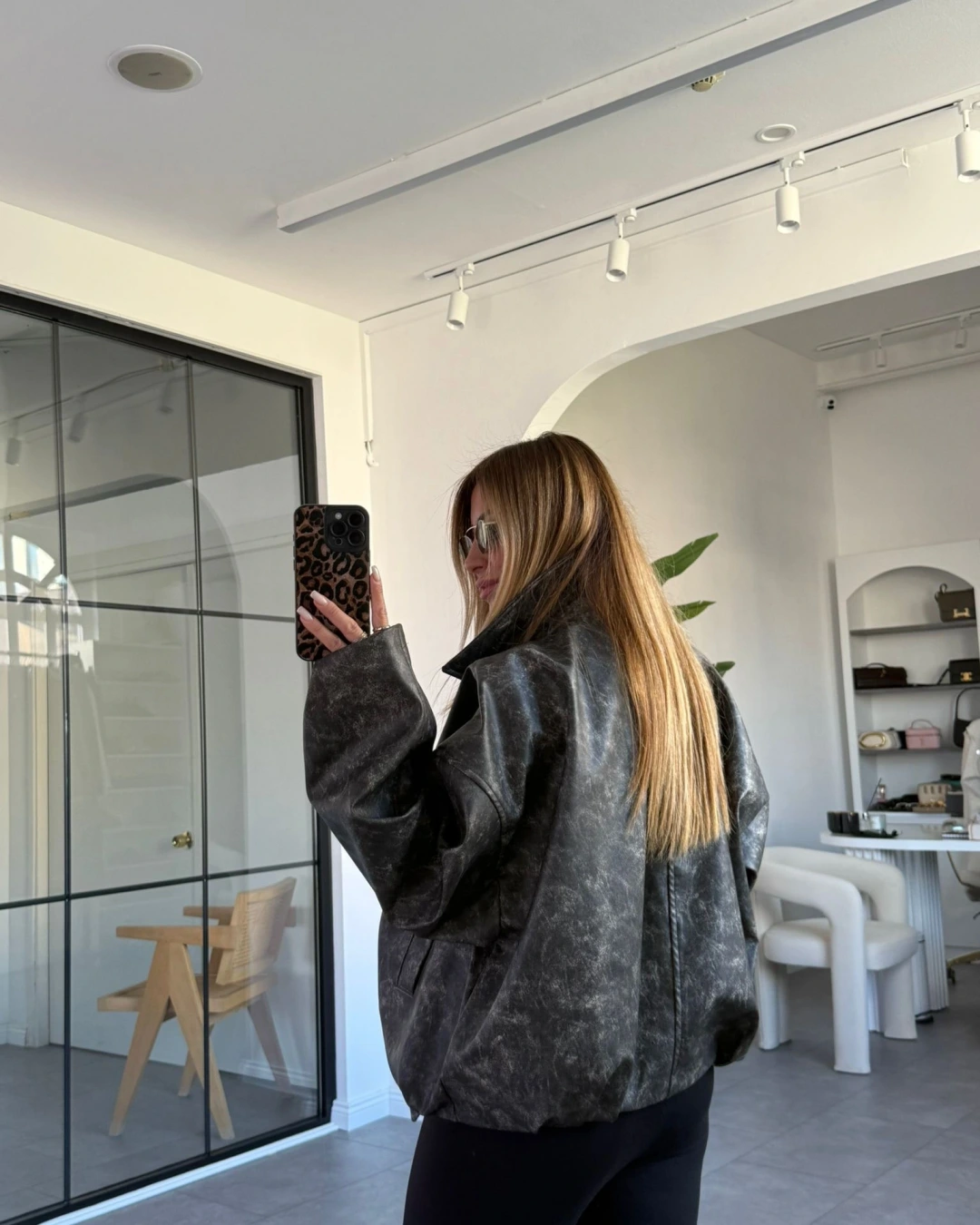 ANTRASİT ESKİTME BOMBER DERİ CEKET