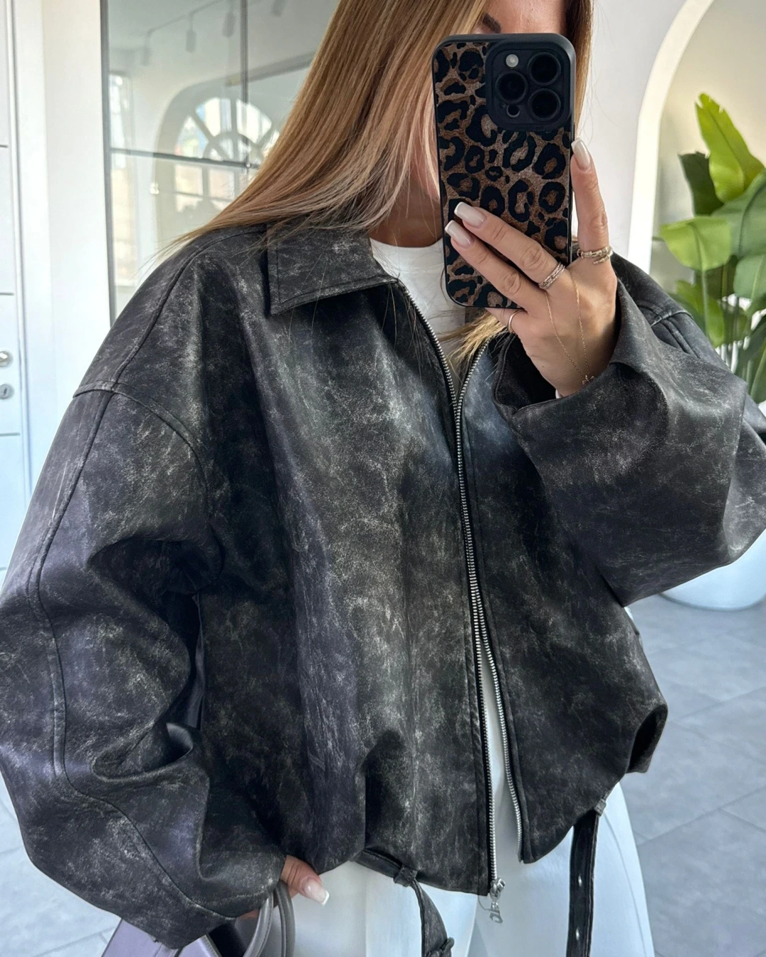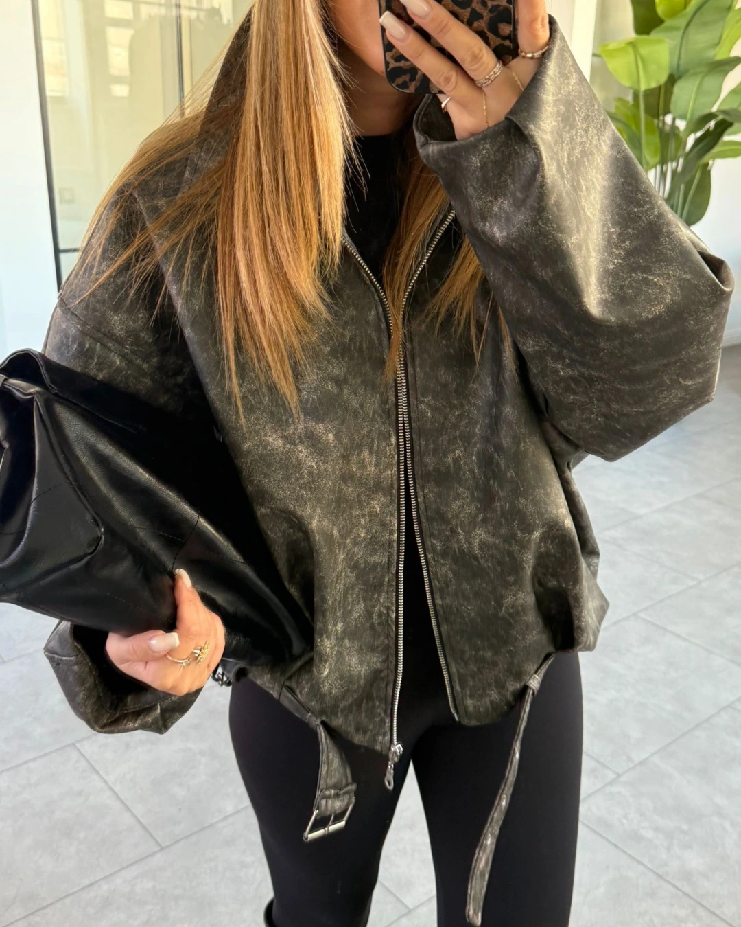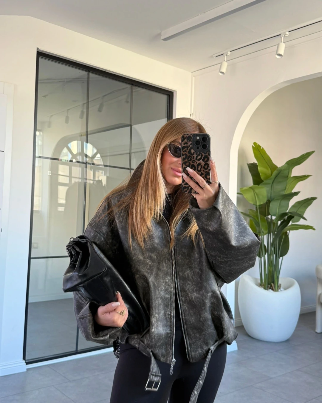 ANTRASİT ESKİTME BOMBER DERİ CEKET