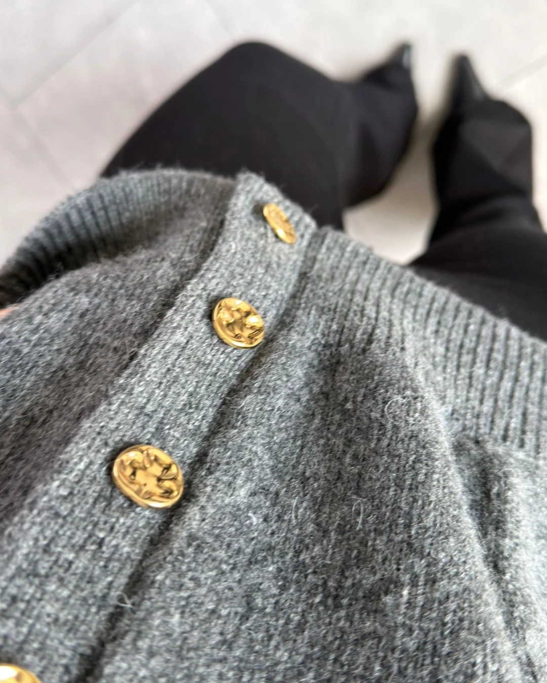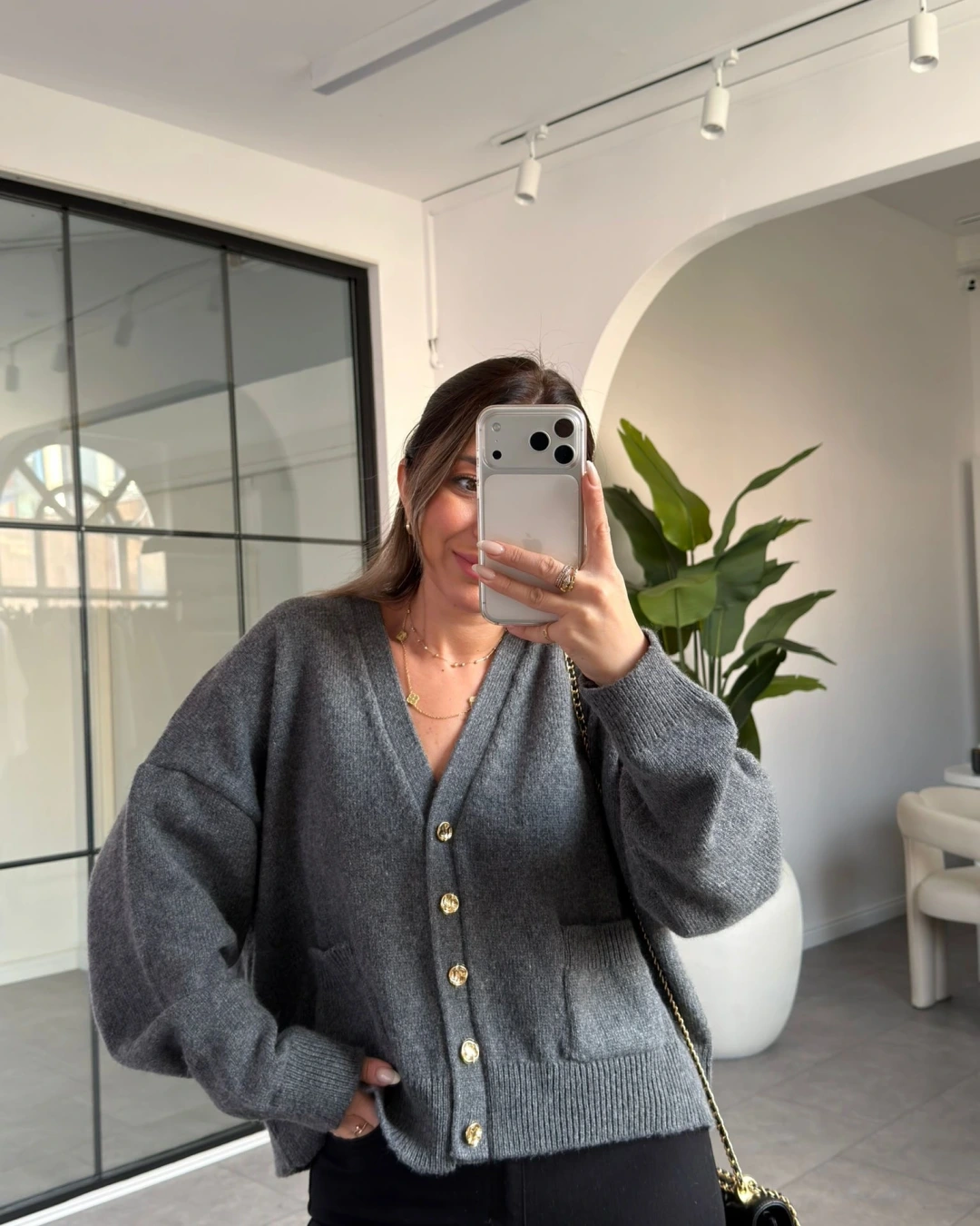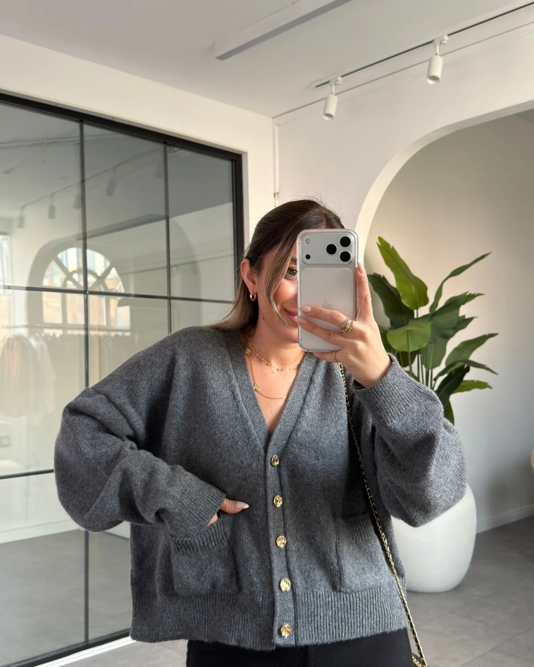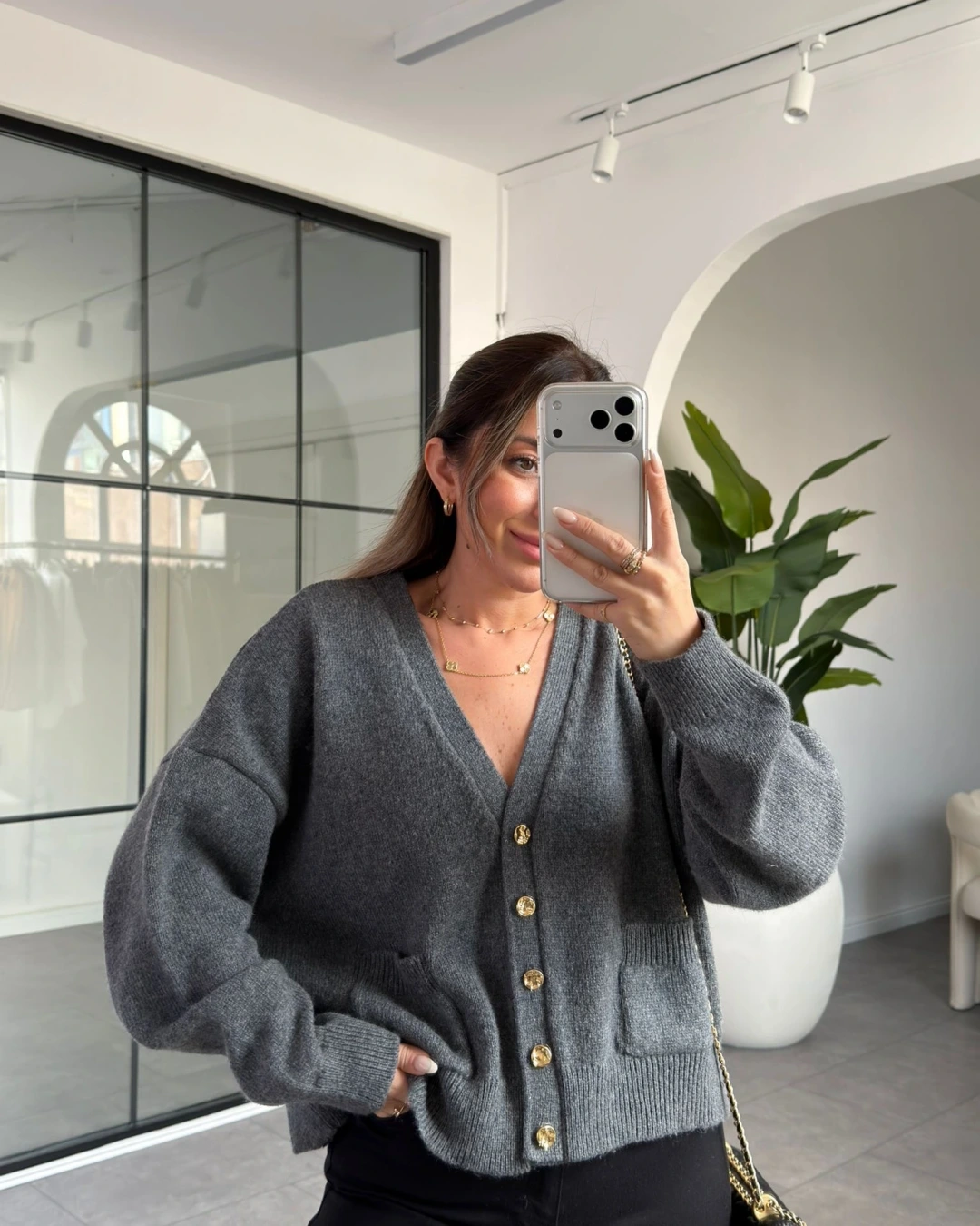 ANTRASİT GOLD DÜĞMELİ CEP DETAY HIRKA