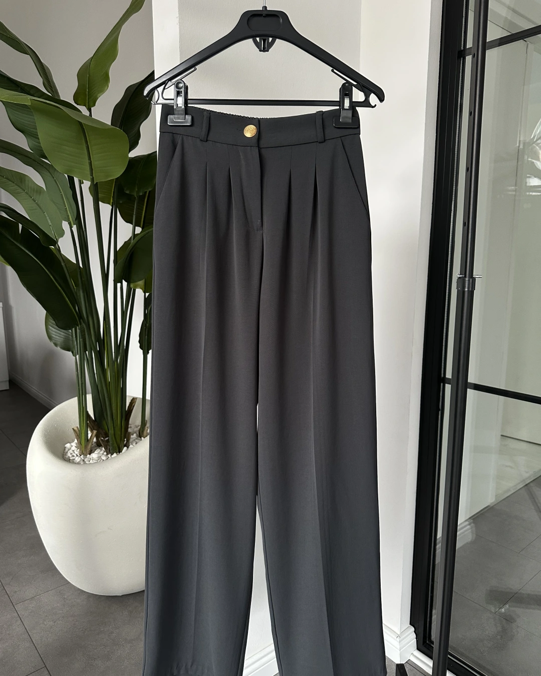 ANTRASİT GOLD DÜĞMELİ PİLELİ PALAZZO PANTOLON