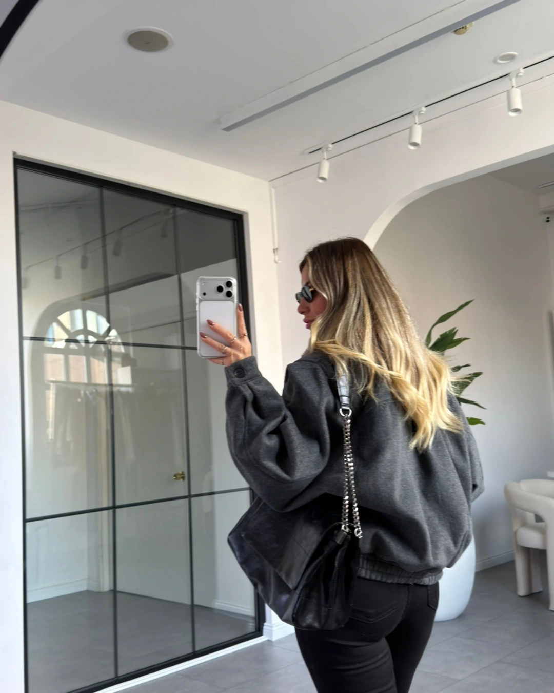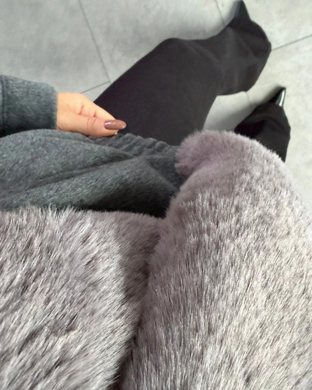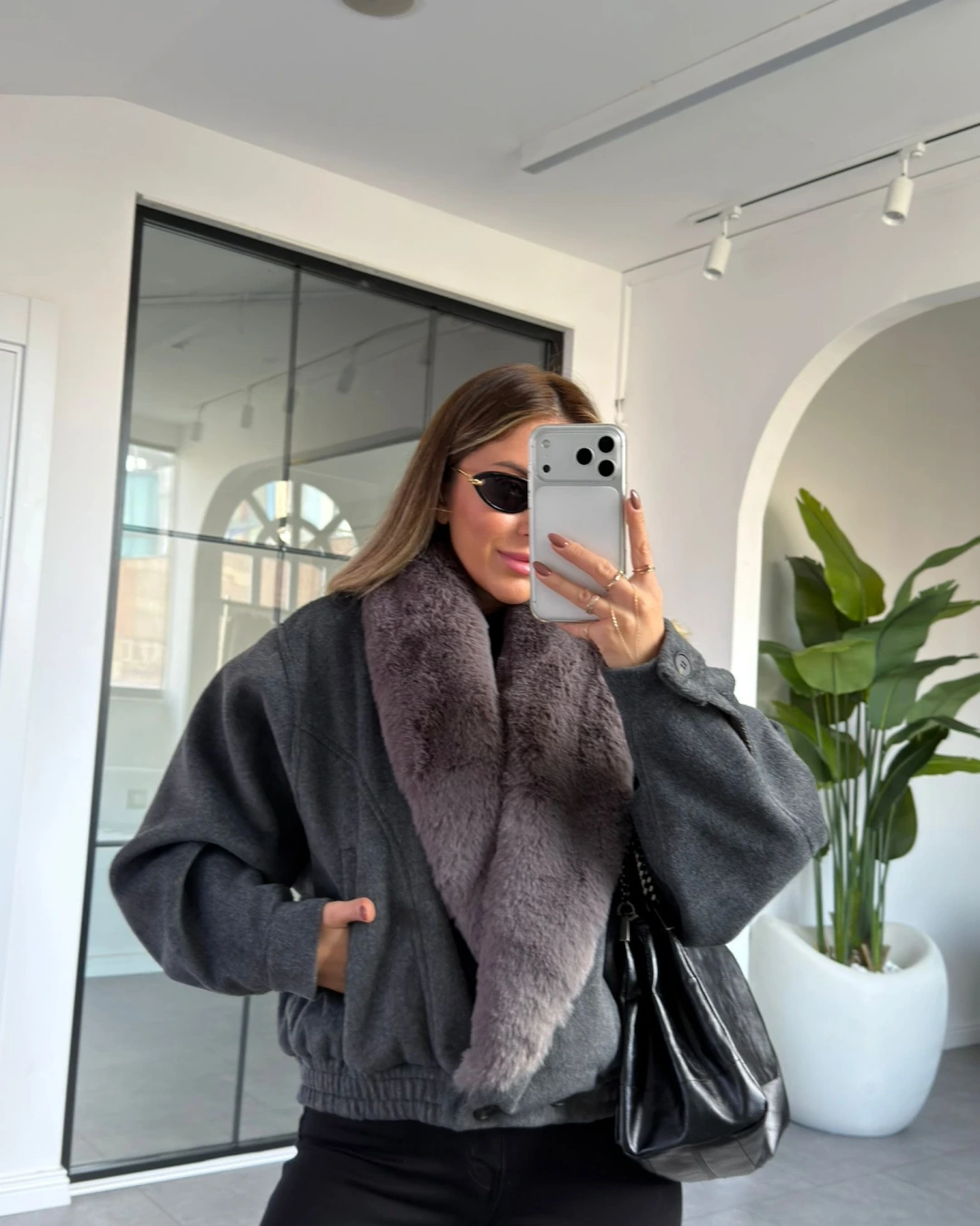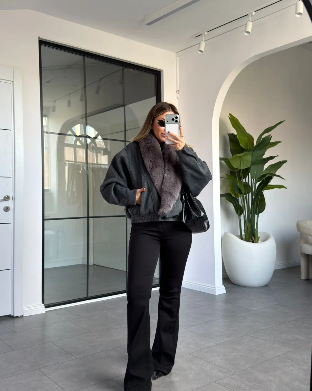 ANTRASİT KRUVAZE YAKA KÜRKLÜ KISA KAŞE MONT