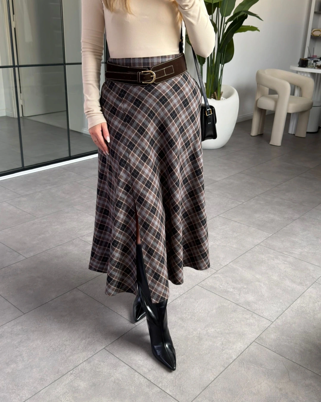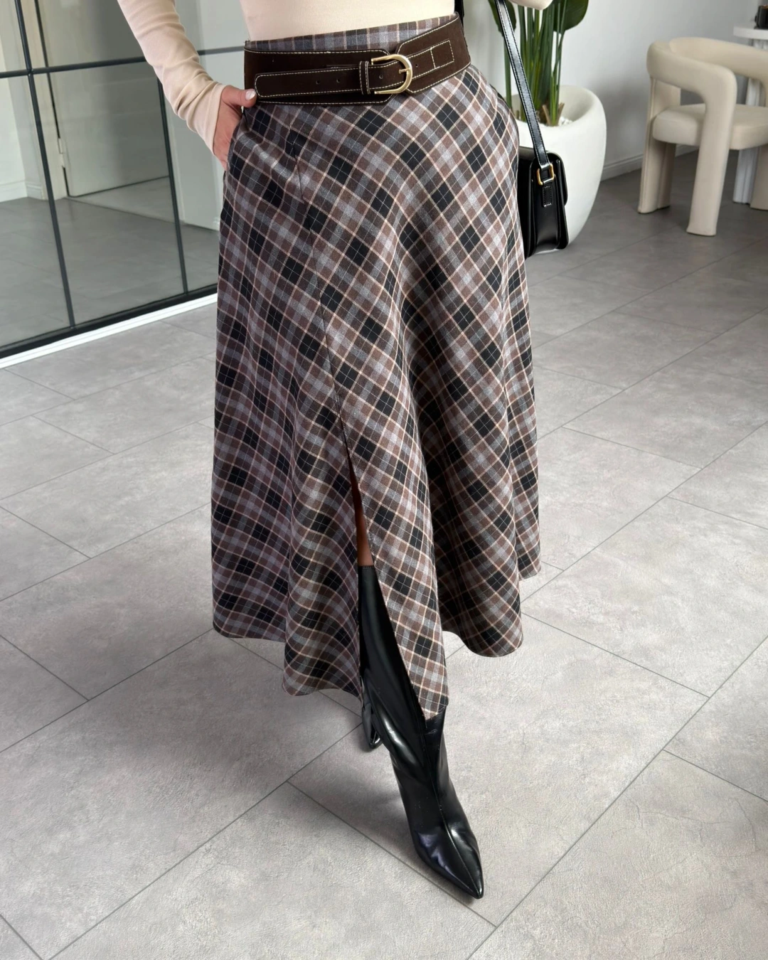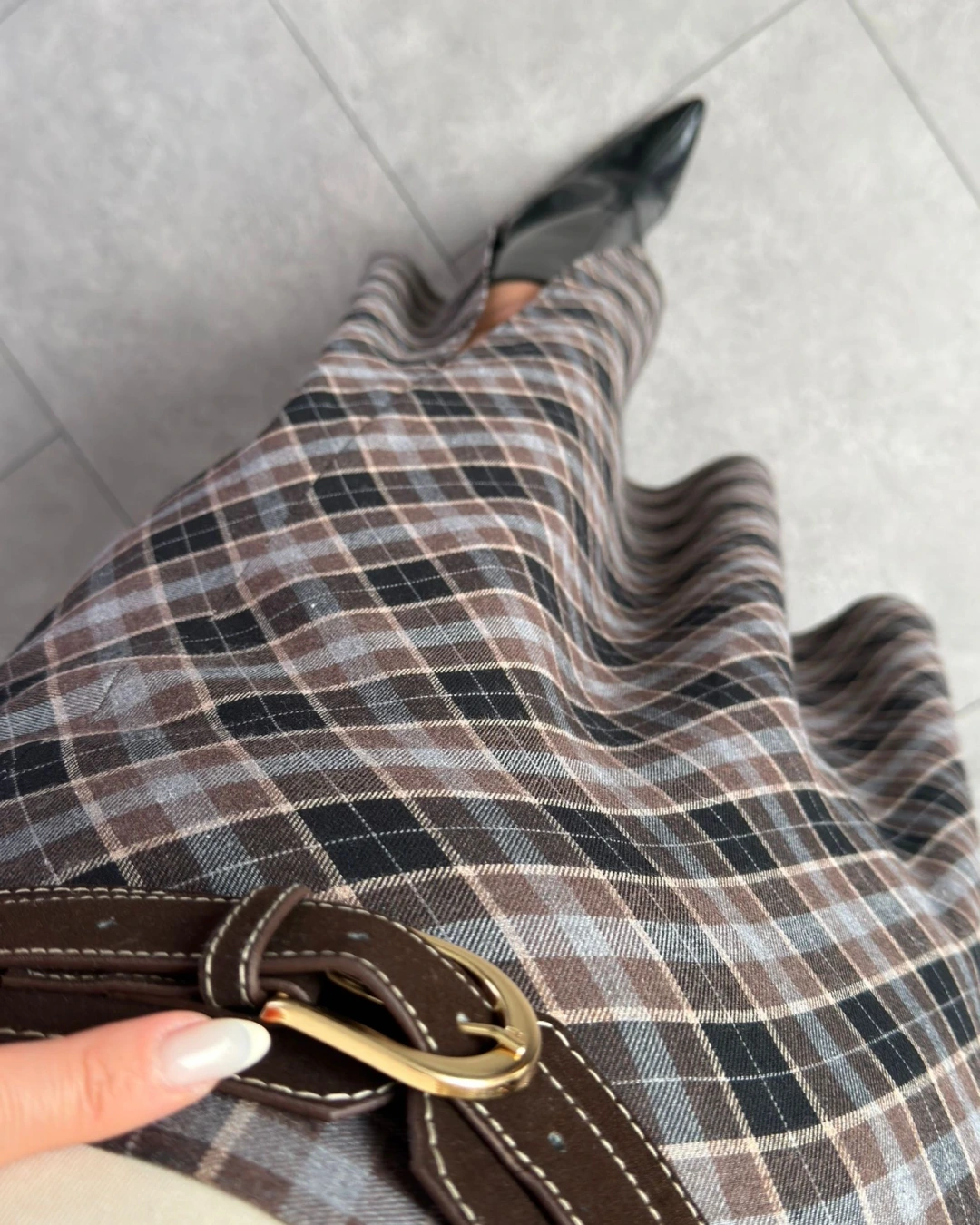 ANTRASİT MAVİ YIRTMAÇ DETAY KEMERLİ EKOSE ETEK