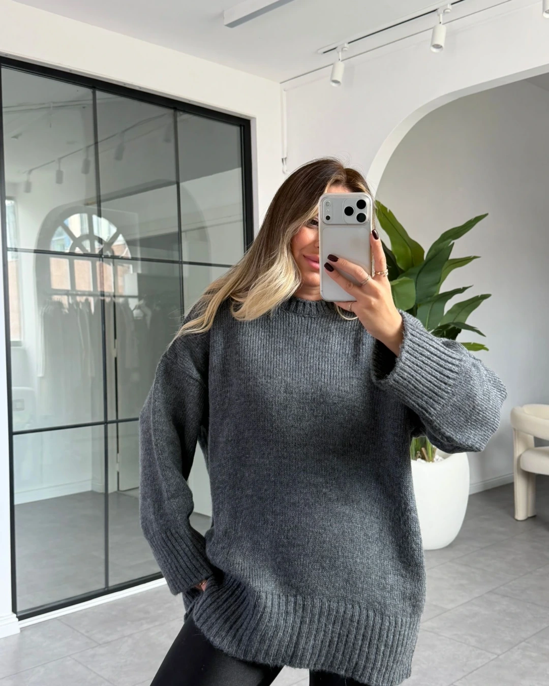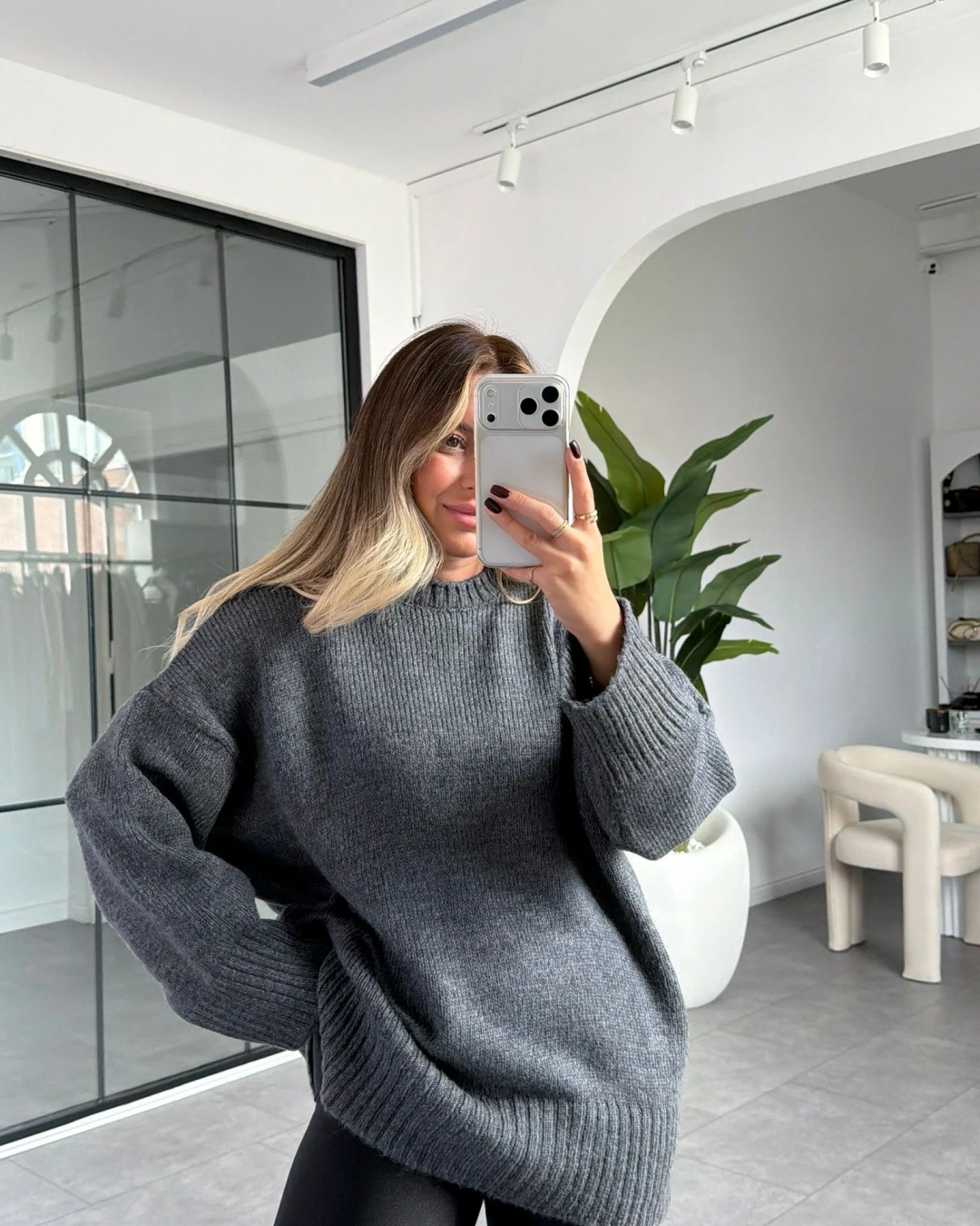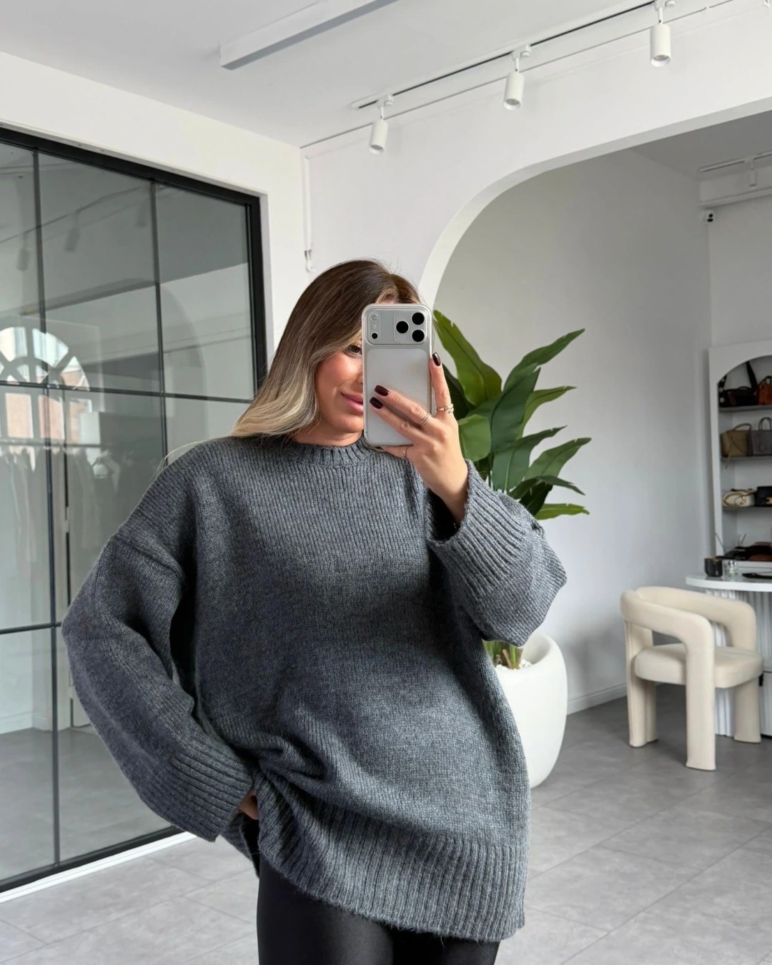 ANTRASİT OVERSİZE BİSİKLET YAKA ÖRGÜ KAZAK