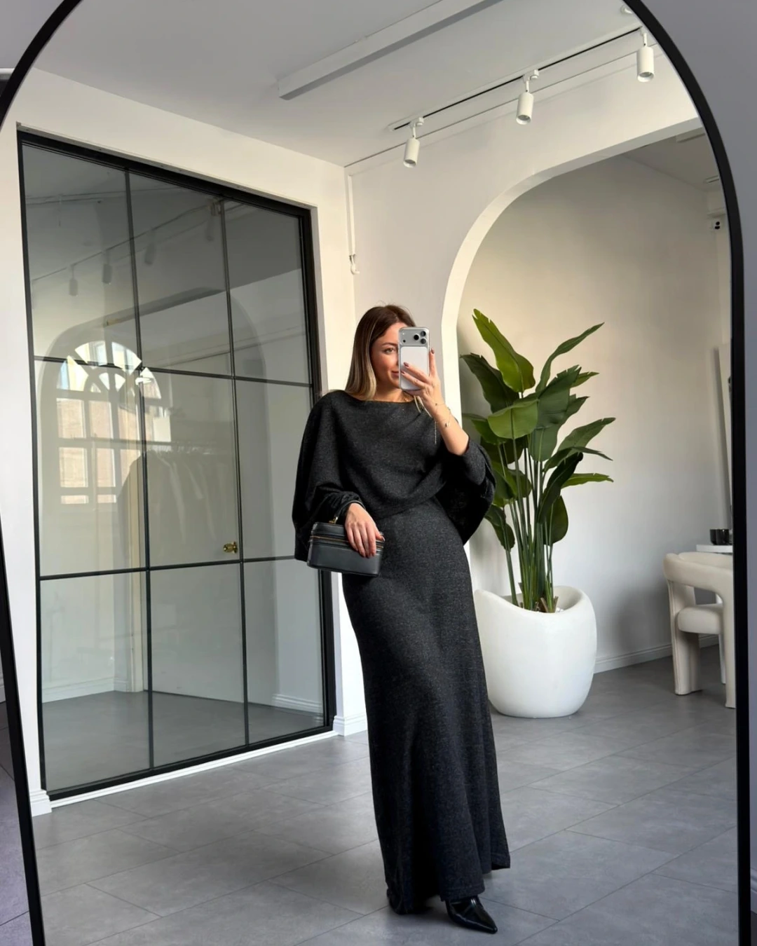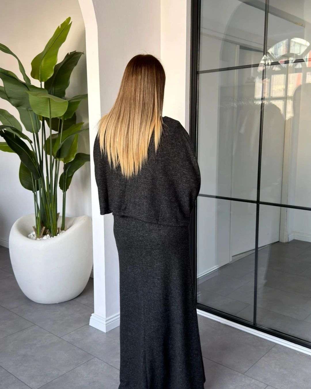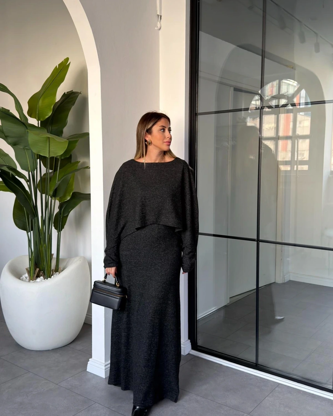 ANTRASİT PELERİN MODEL UZUN ELBİSE
