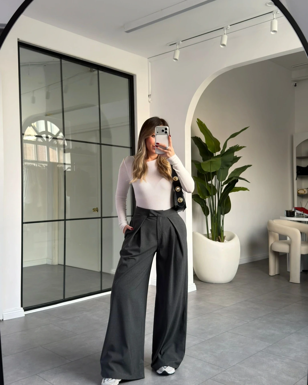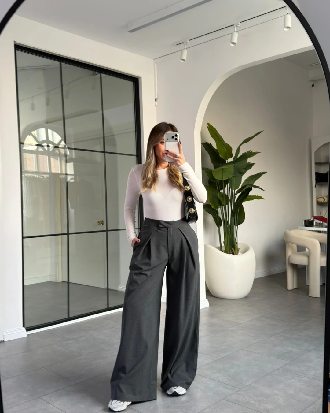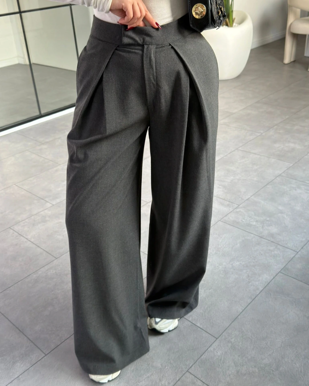ANTRASİT PENSLİ DÖKÜMLÜ PALAZZO PANTOLON