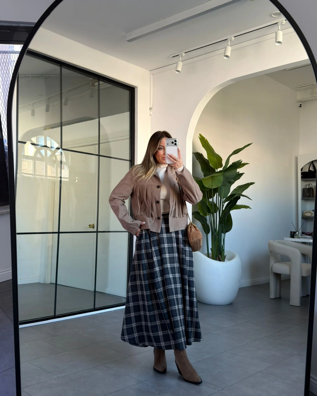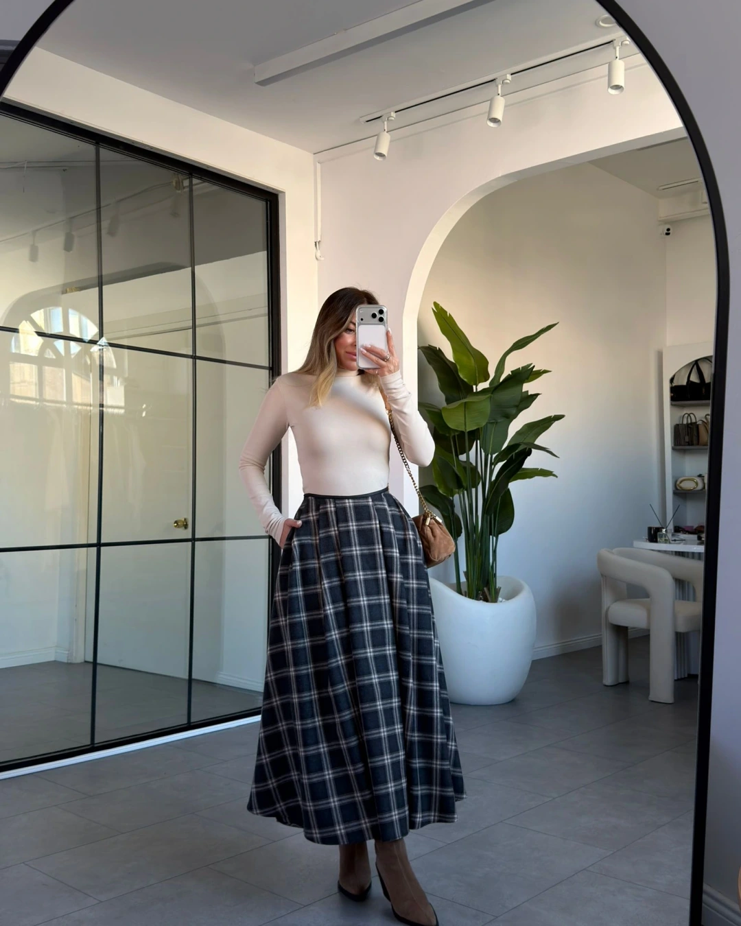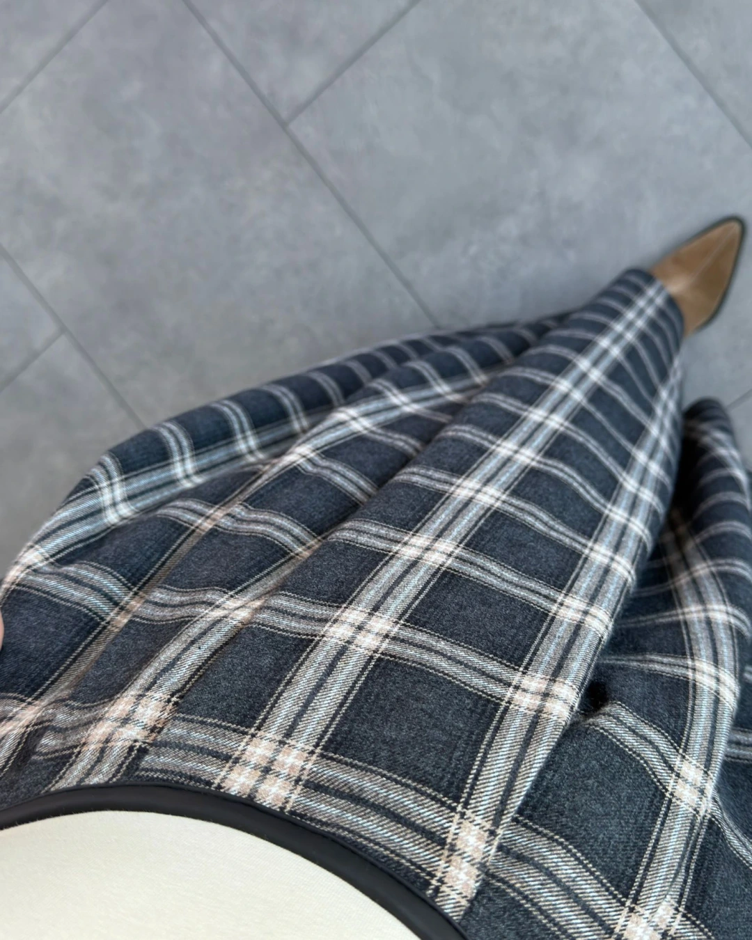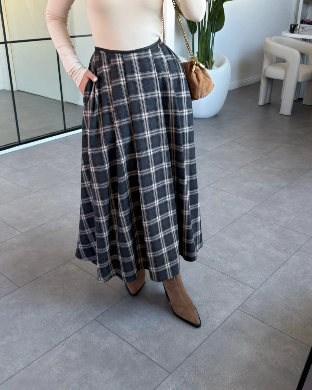ANTRASİT PİLELİ CEP DETAY EKOSE DESEN ETEK