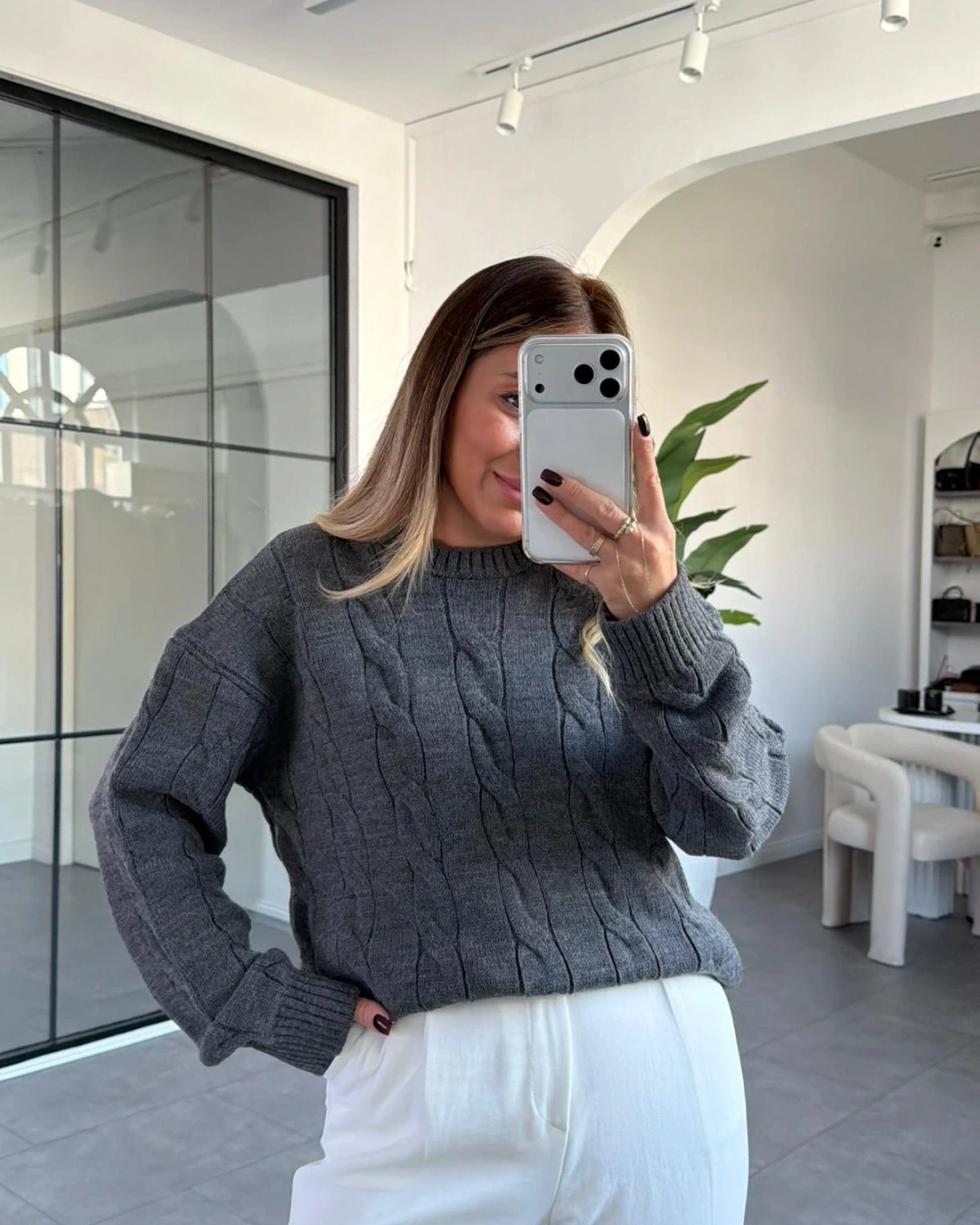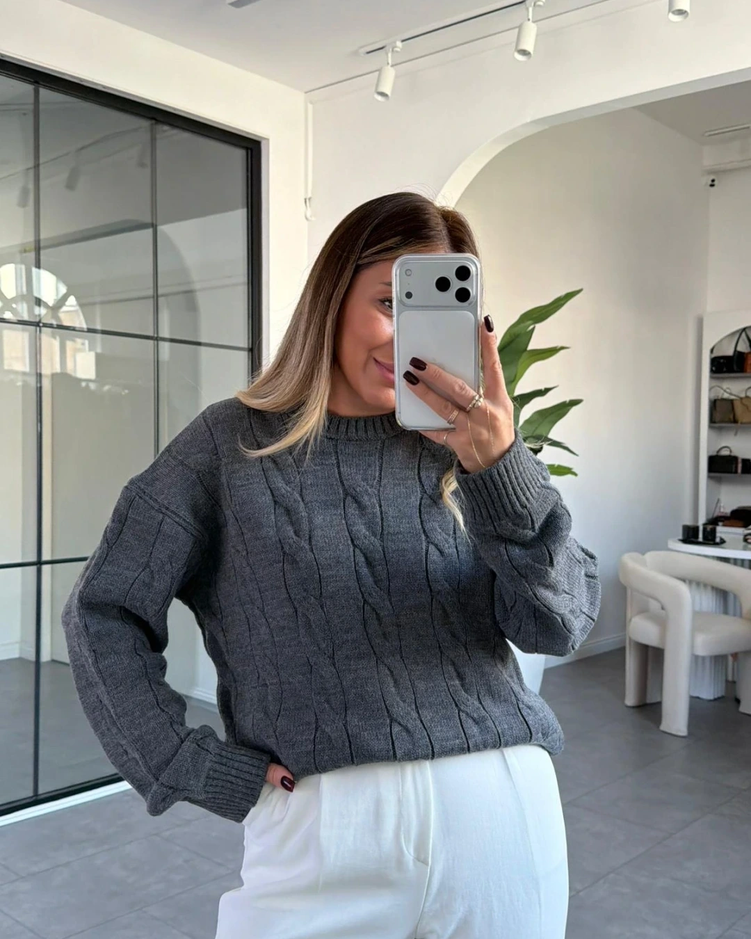 ANTRASİT SAÇ ÖRGÜ TRİKO KAZAK