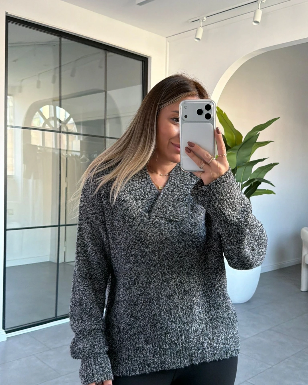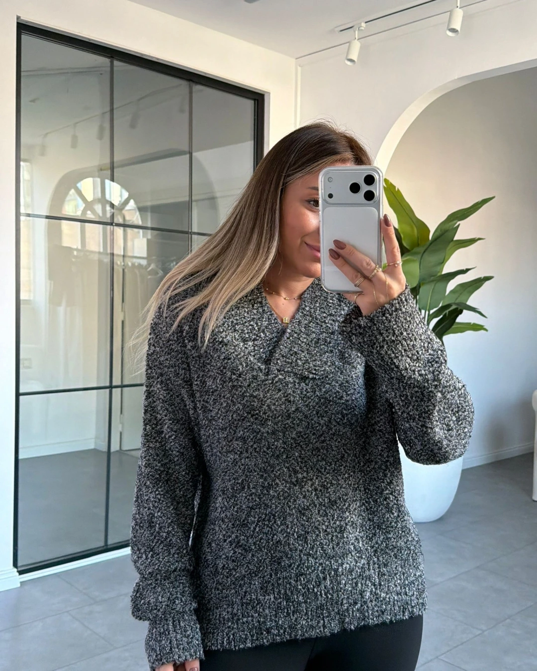 ANTRASİT V YAKA YUMOŞ DOKULU KAZAK