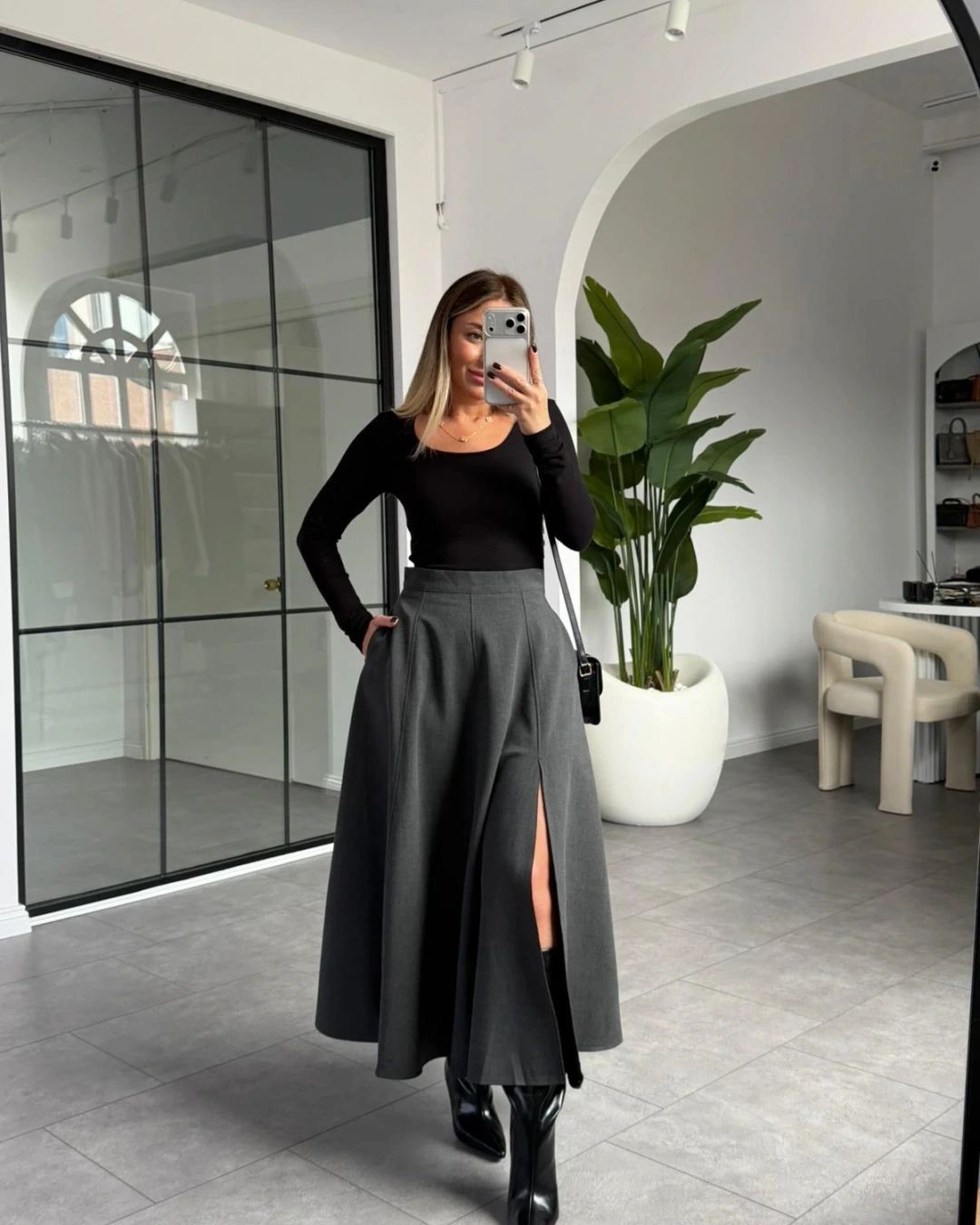 ANTRASİT YIRTMAÇ DETAY ETEK