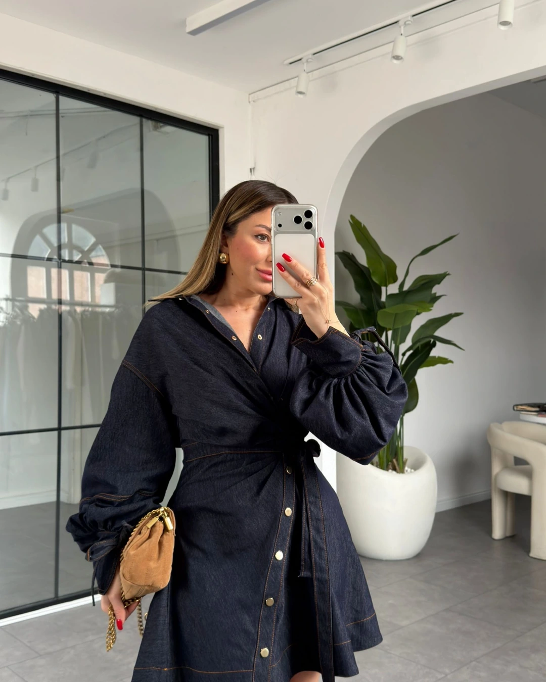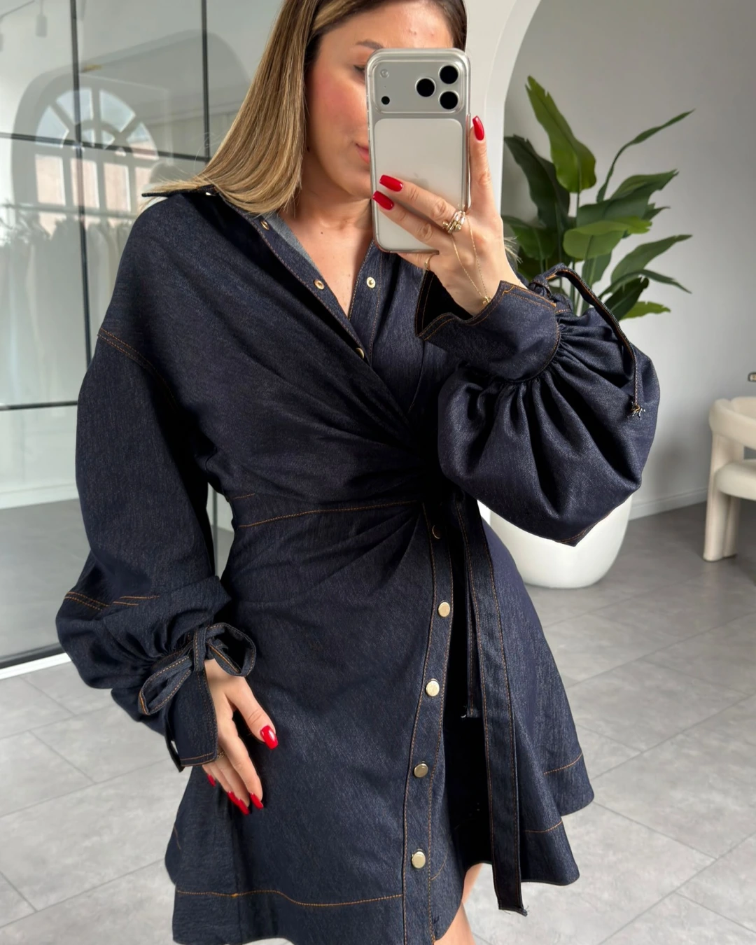BALON KOL DENİM GOLD DÜĞMELİ ELBİSE