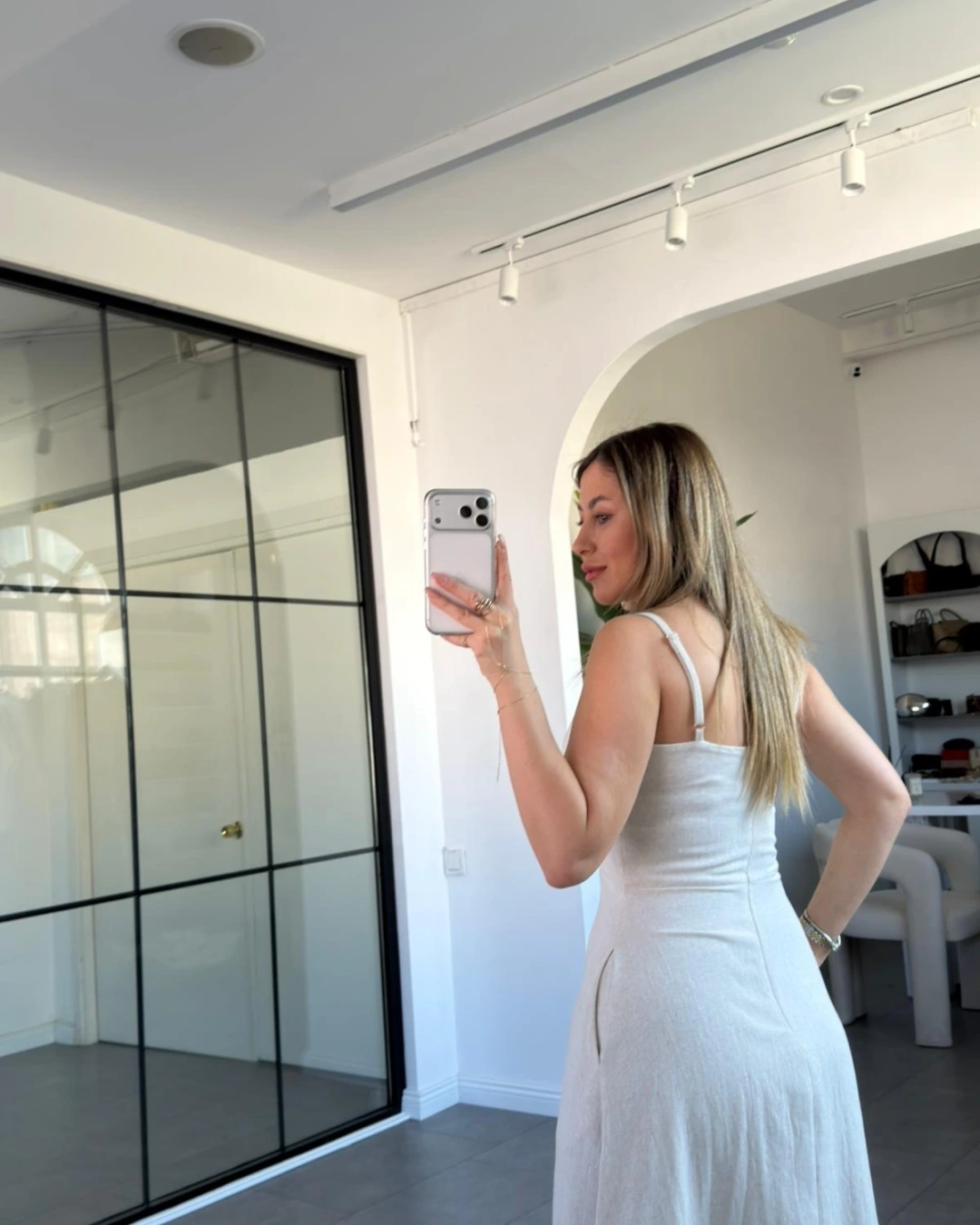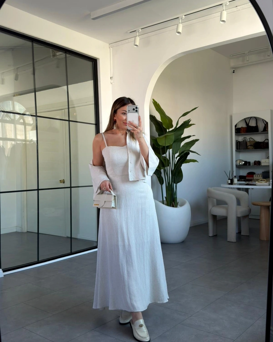 BEJ ASKILI ELBİSE VE GÖMLEK TAKIM 9679
