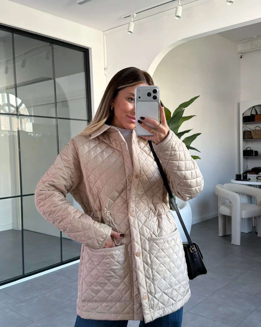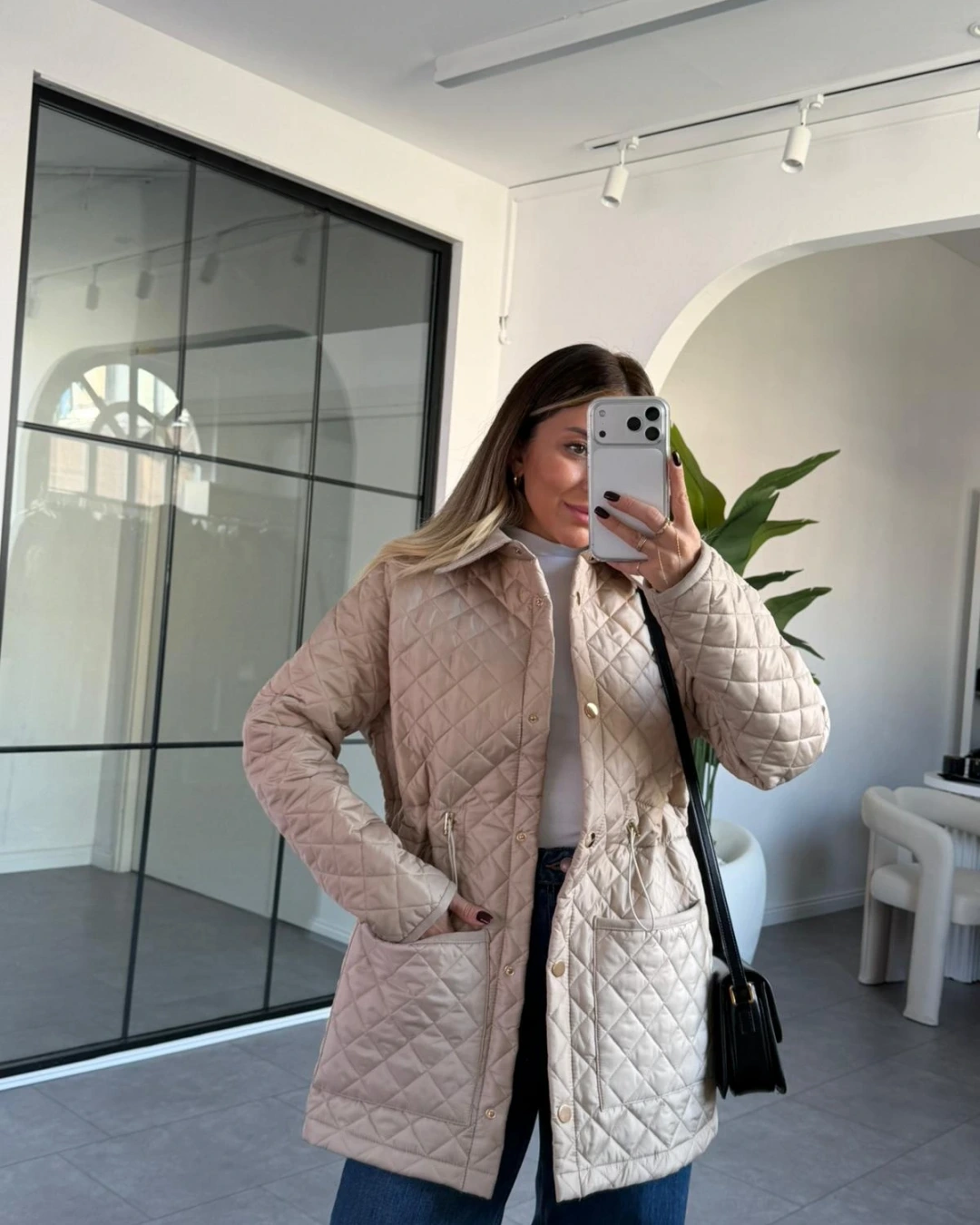 BEJ BELİ BÜZGÜLÜ KAPİTONE MONT