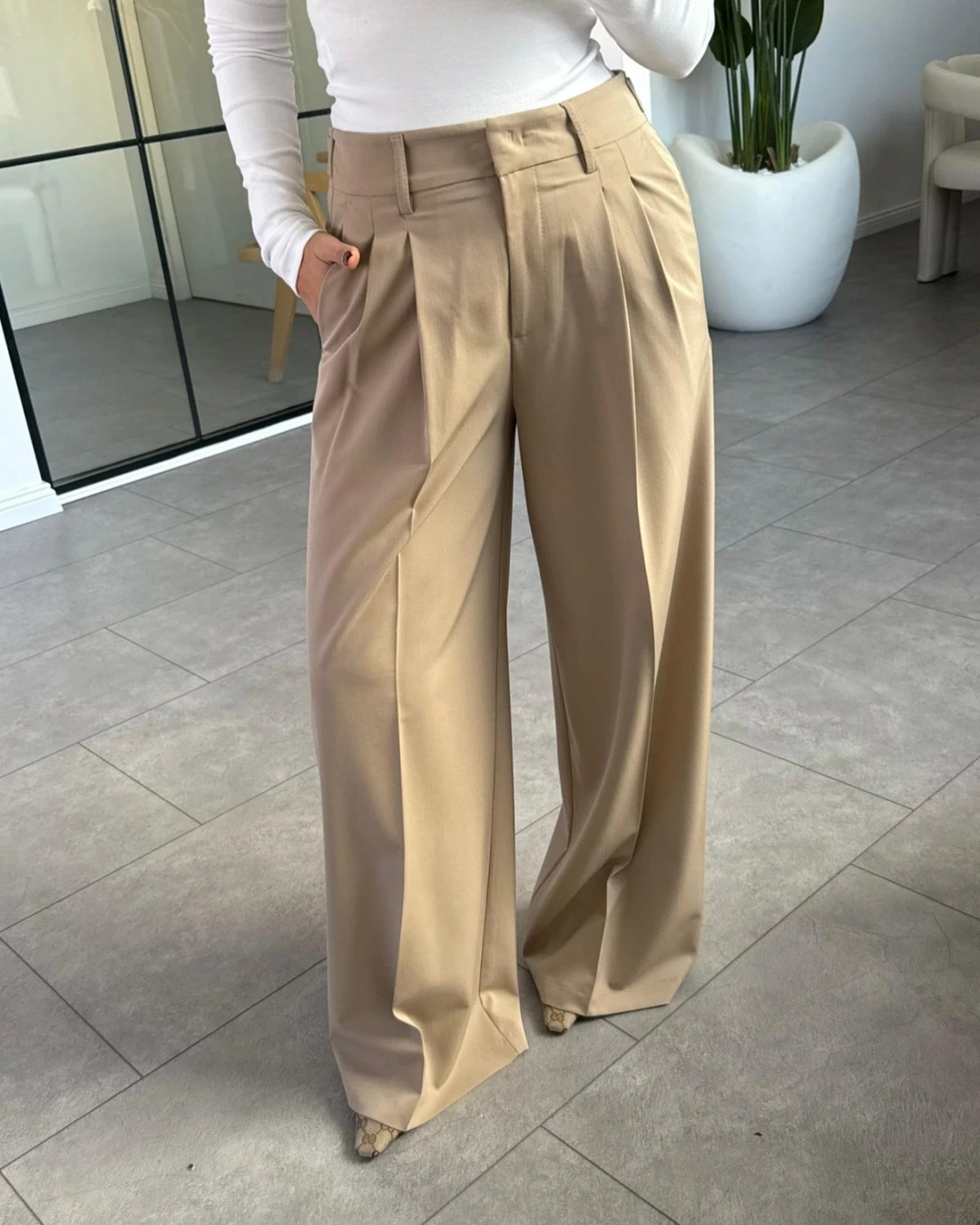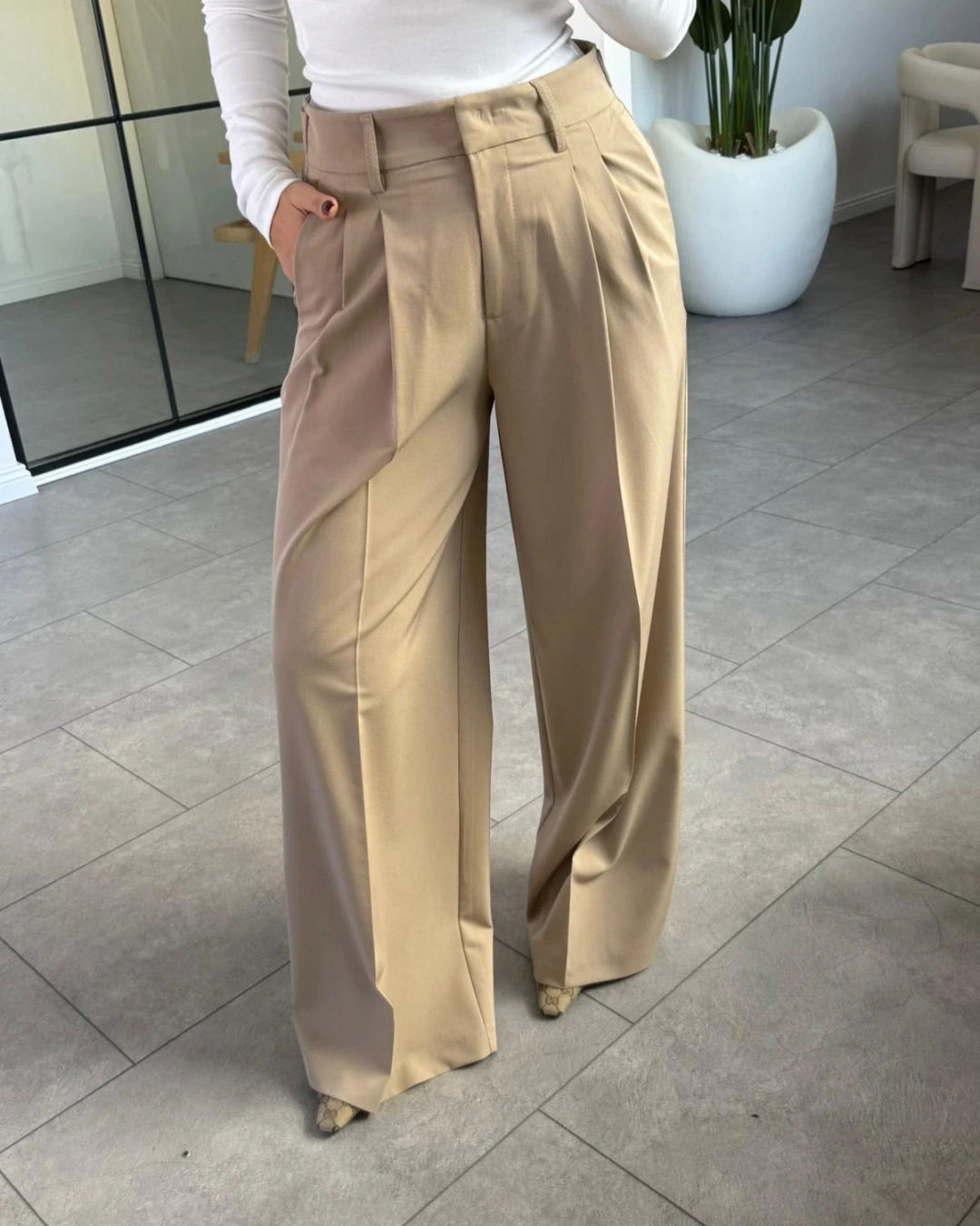 BEJ GENİŞ PAÇA AYARLANABİLİR PANTOLON