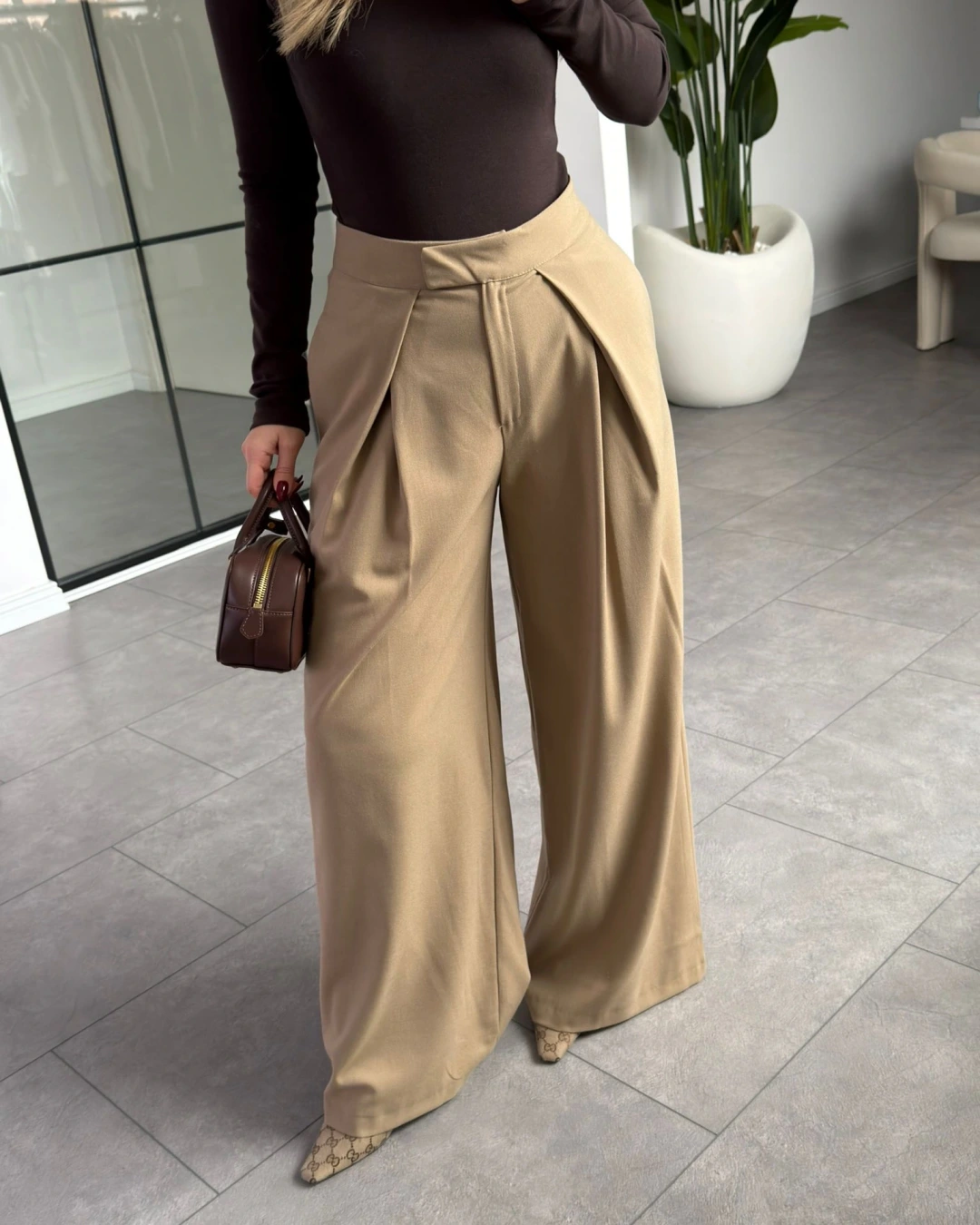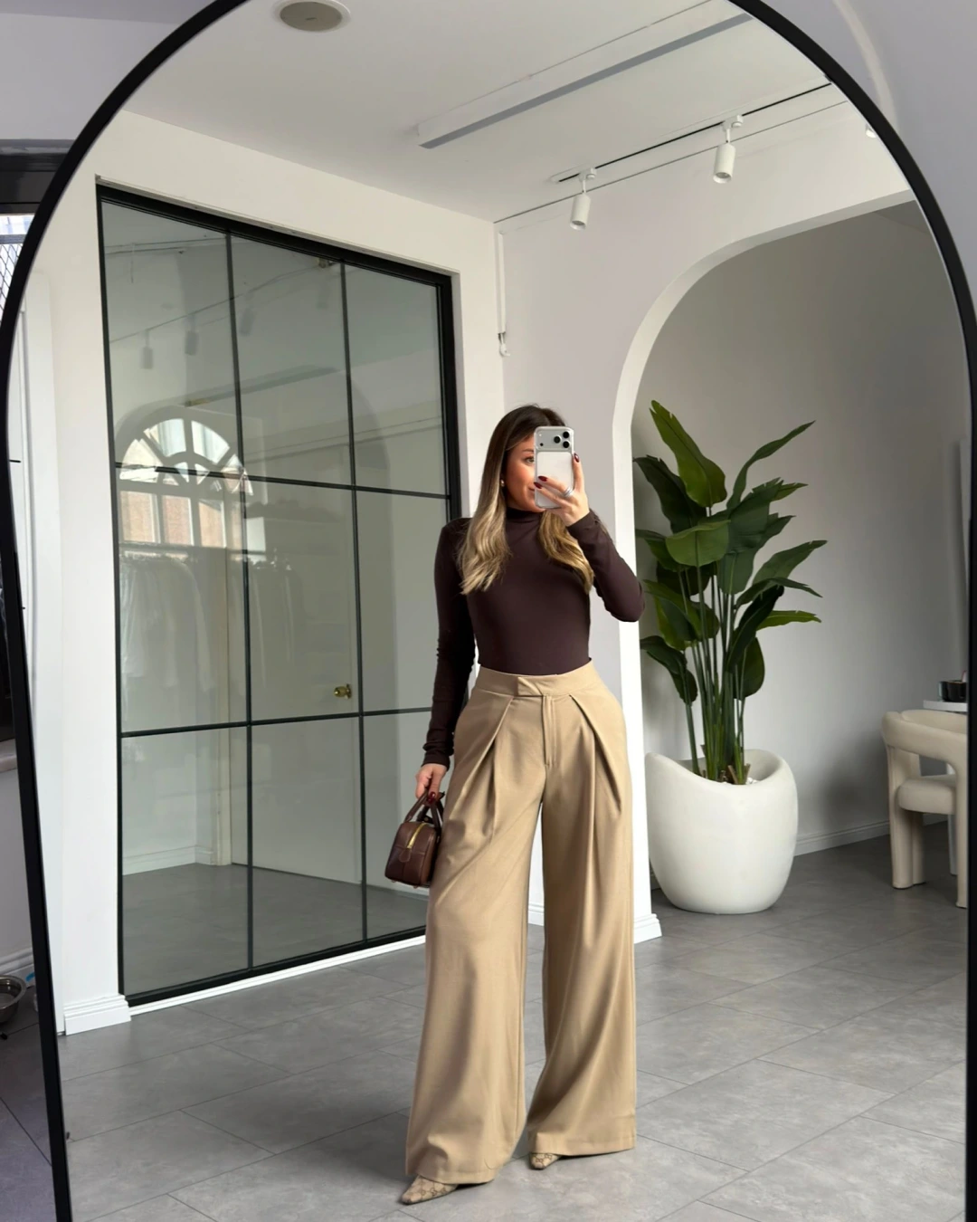 BEJ PENSLİ DÖKÜMLÜ PALAZZO PANTOLON