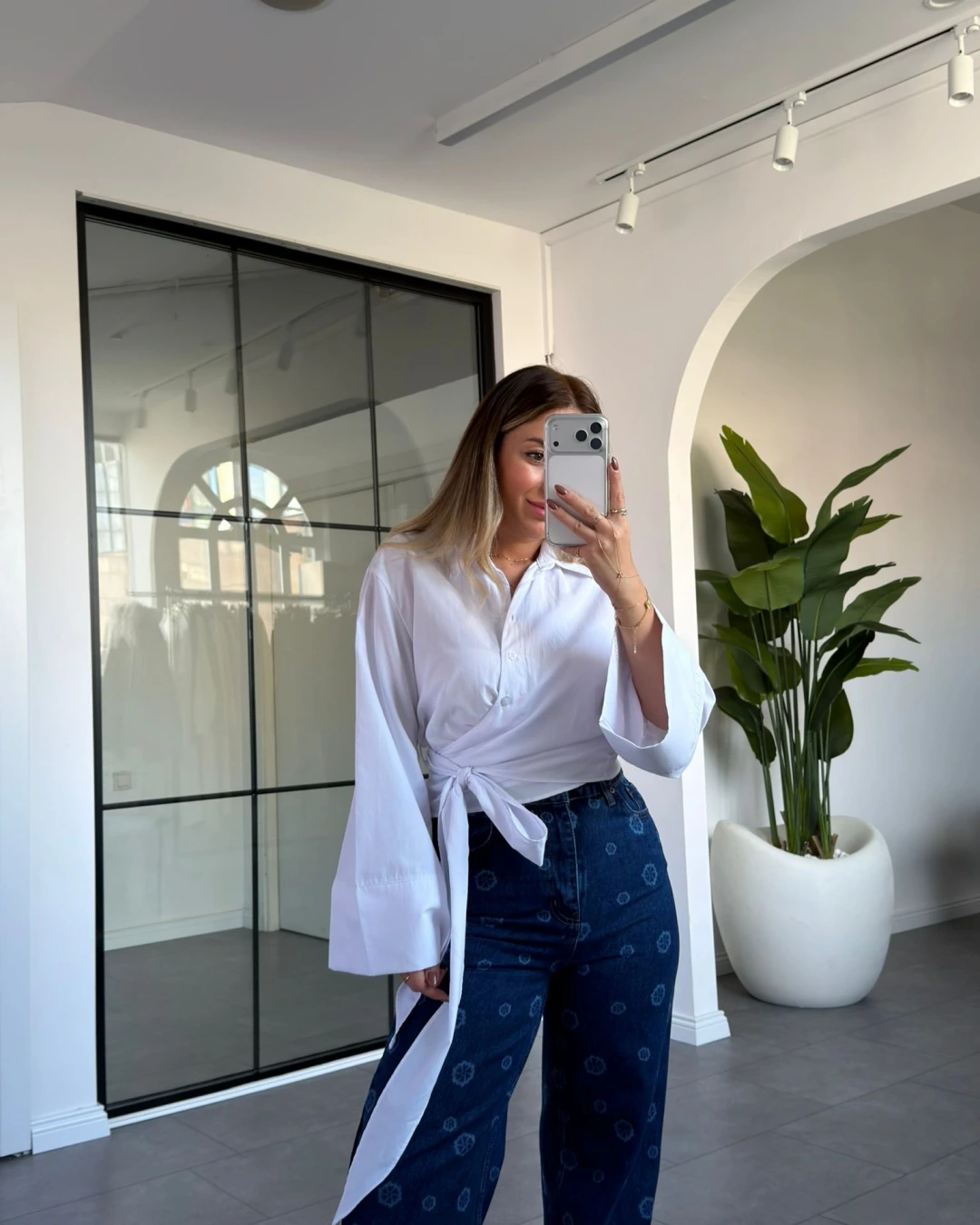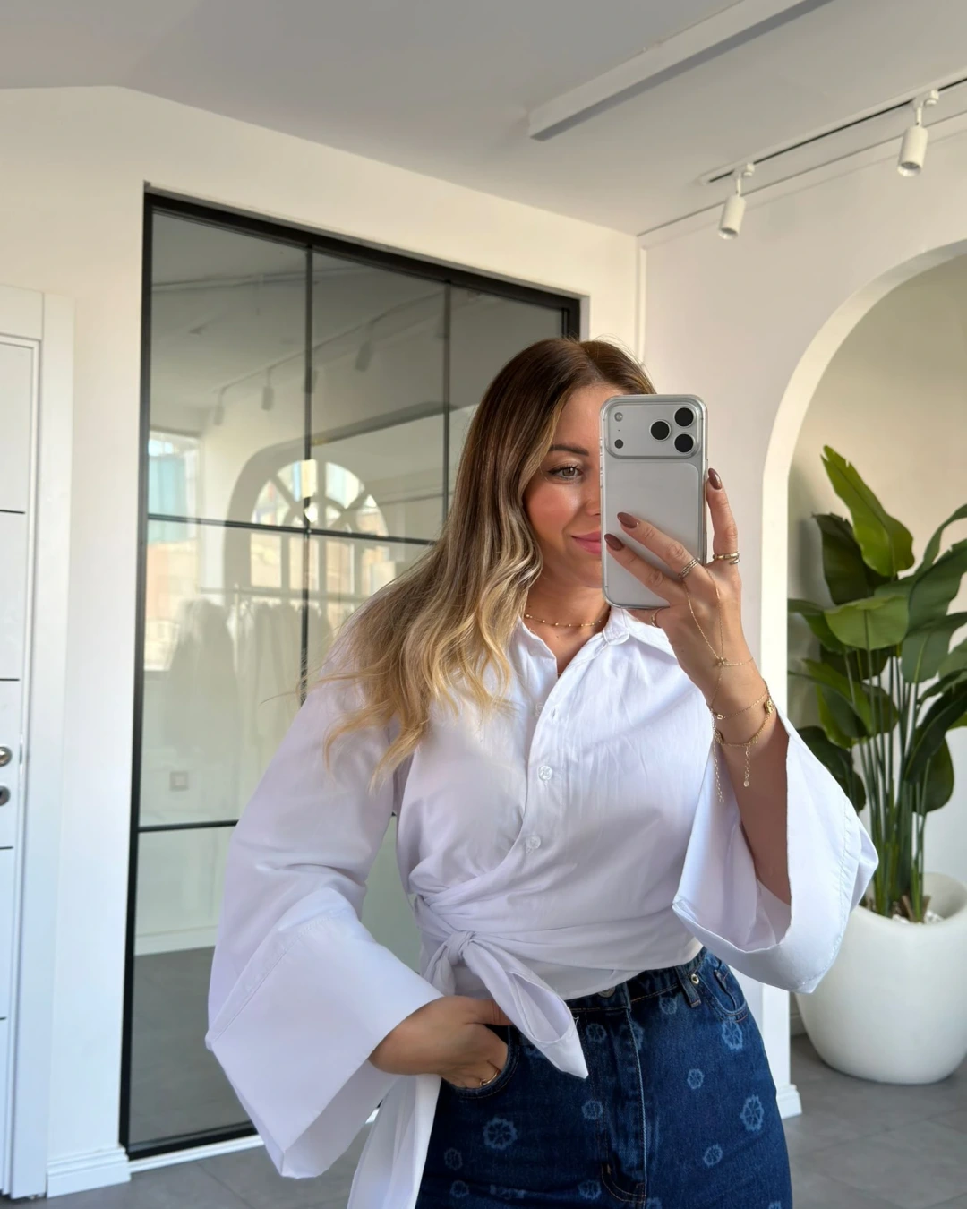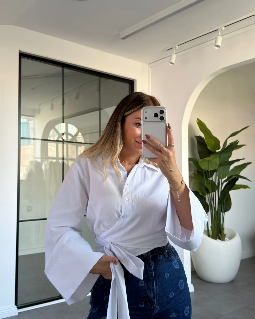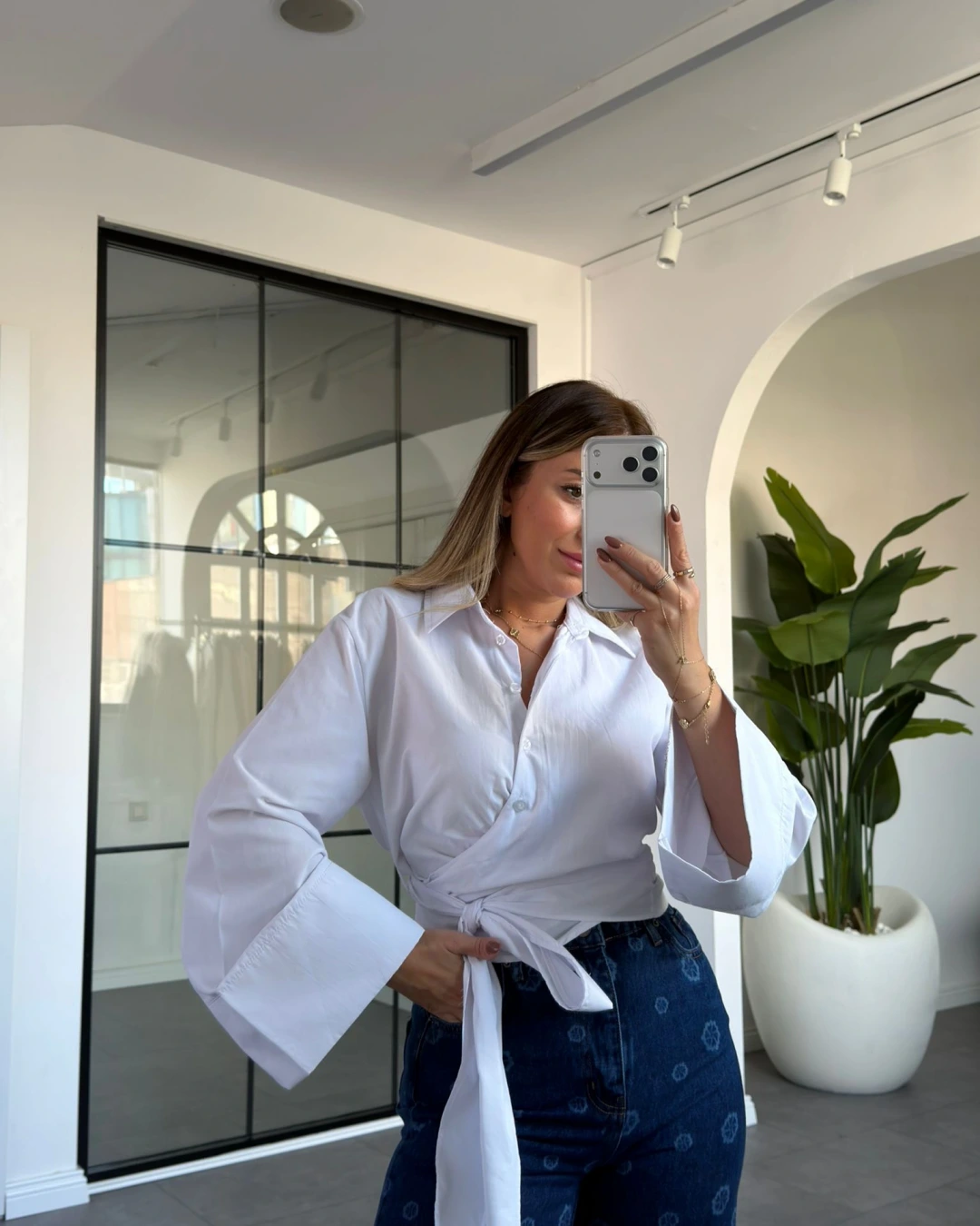 BEYAZ BAĞLAMA DETAY POPLİN GÖMLEK