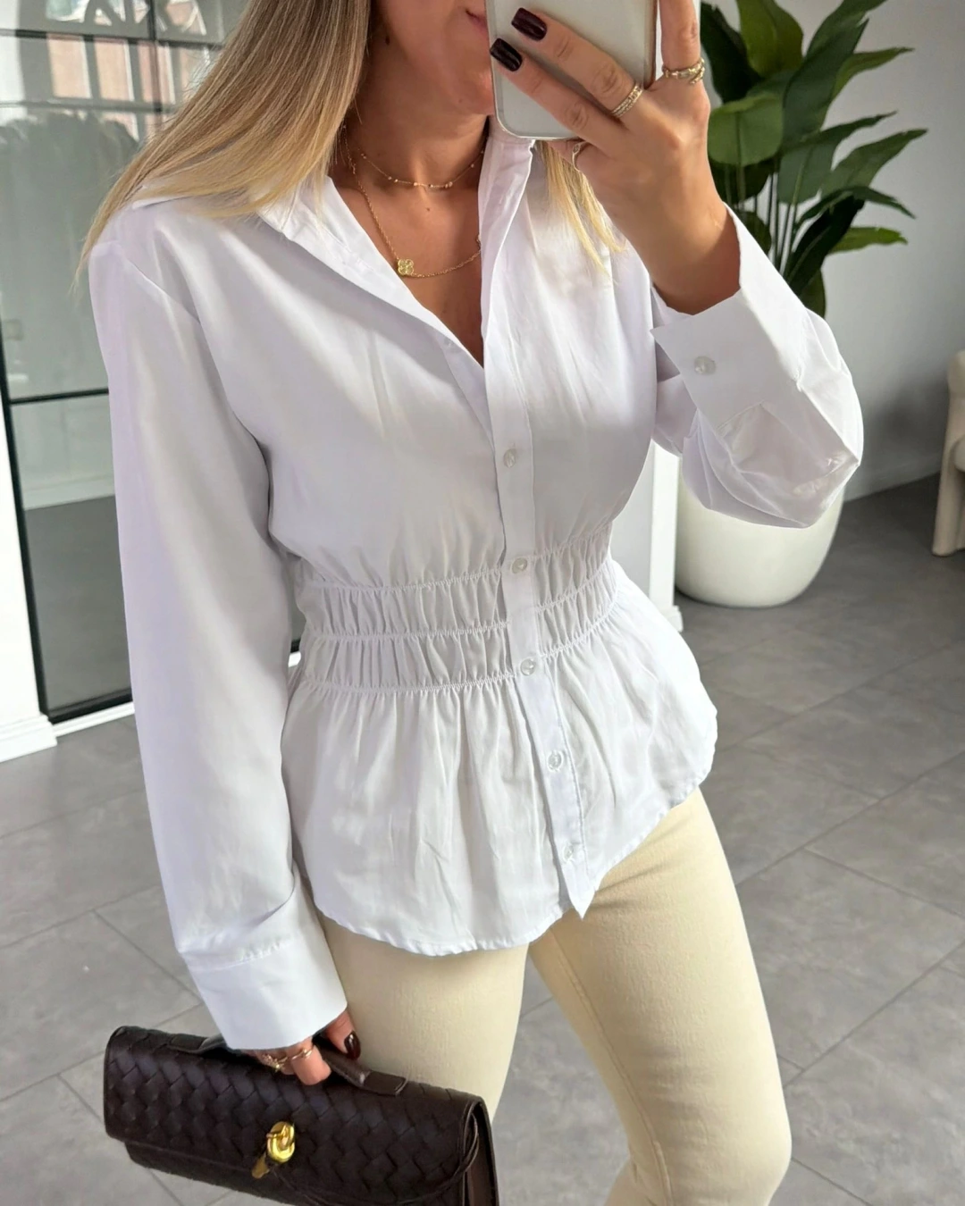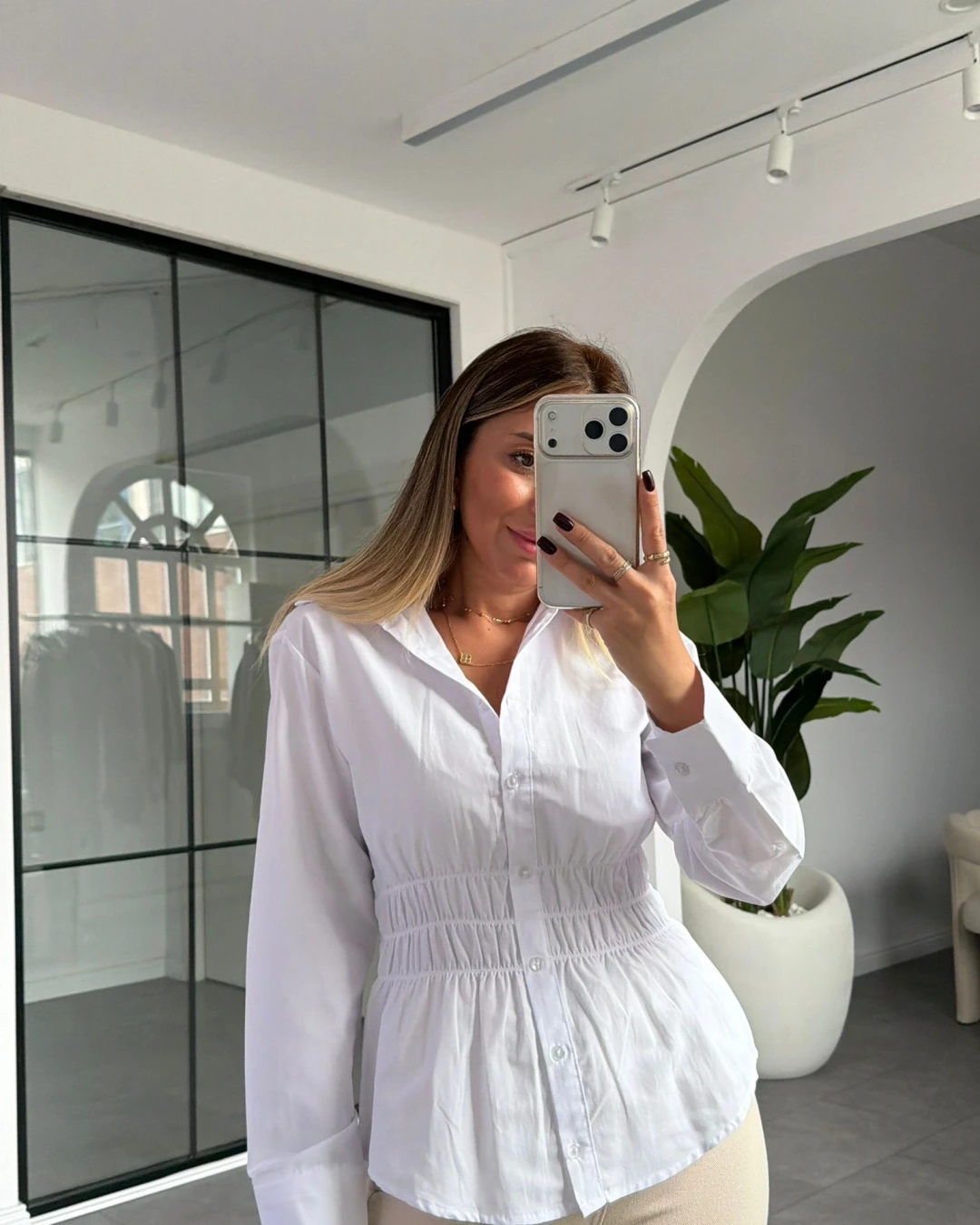 BEYAZ BELİ LASTİKLİ GÖMLEK