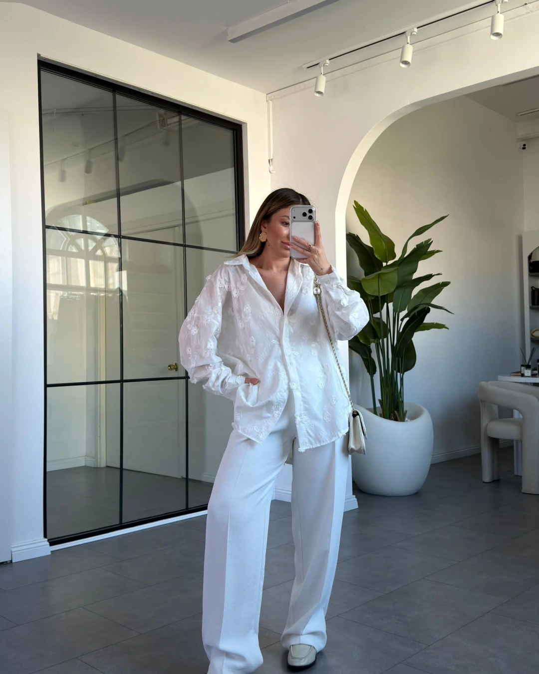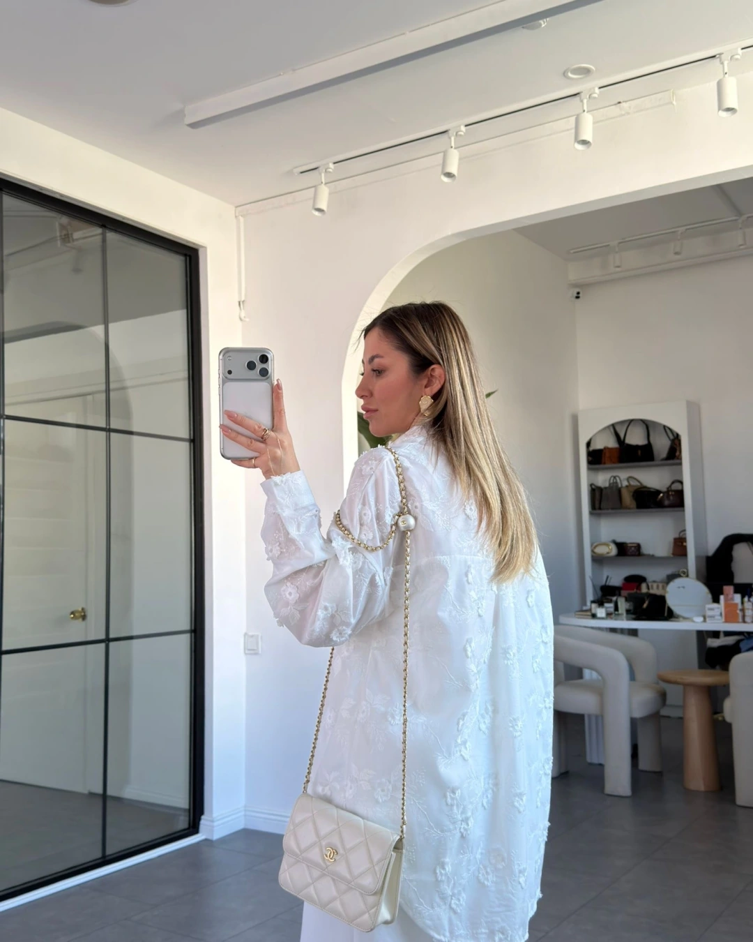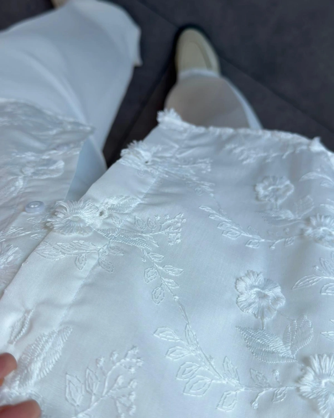 BEYAZ ÇİÇEK NAKIŞLI GÖMLEK 9714