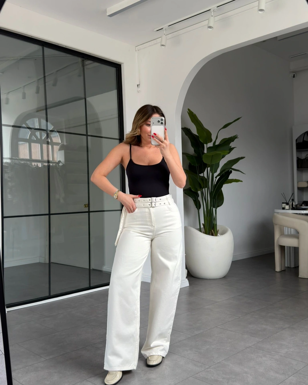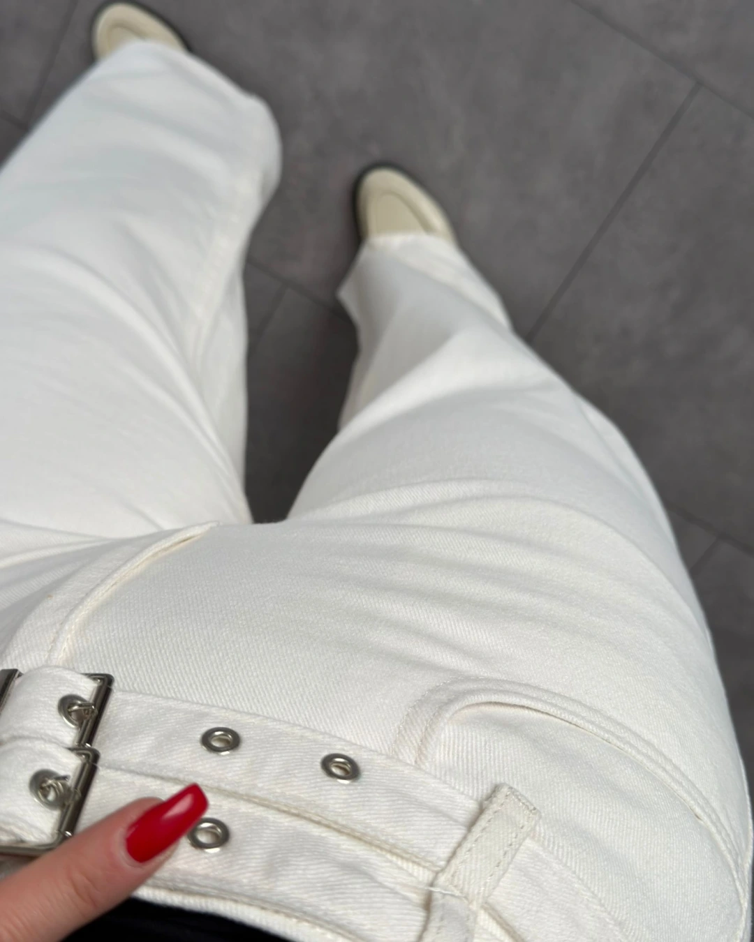BEYAZ BAGGY ÇİFT KEMER DETAYLI JEAN 8263