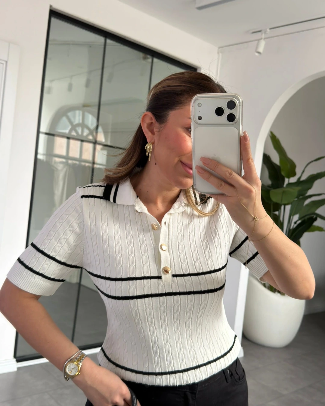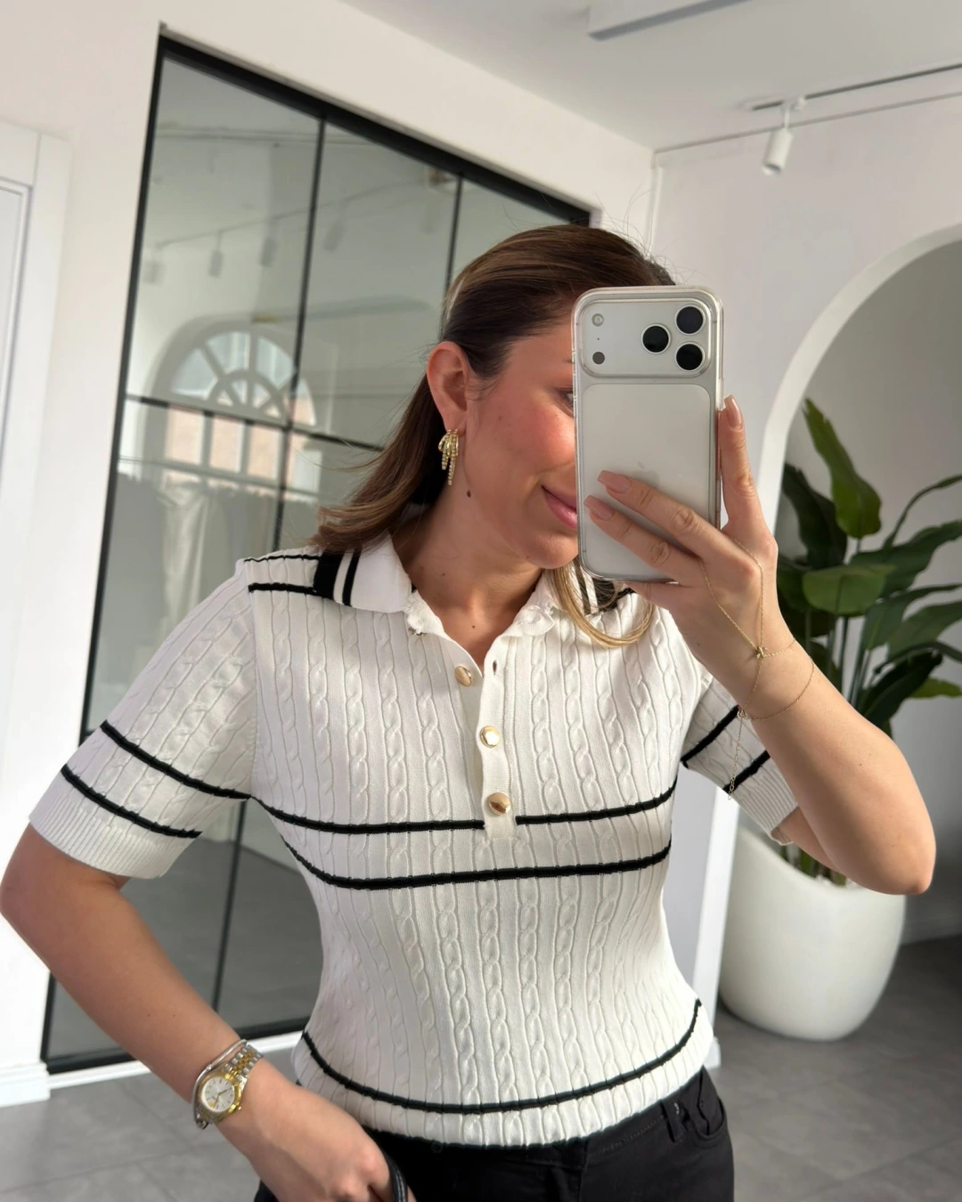 BEYAZ ÇİZGİLİ KISA KOLLU TRİKO