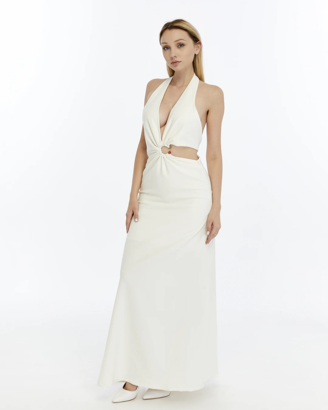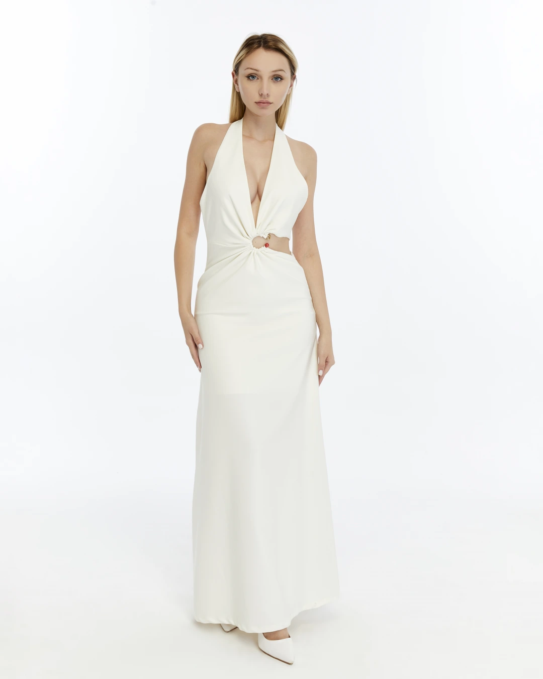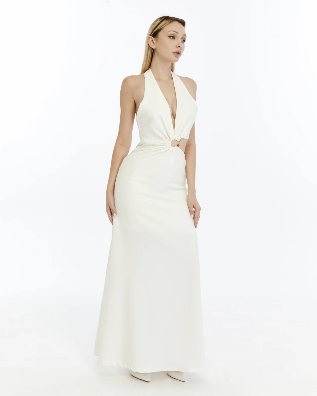 BEYAZ DEKOLTE DETAYLI ELBİSE
