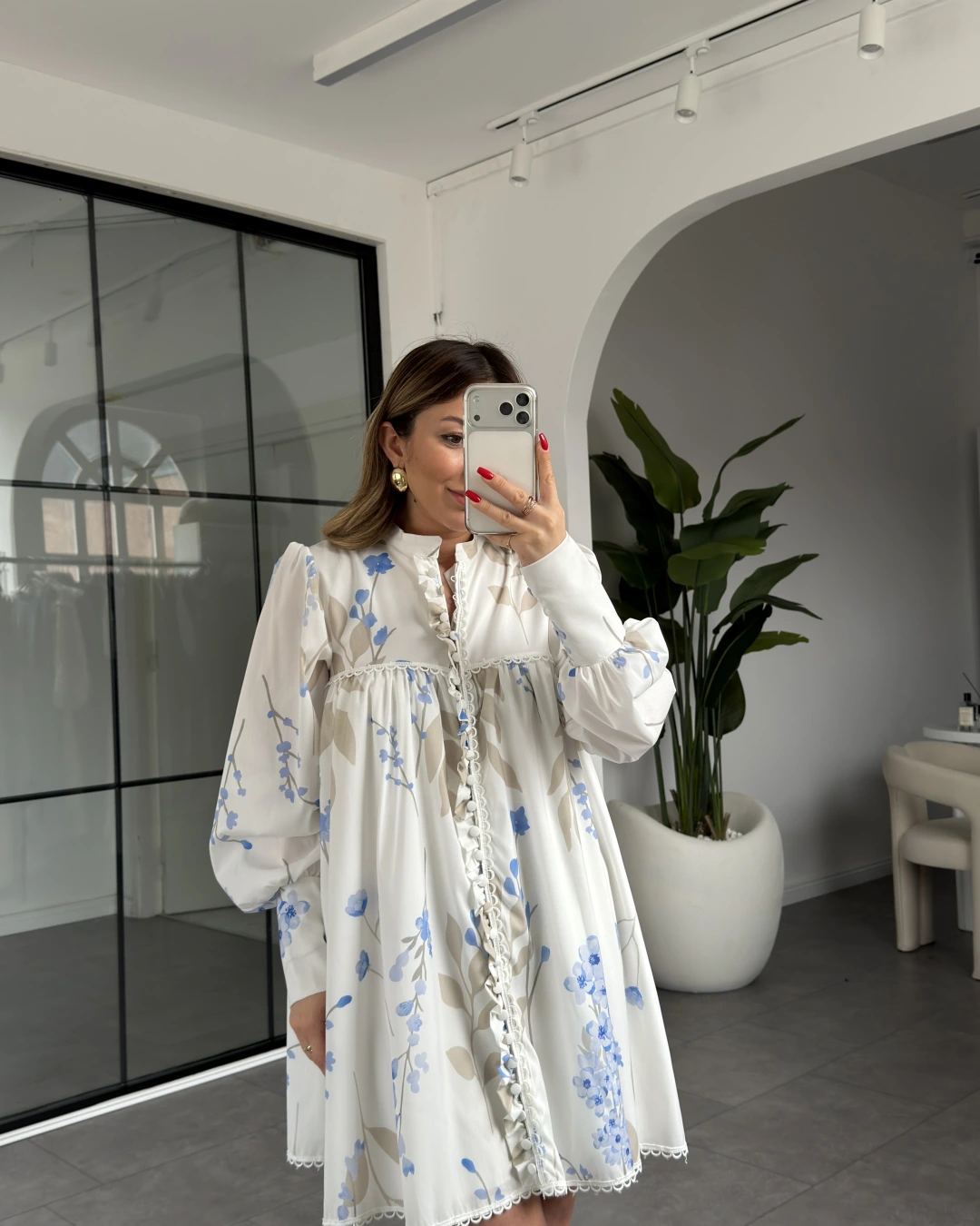 BEYAZ DESENLİ BOYDAN DÜĞMELİ MİNİ ELBİSE 586