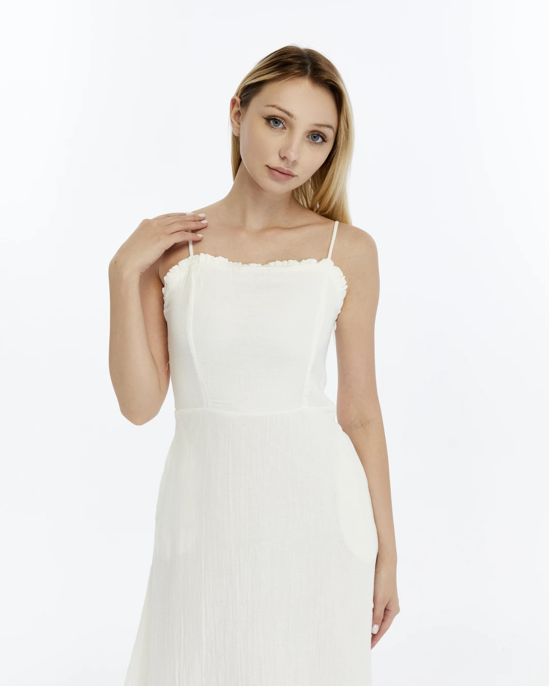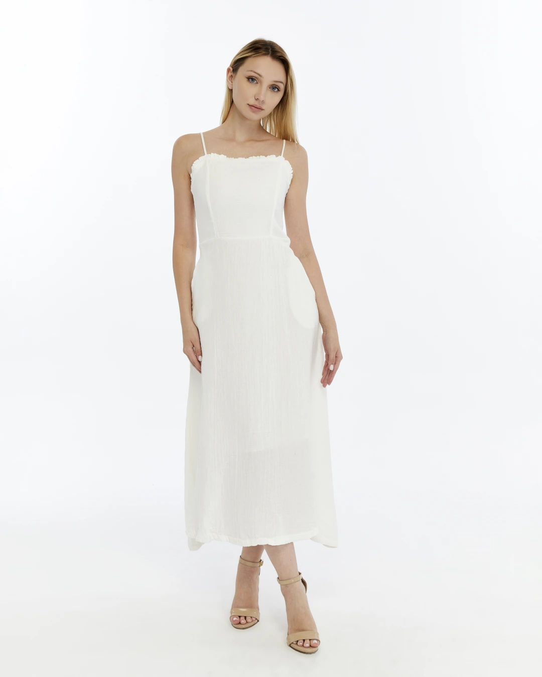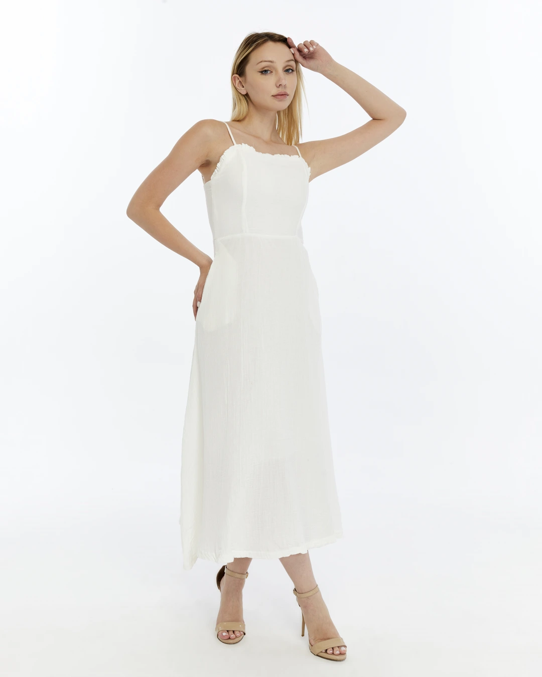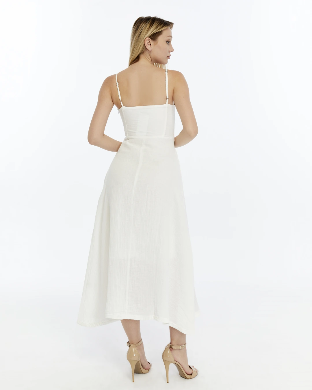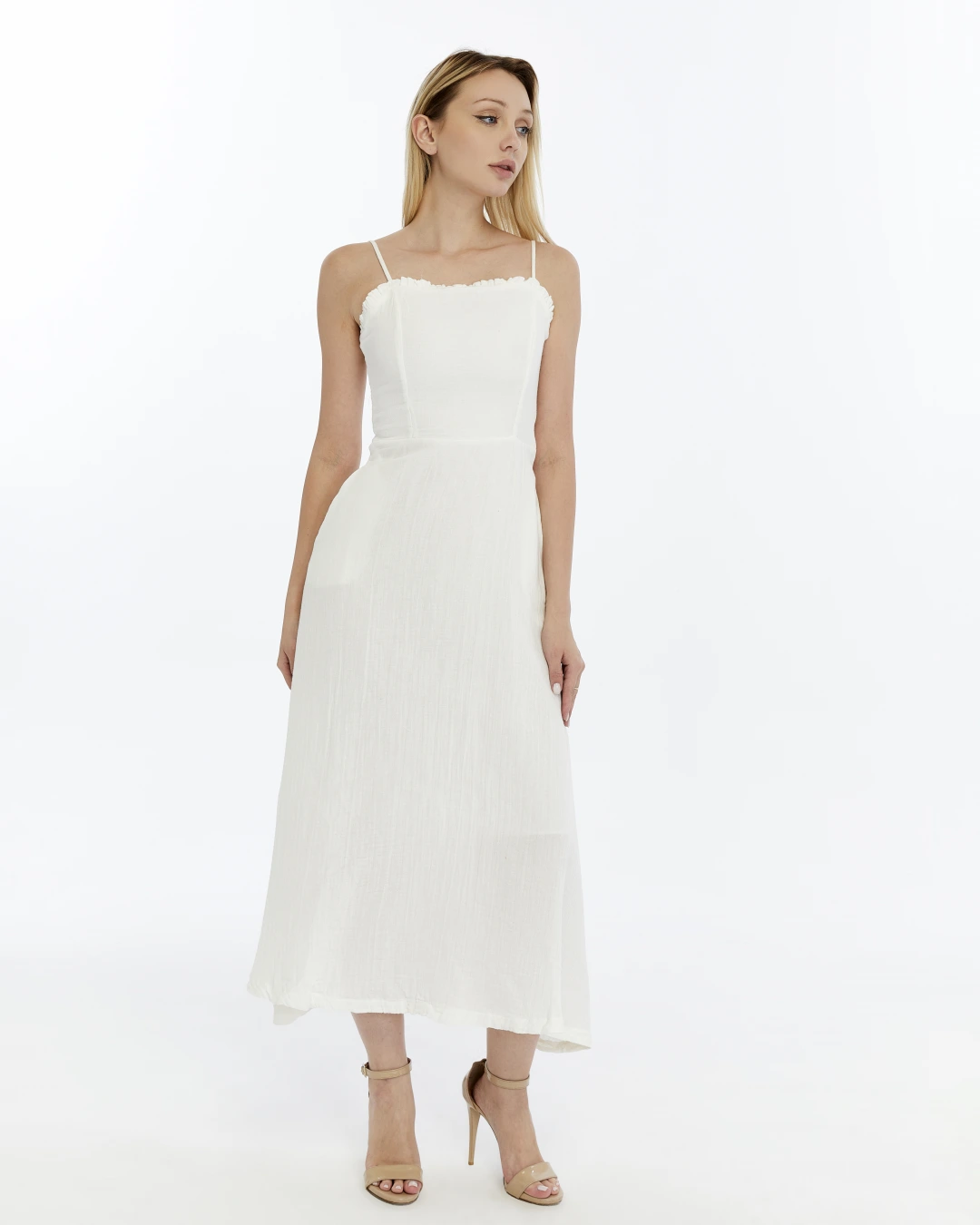 BEYAZ FIRFIRLI İP ASKILI MÜSLİN ELBİSE