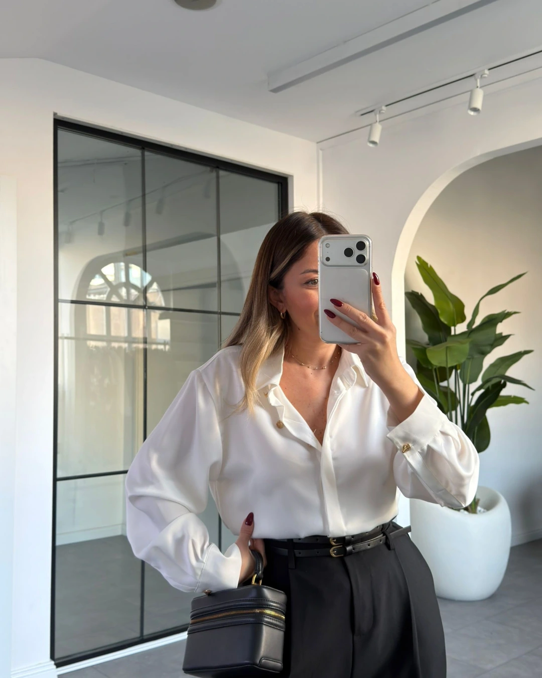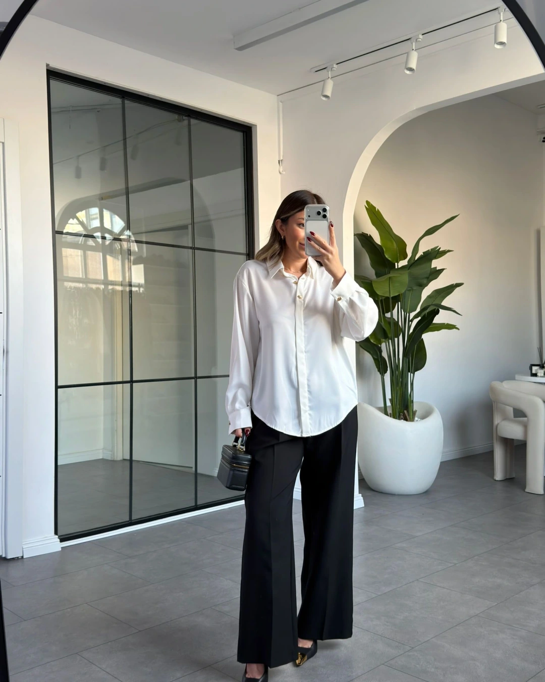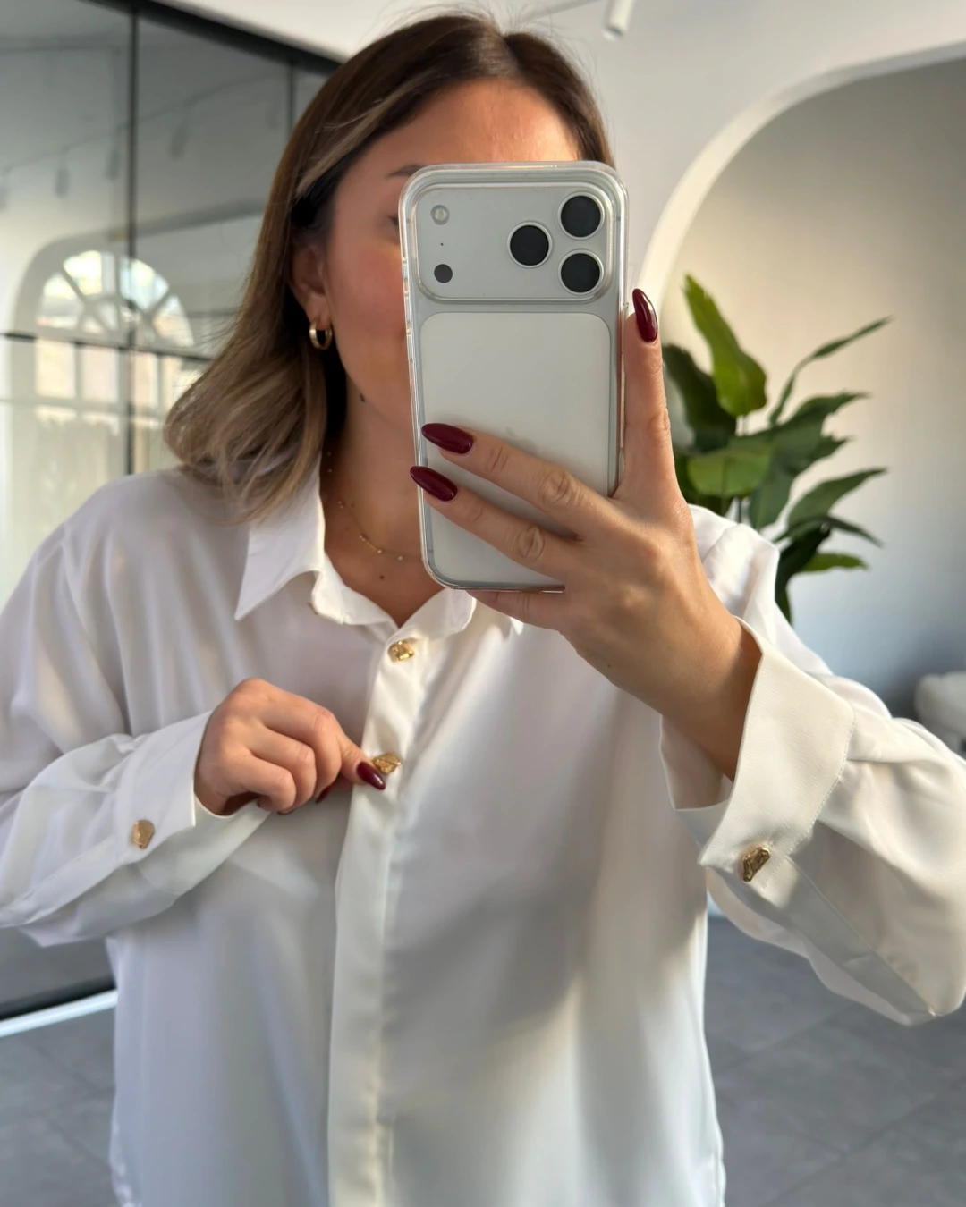 BEYAZ GOLD DÜĞME DETAY SATEN GÖMLEK
