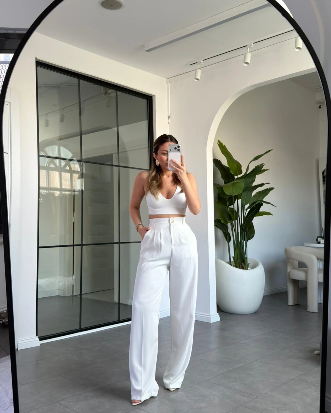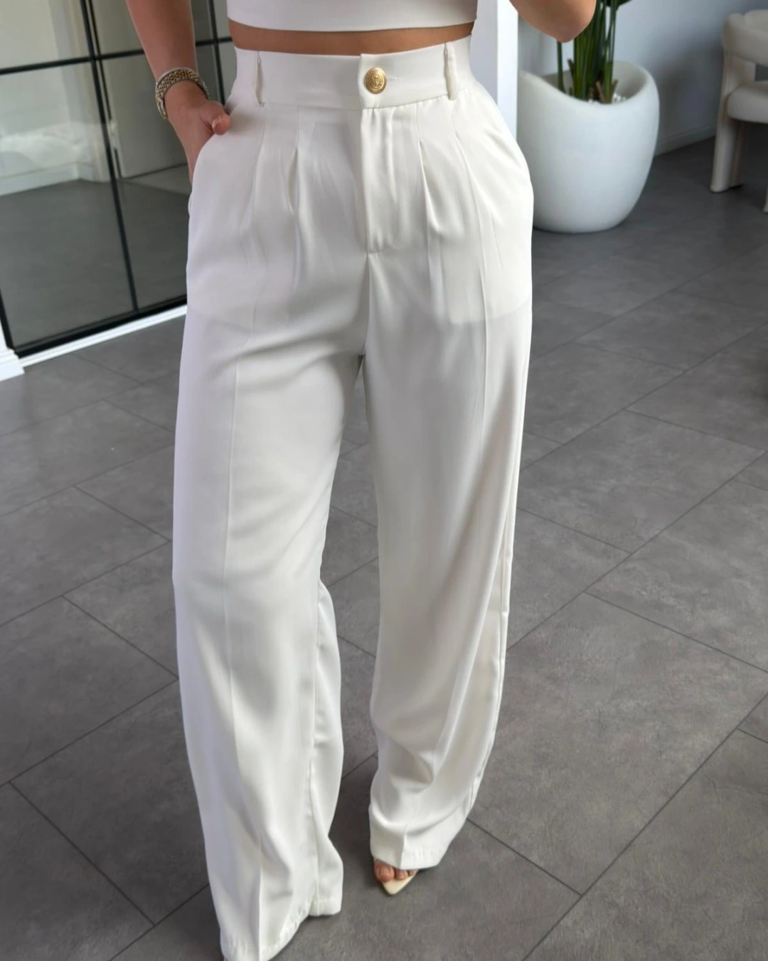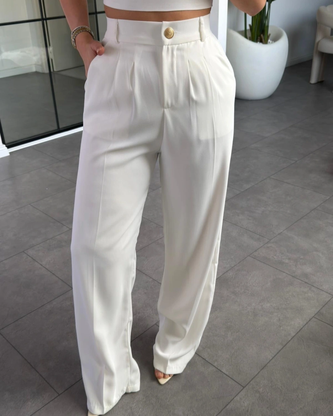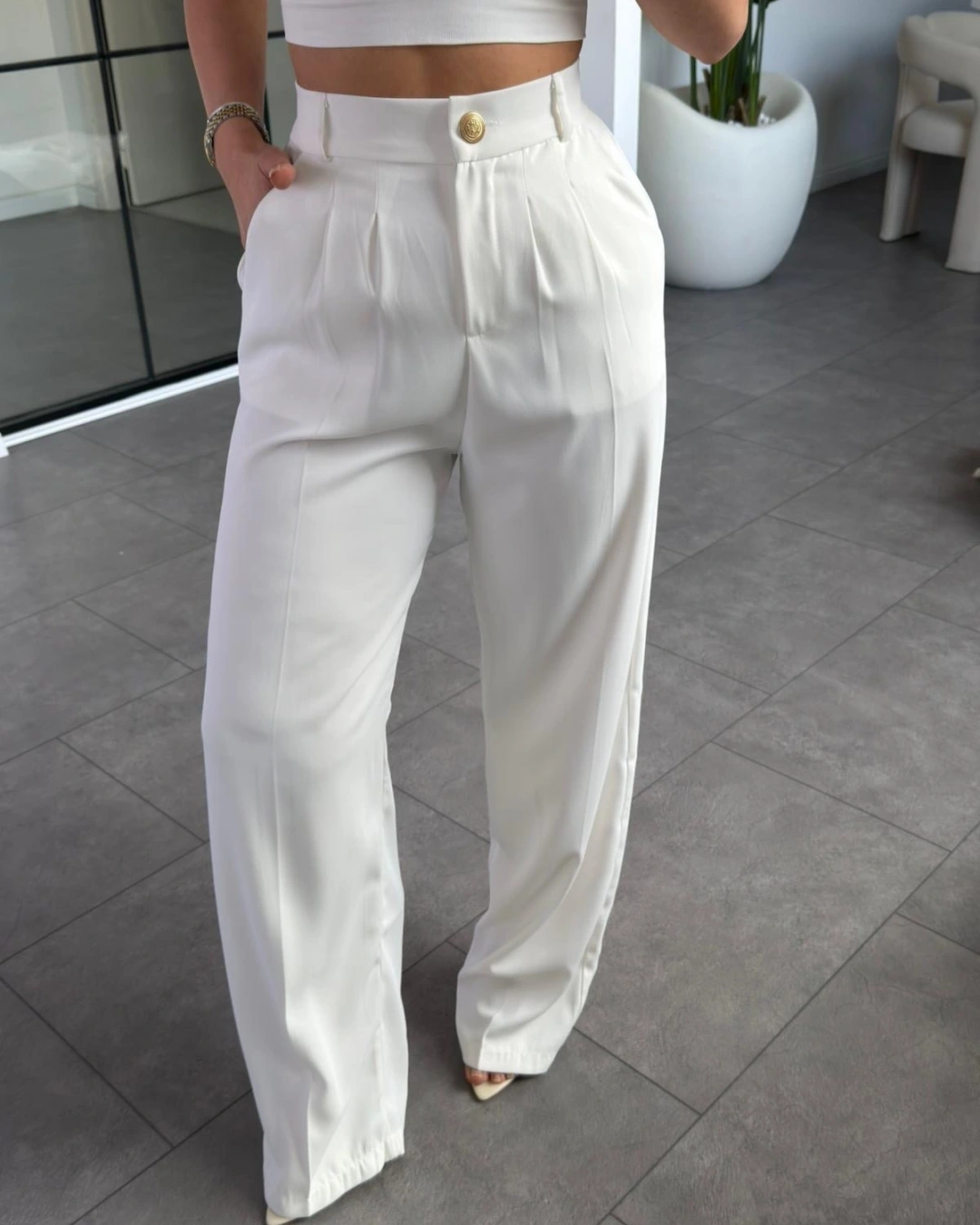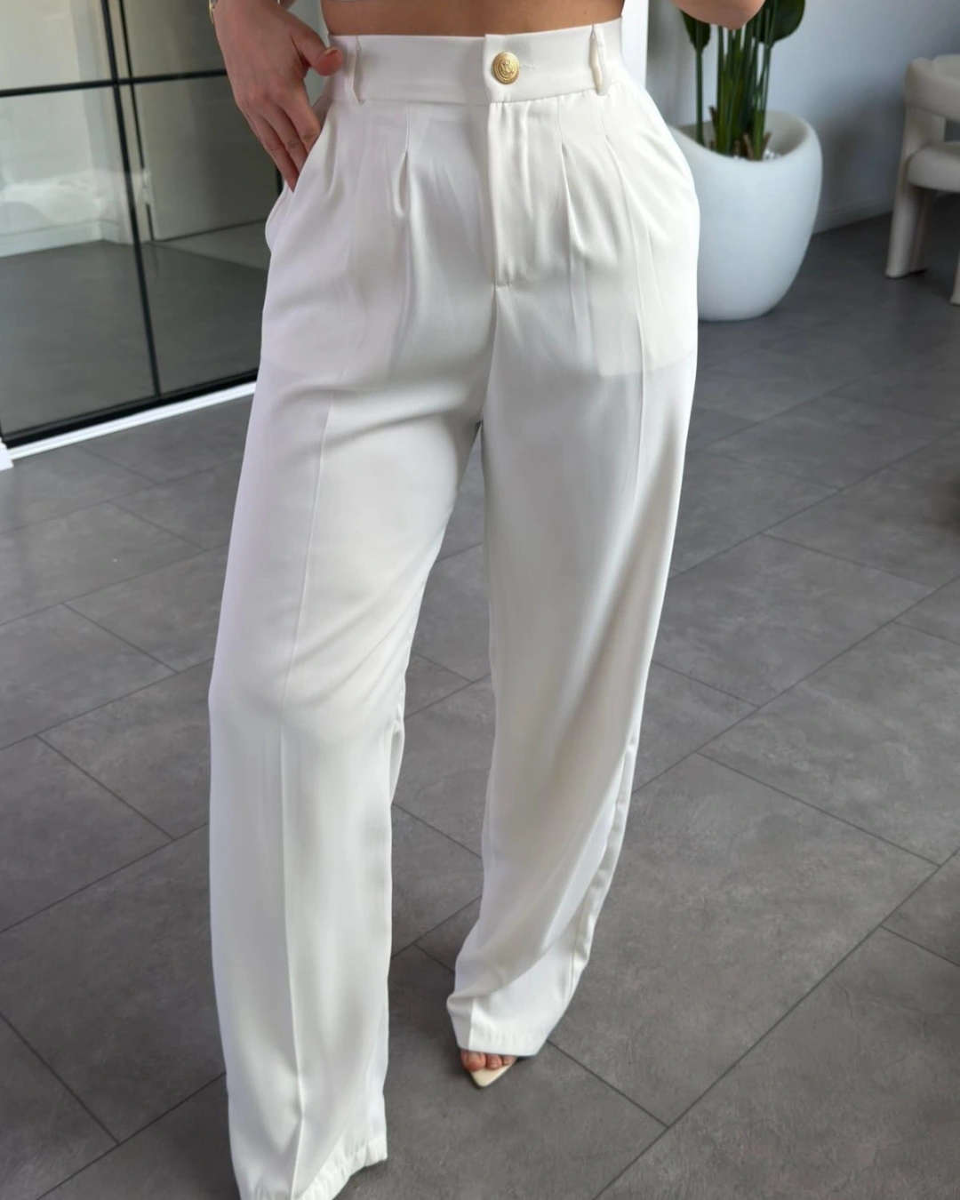 BEYAZ GOLD DÜĞMELİ PİLELİ PALAZZO PANTOLON