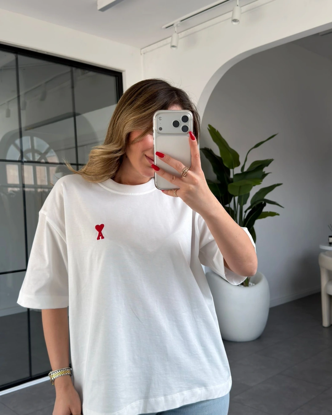 BEYAZ KALP NAKIŞLI T-SHİRT 261045