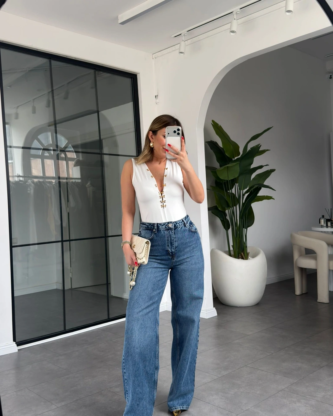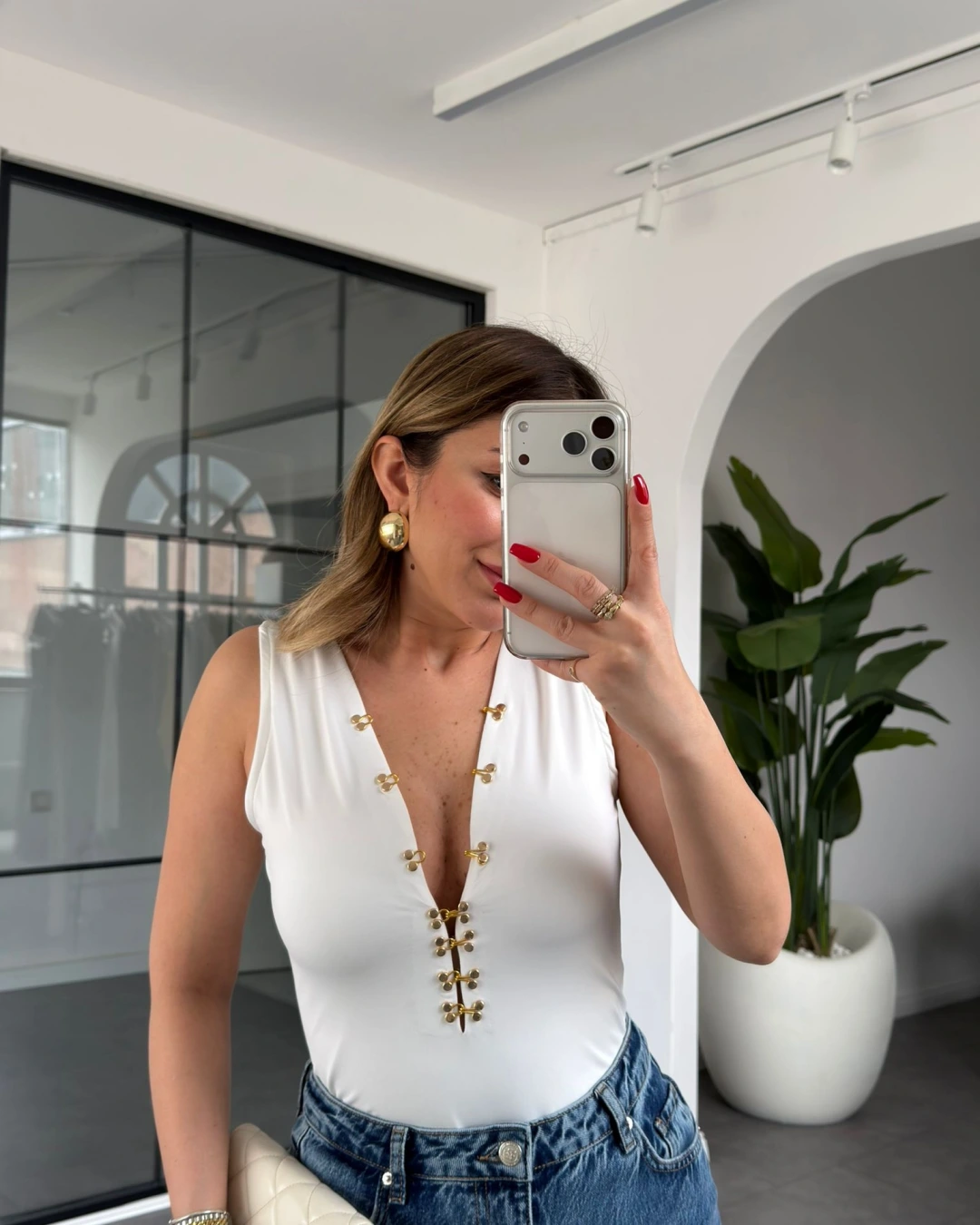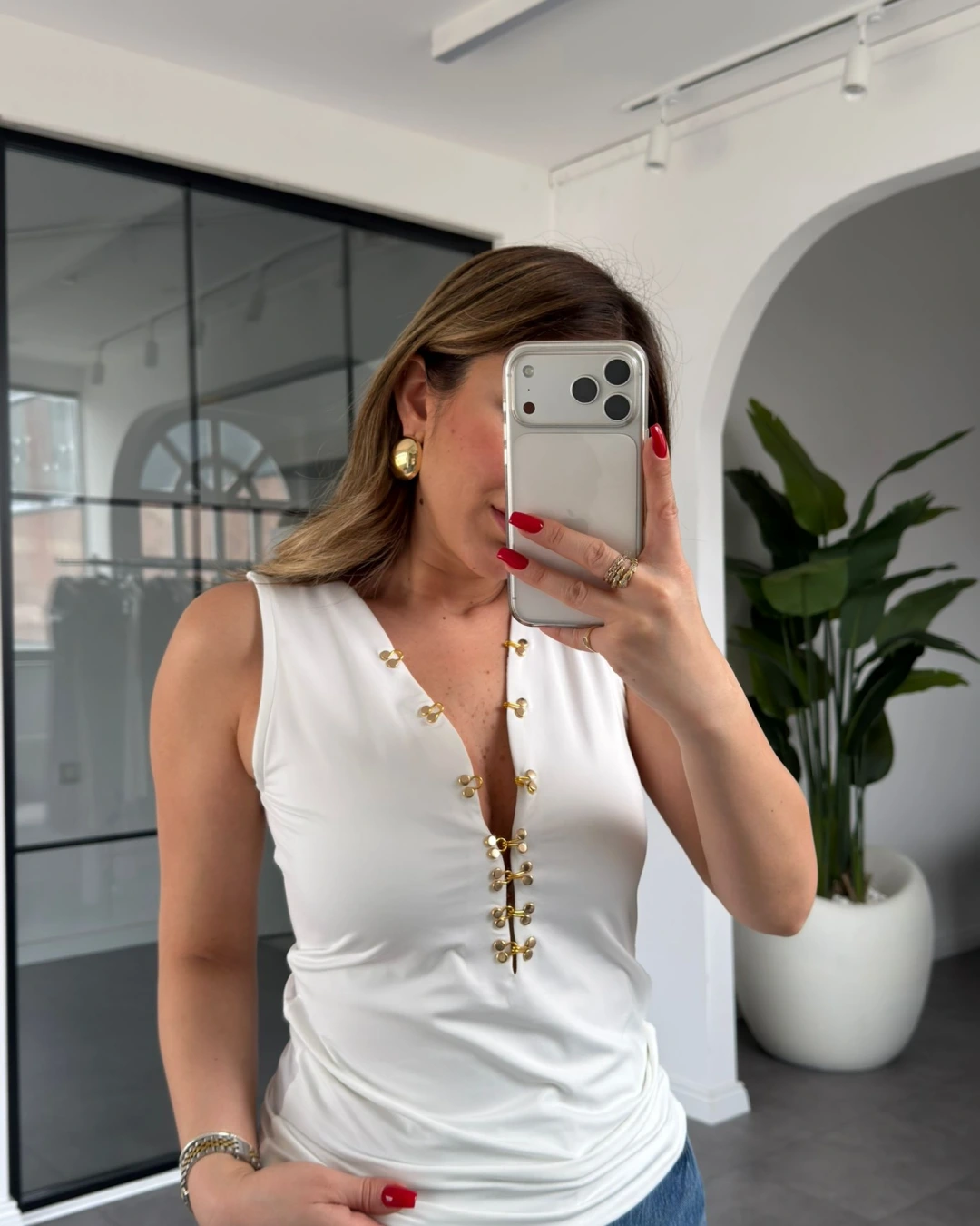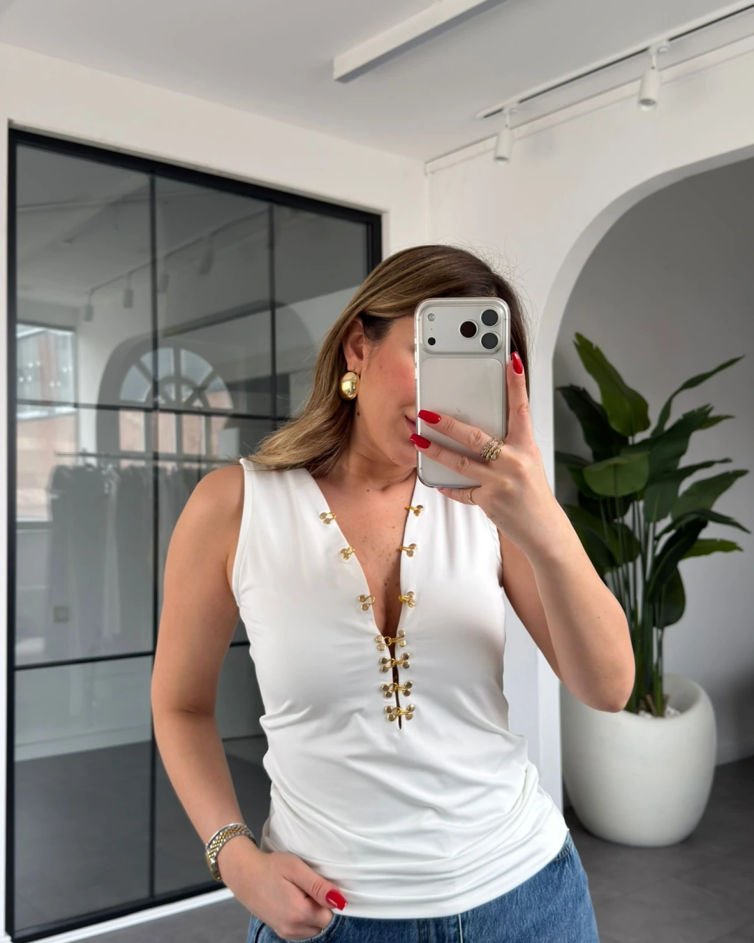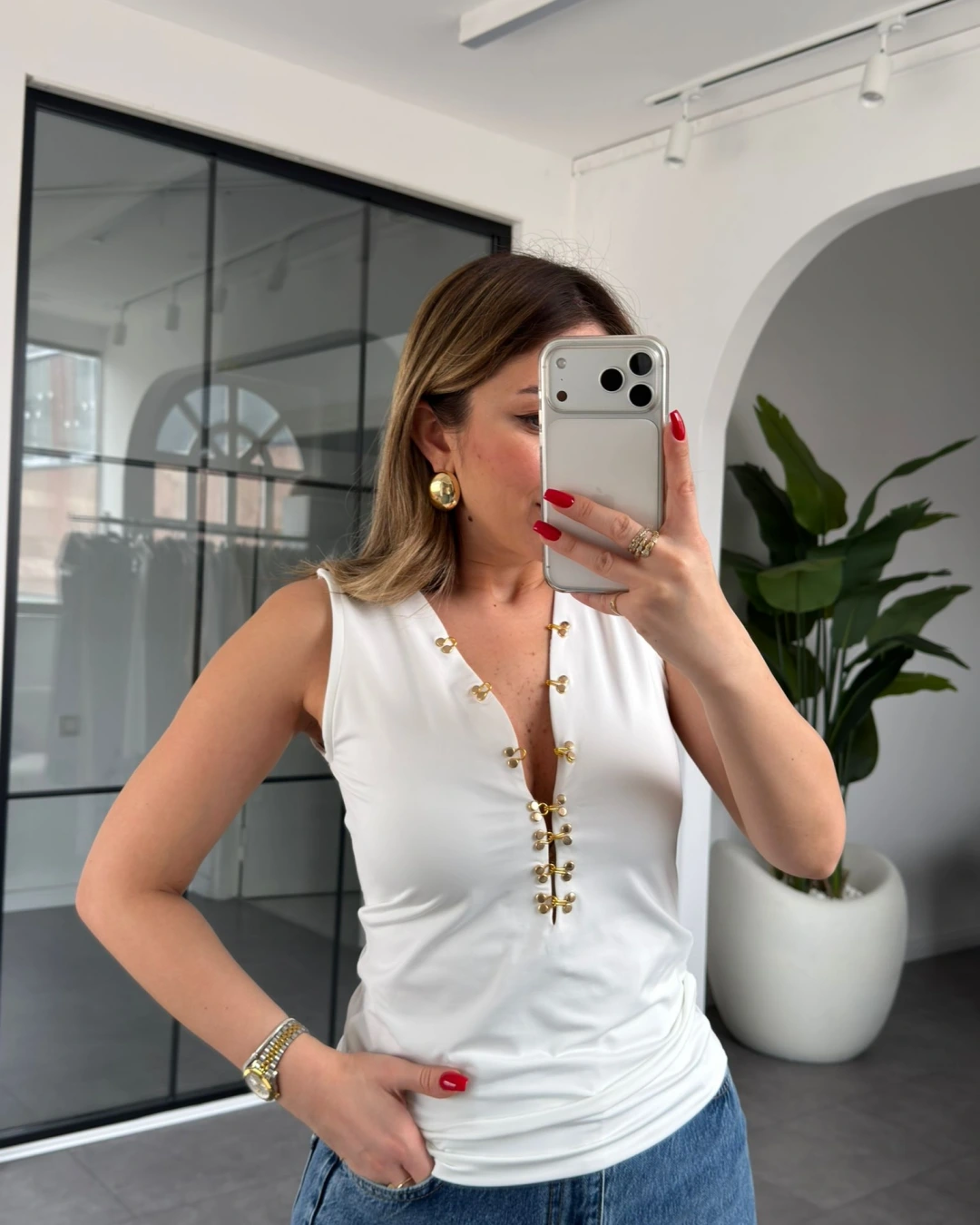BEYAZ KANCALI SIFIR KOL BLUZ 30676