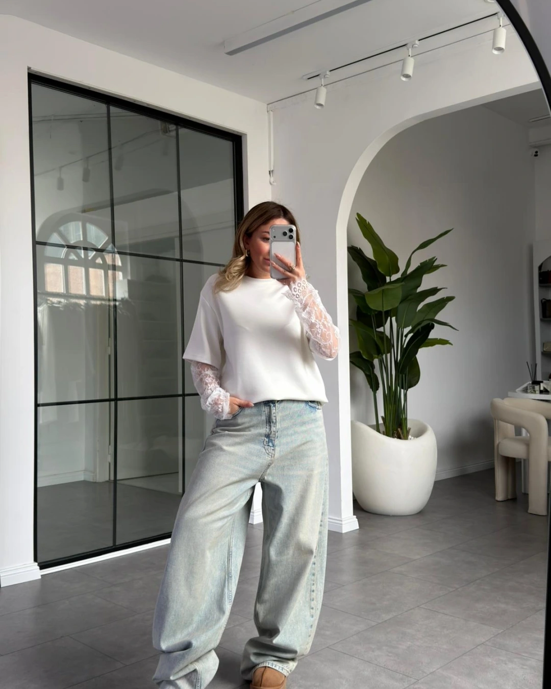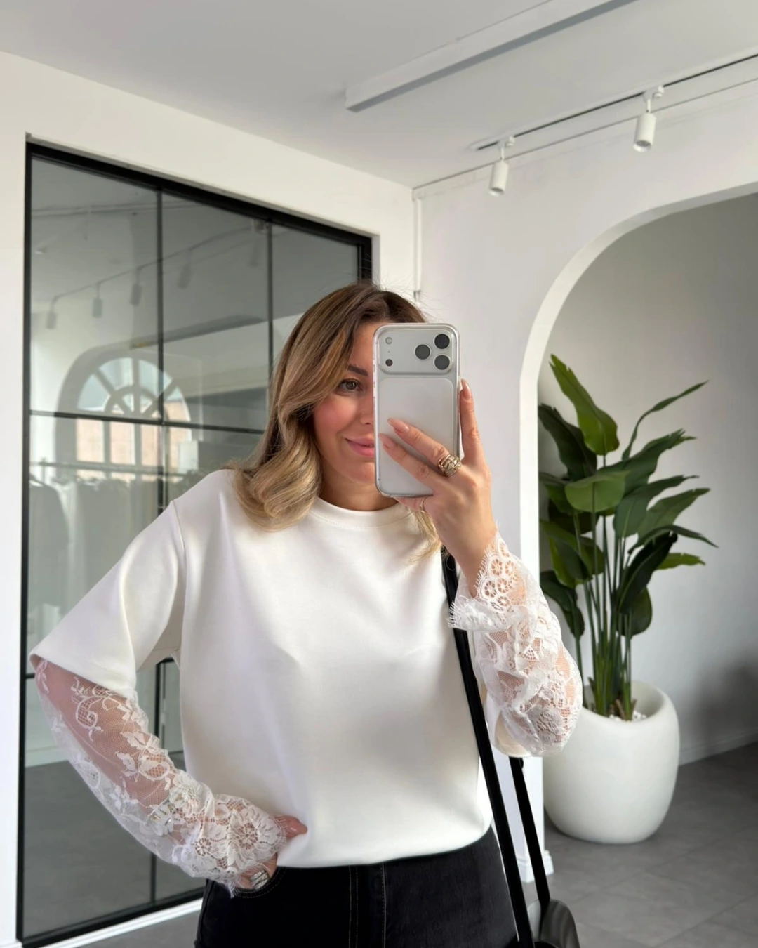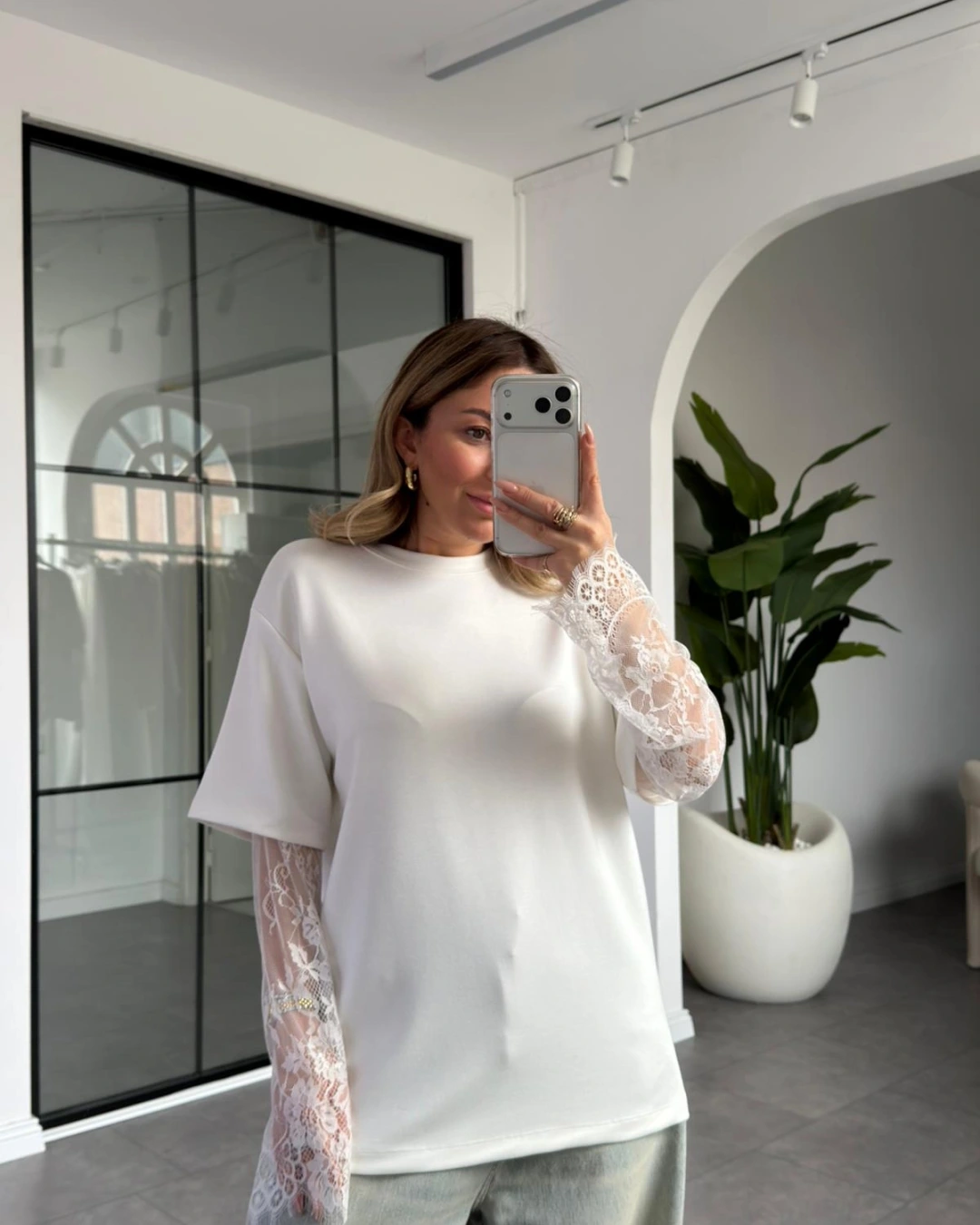 BEYAZ KOLLARI DANTEL DETAYLI T-SHIRT 1049
