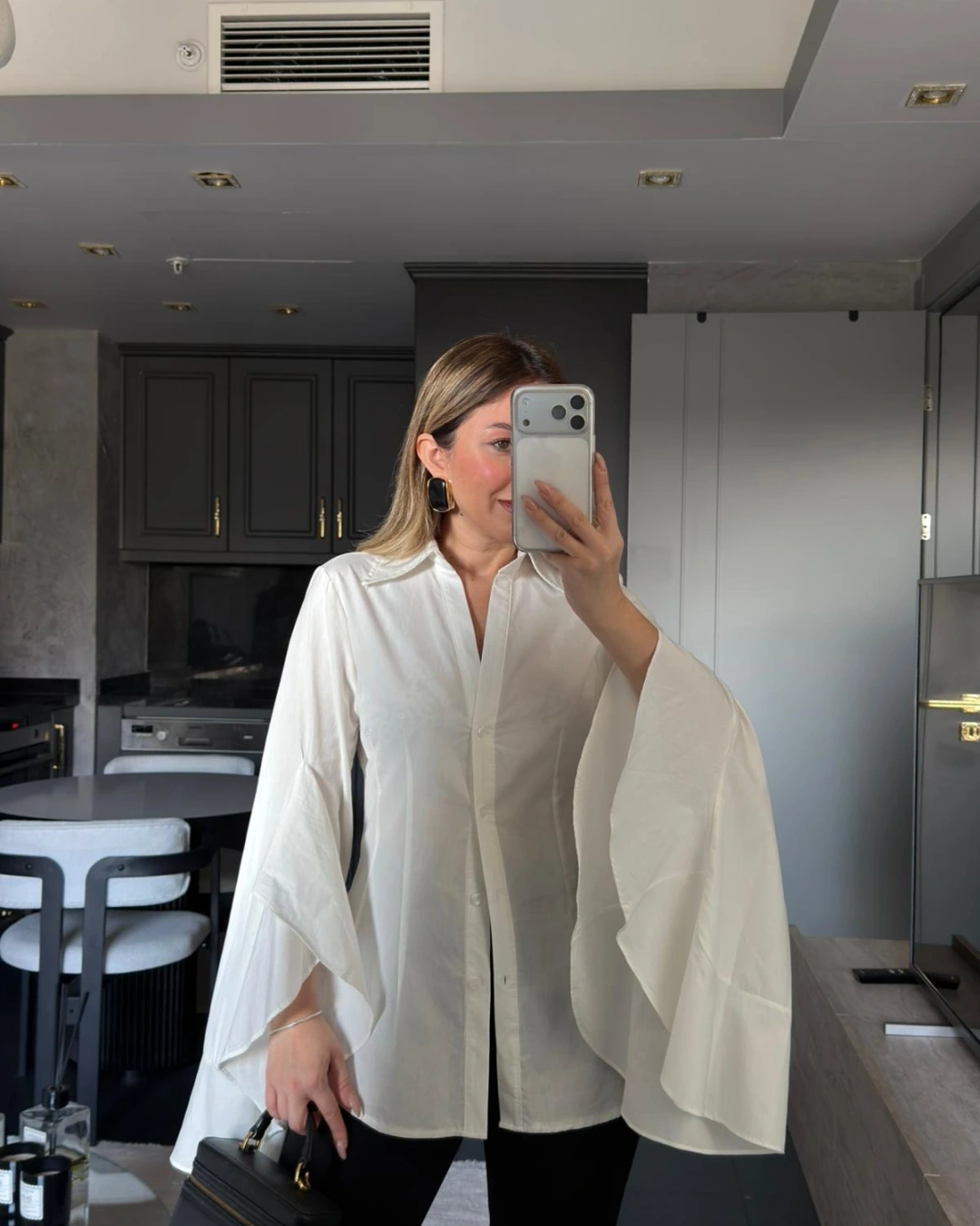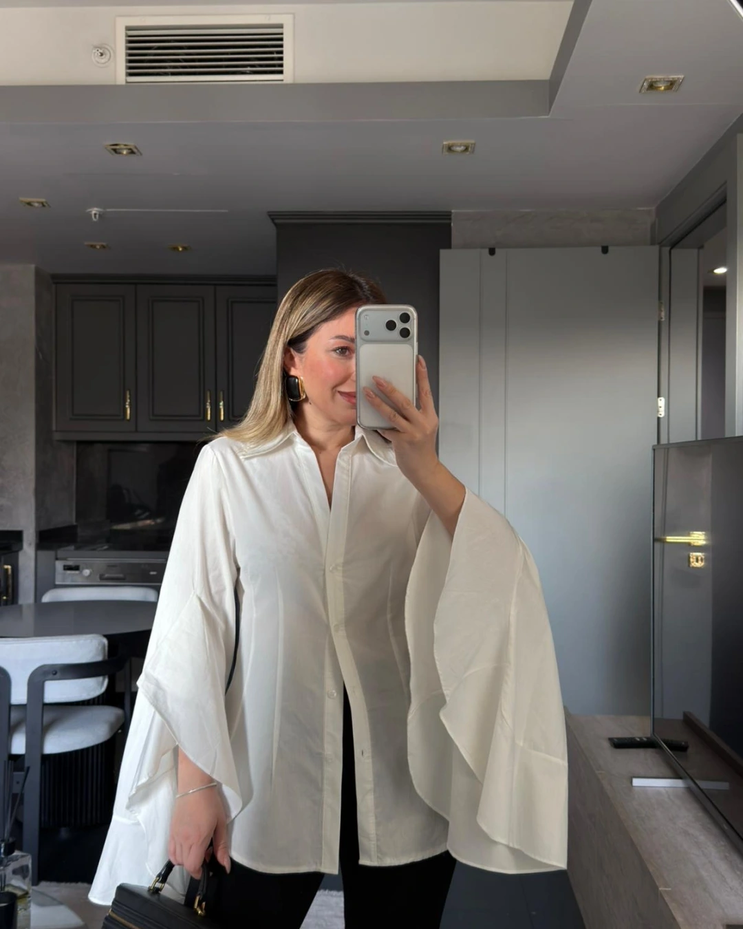 BEYAZ KOLLARI VOLANLI GÖMLEK