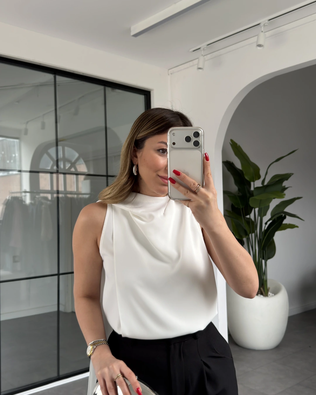 BEYAZ KOLSUZ FULARLI BLUZ