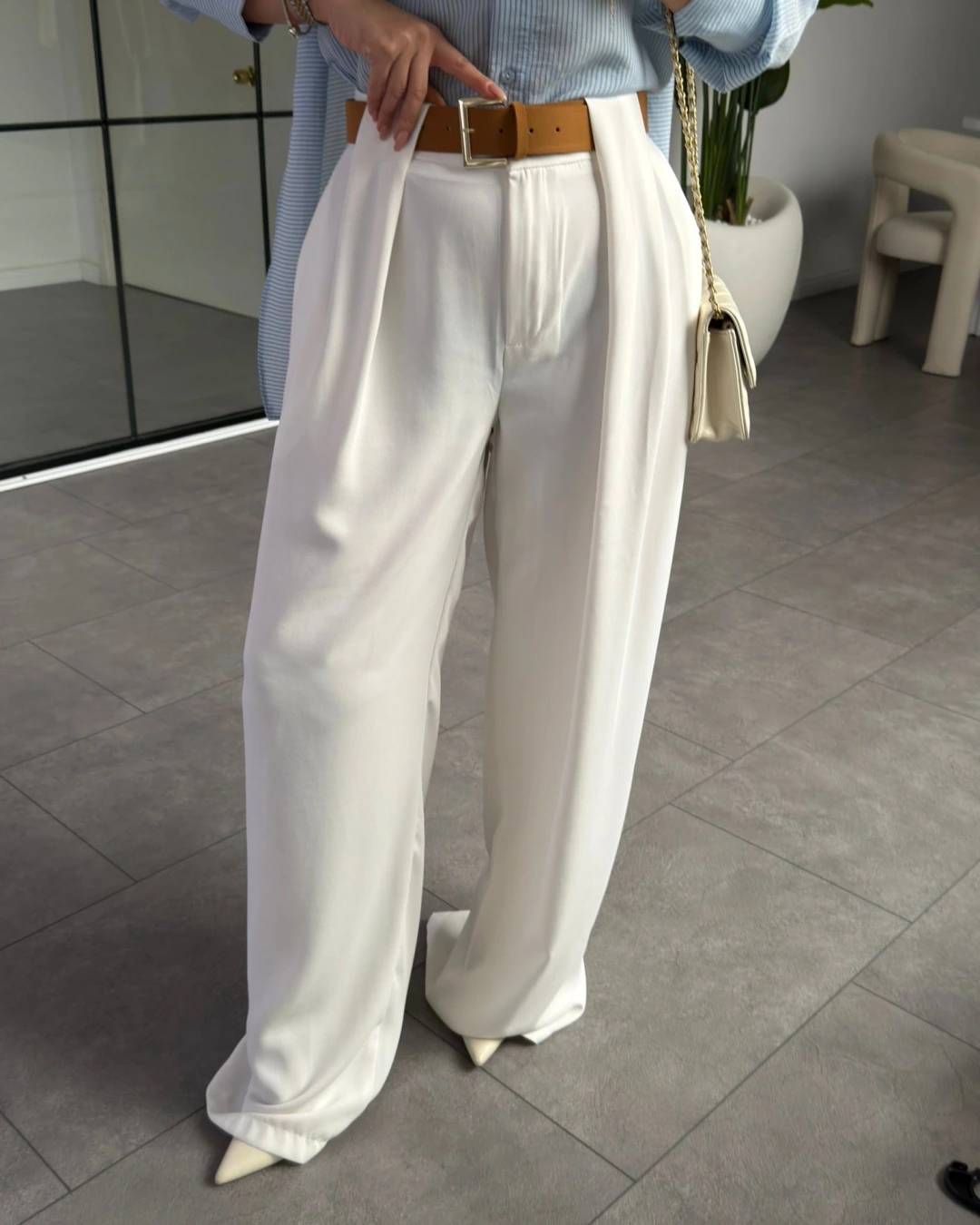 BEYAZ KÖPRÜ DETAY KEMERLİ PANTOLON