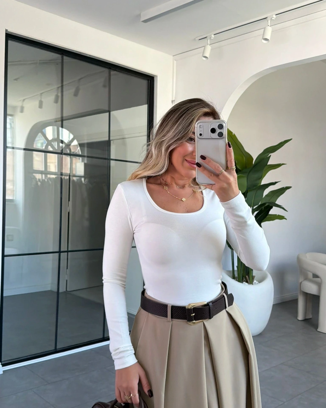 BEYAZ OYSH MARKA U YAKA BLUZ